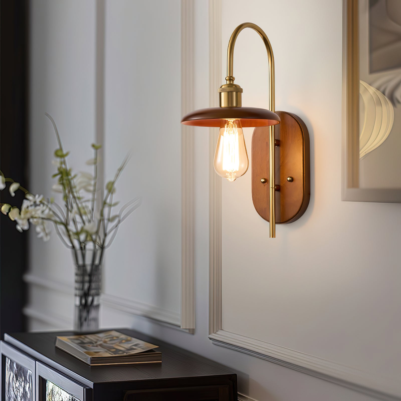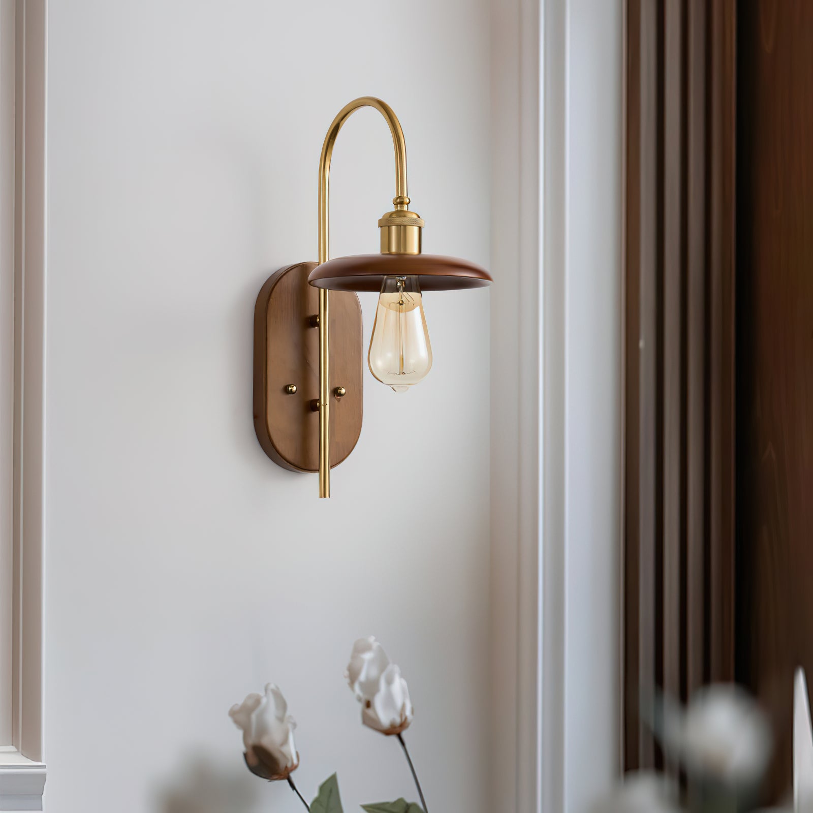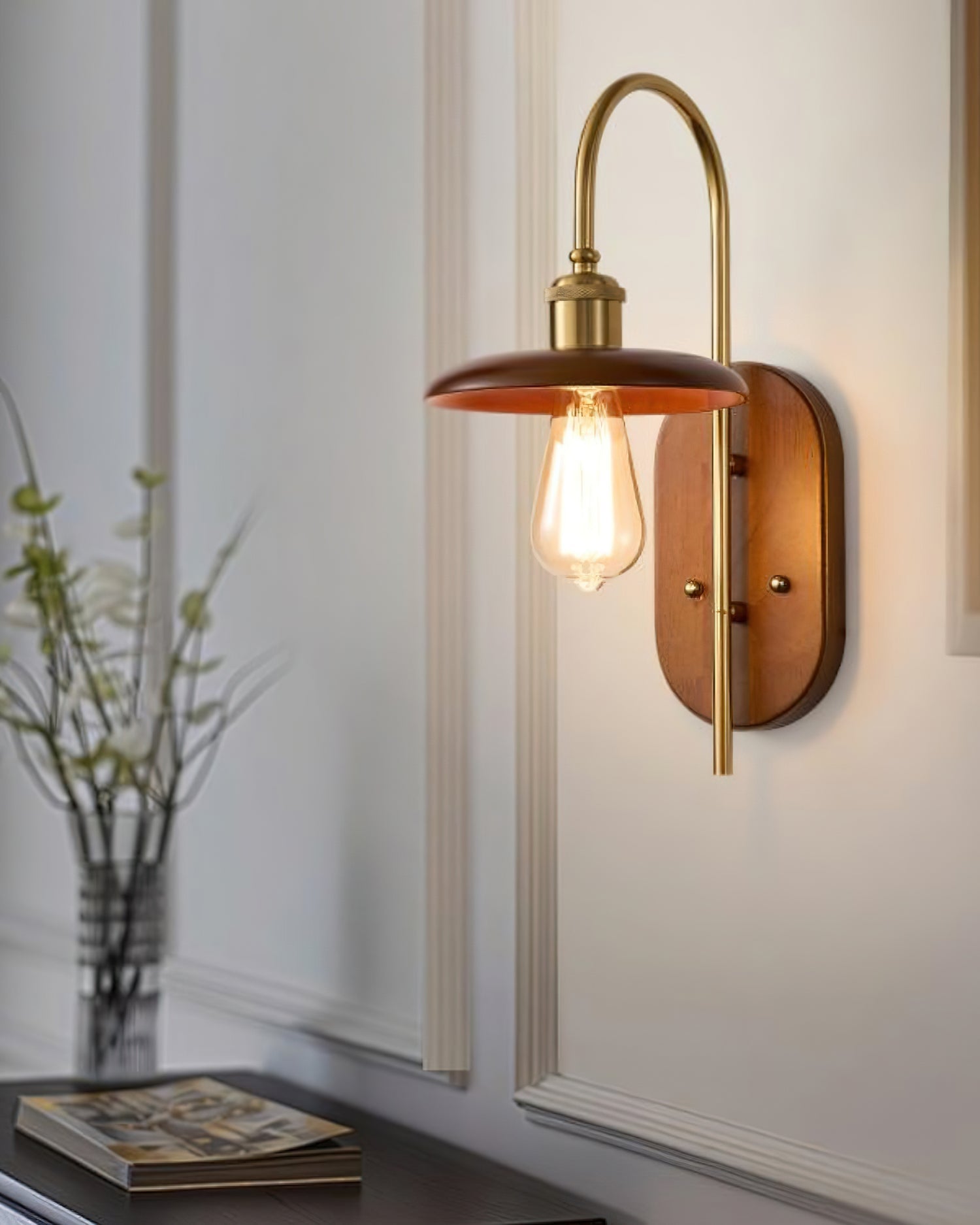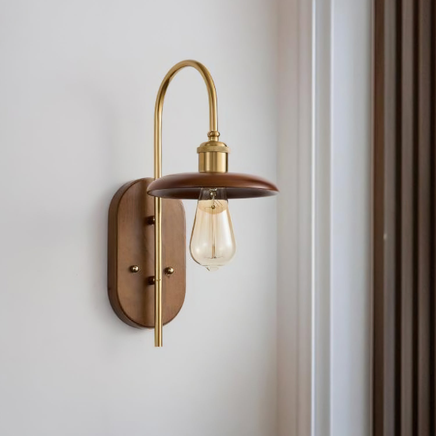 The Rafi Wall Light by Mooijane combines timeless elegance with modern simplicity. A refined wooden base paired with polished brass accents creates a sophisticated lighting solution that elevates any interior space. Clean lines and balanced proportions combine practical lighting with aesthetic appeal, making it a must-have for spaces that value understated luxury and thoughtful design.