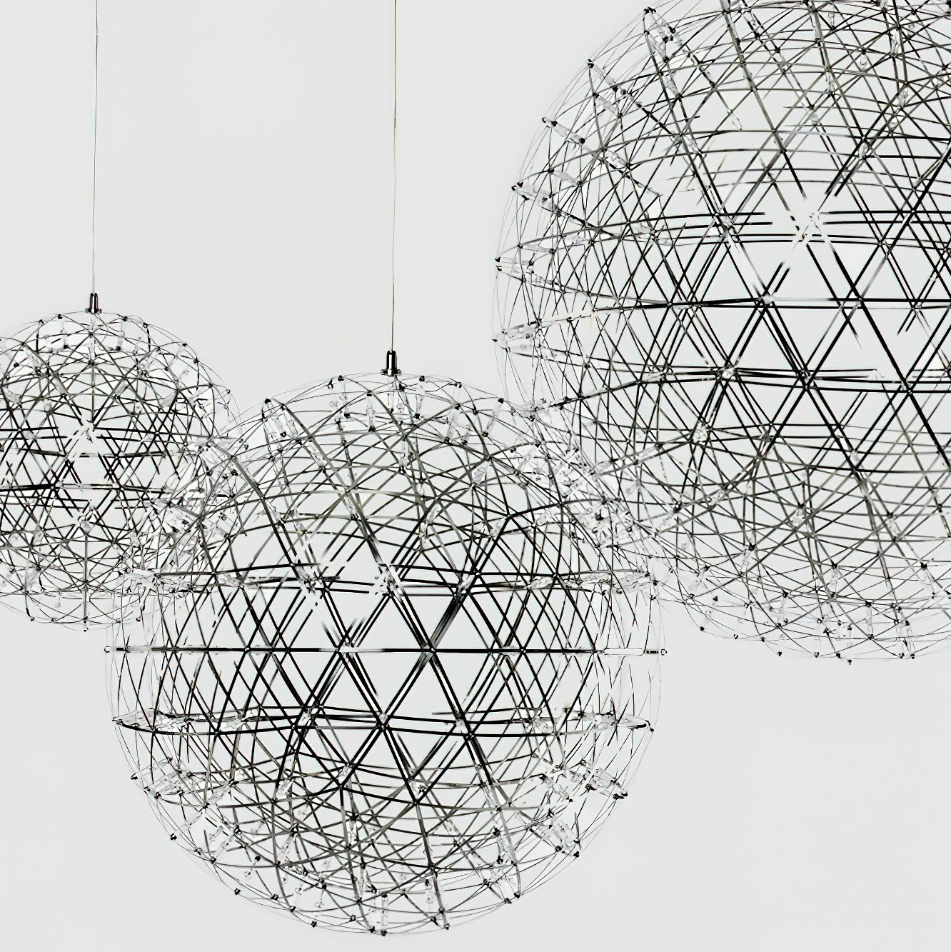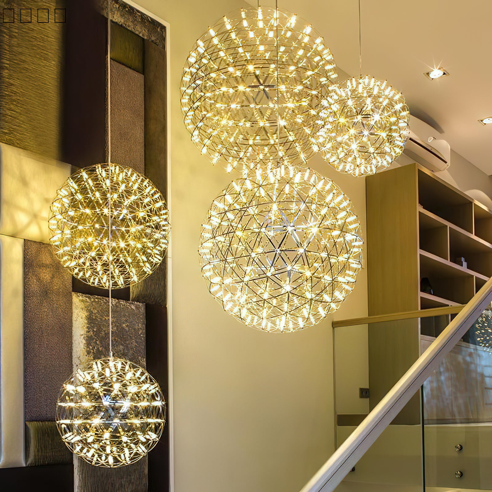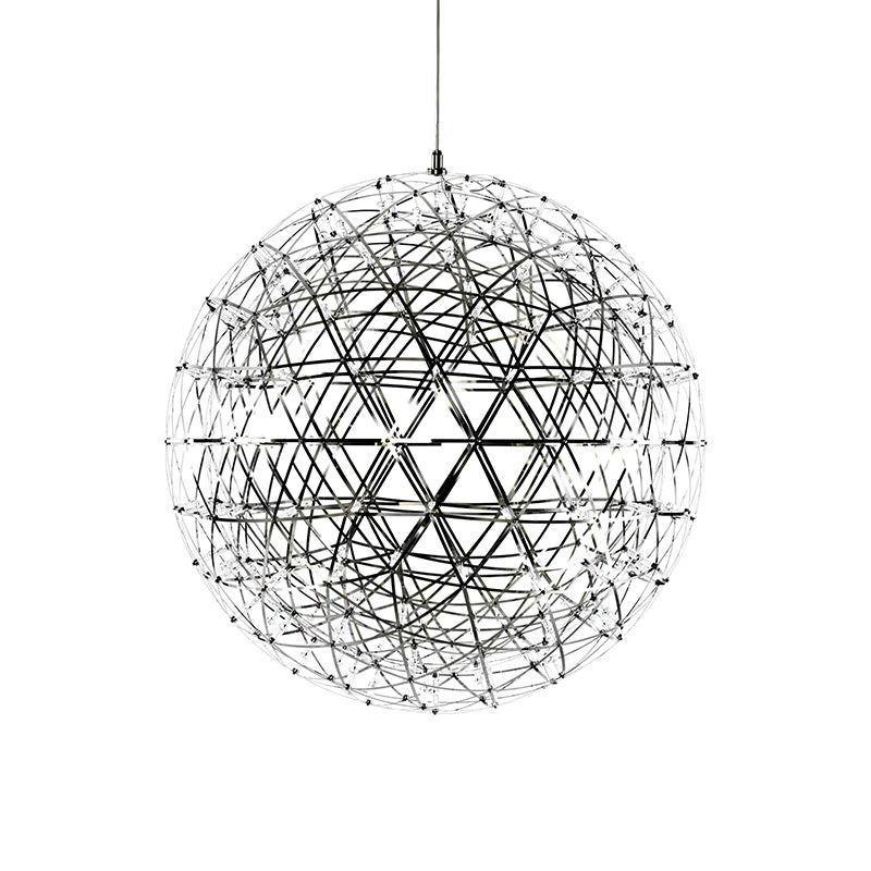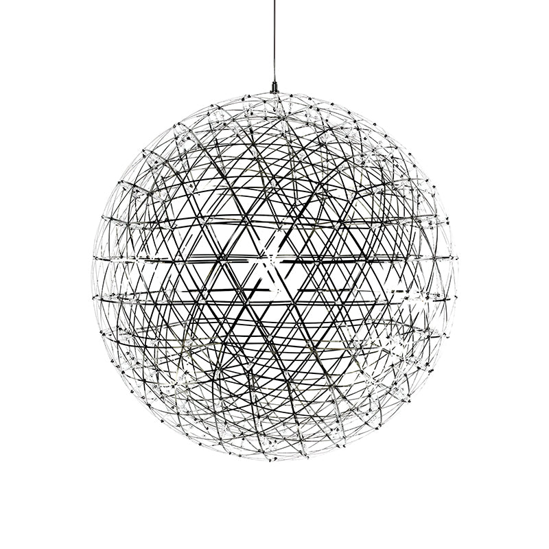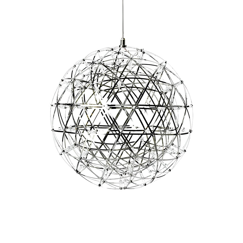 Introduce luxury and glamour to your space with the Raimond Chandelier. The spherical shape and star-shaped light string create depth and visual interest, while the cage frame adds an industrial touch. Perfect for foyers, living rooms, dining rooms, or entryways. Elevate your décor with this unique and stunning lighting fixture.