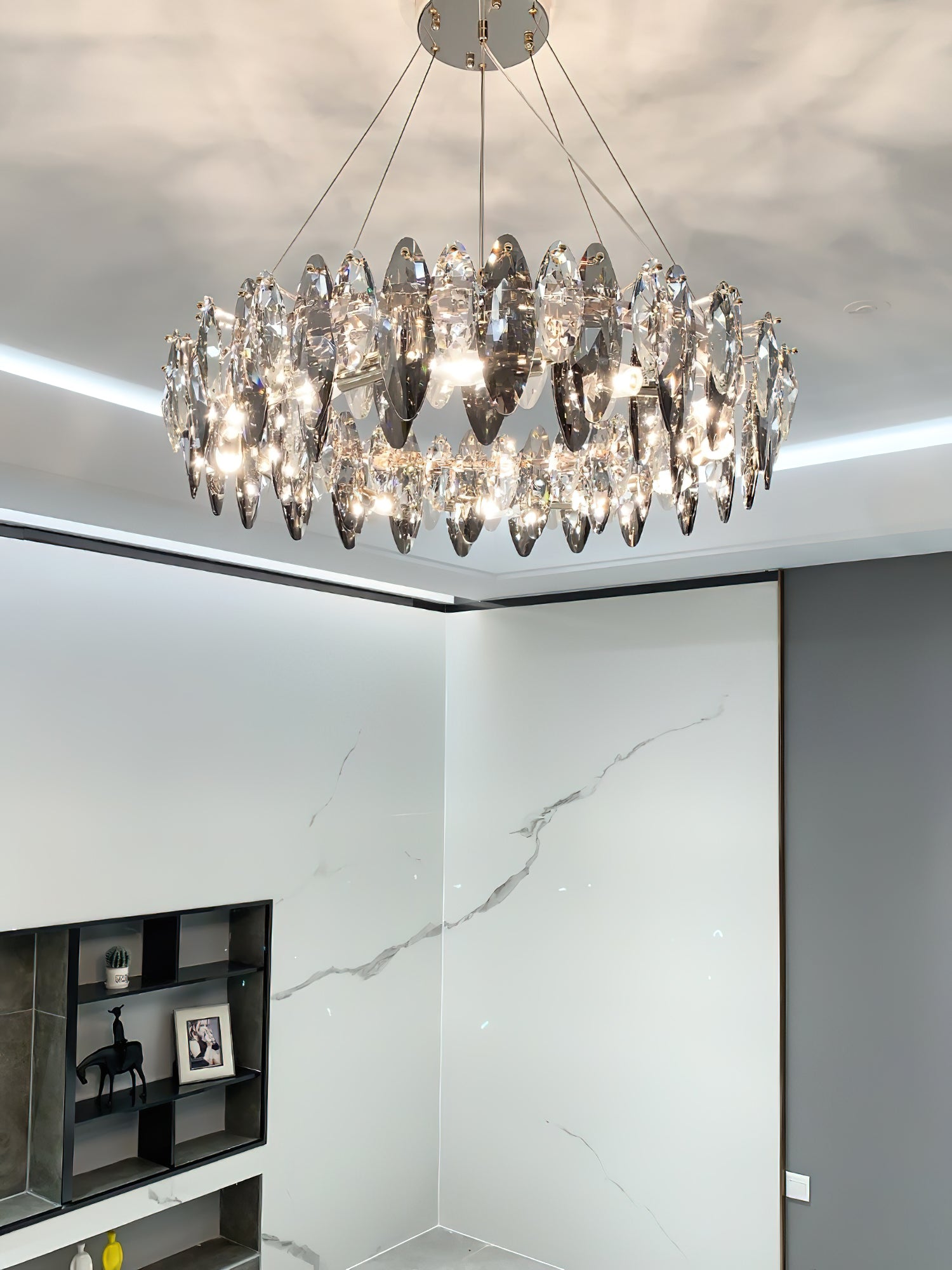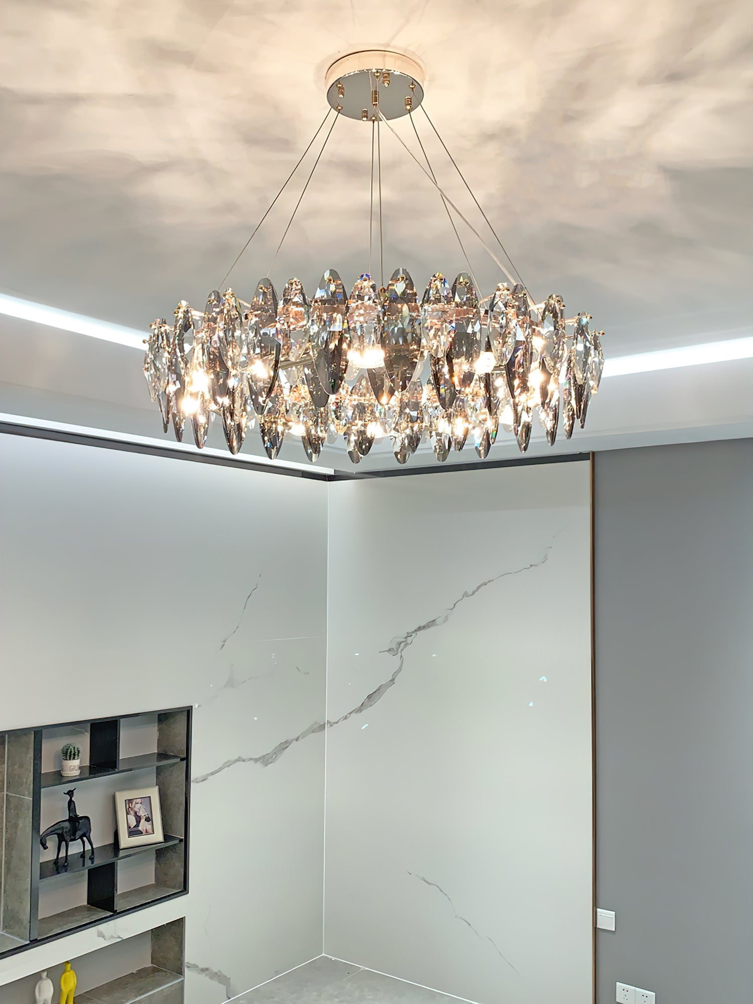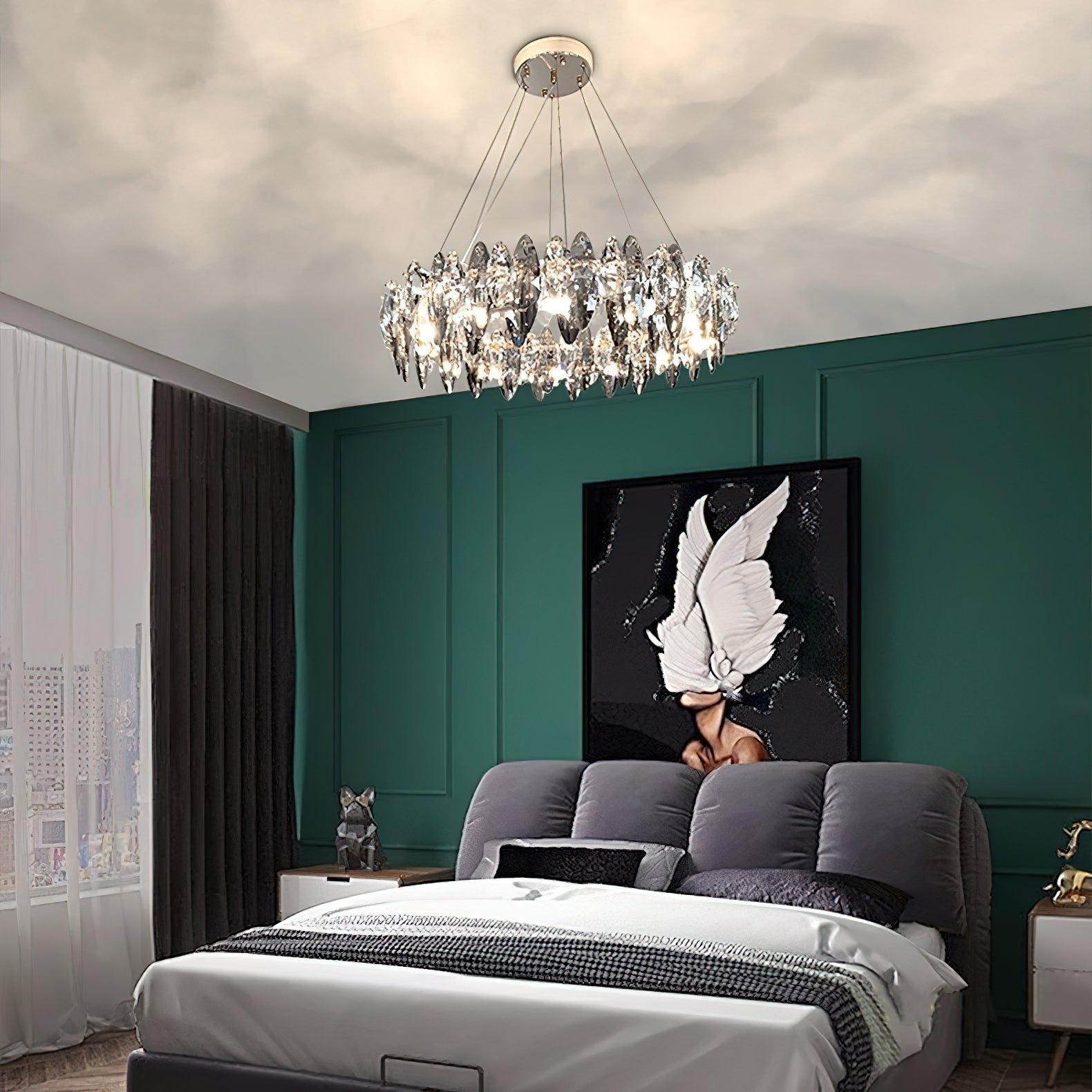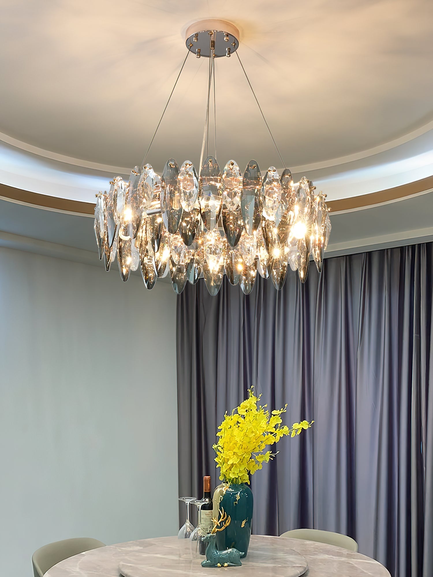 This elegant Raindrop crystal chandelier is the perfect addition to any room. With a contemporary anthracite finish and delicate crystal accents, the light provides you with enough brightness to provide a modern yet warm ambiance, instantly adding elegance and sophistication to any space. A good choice for living room, dining room, bedroom, kitchen, bar, office, etc.