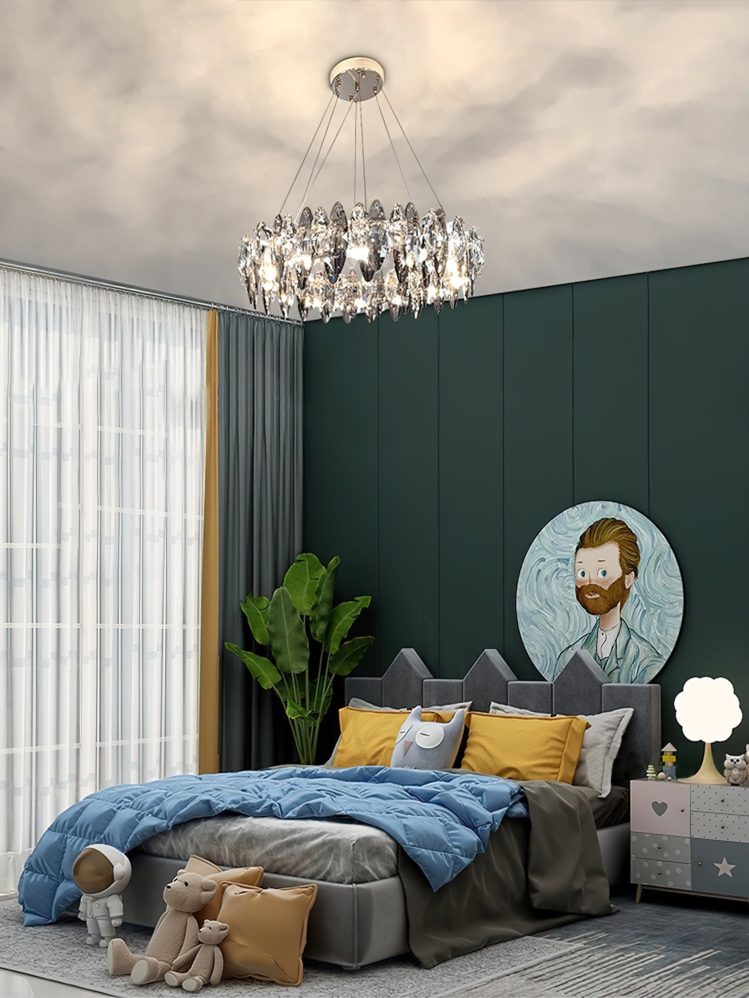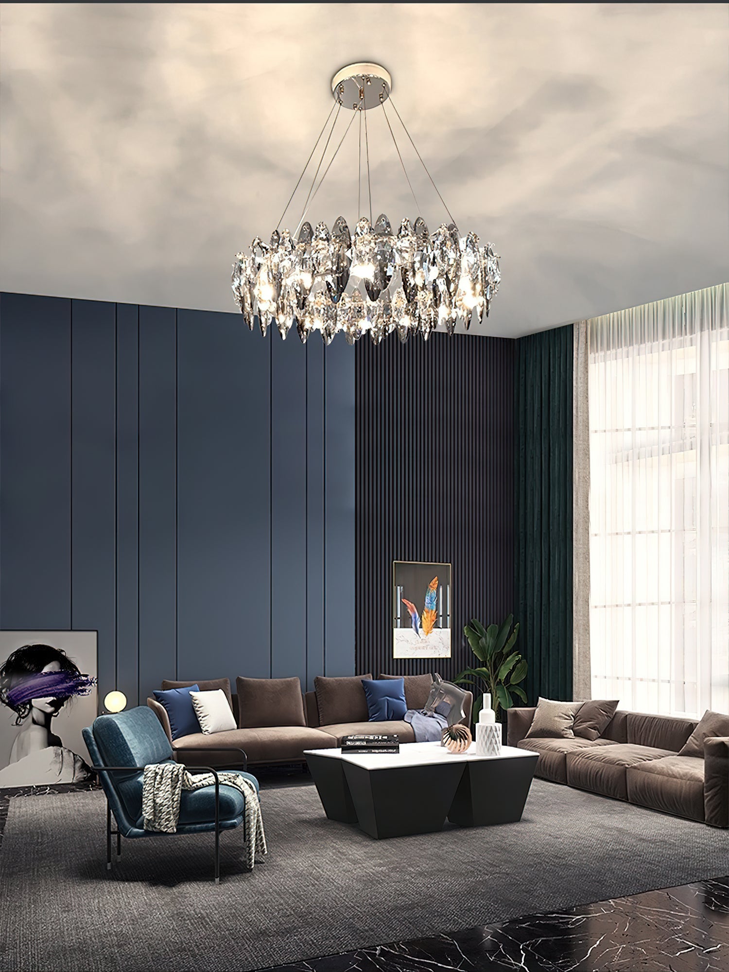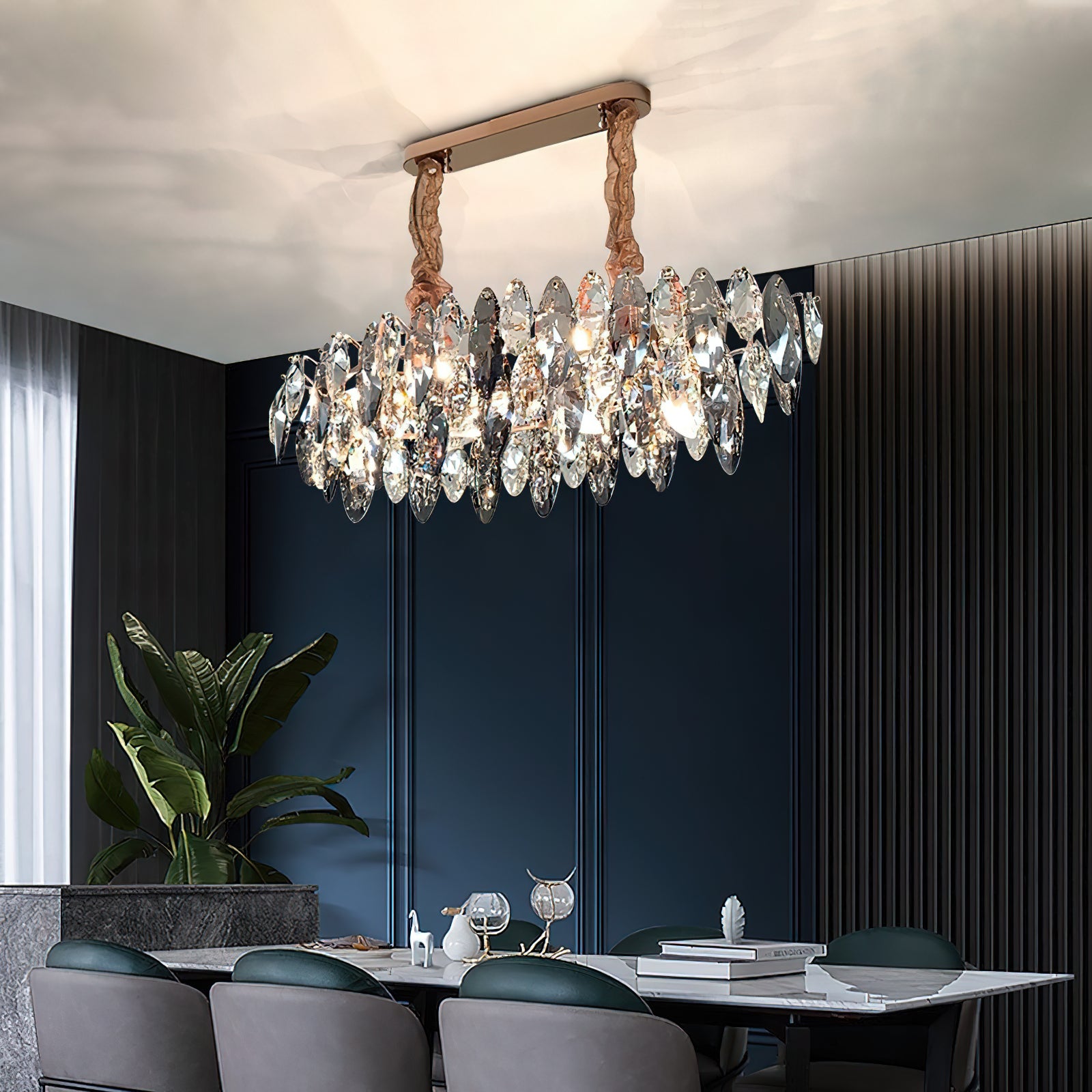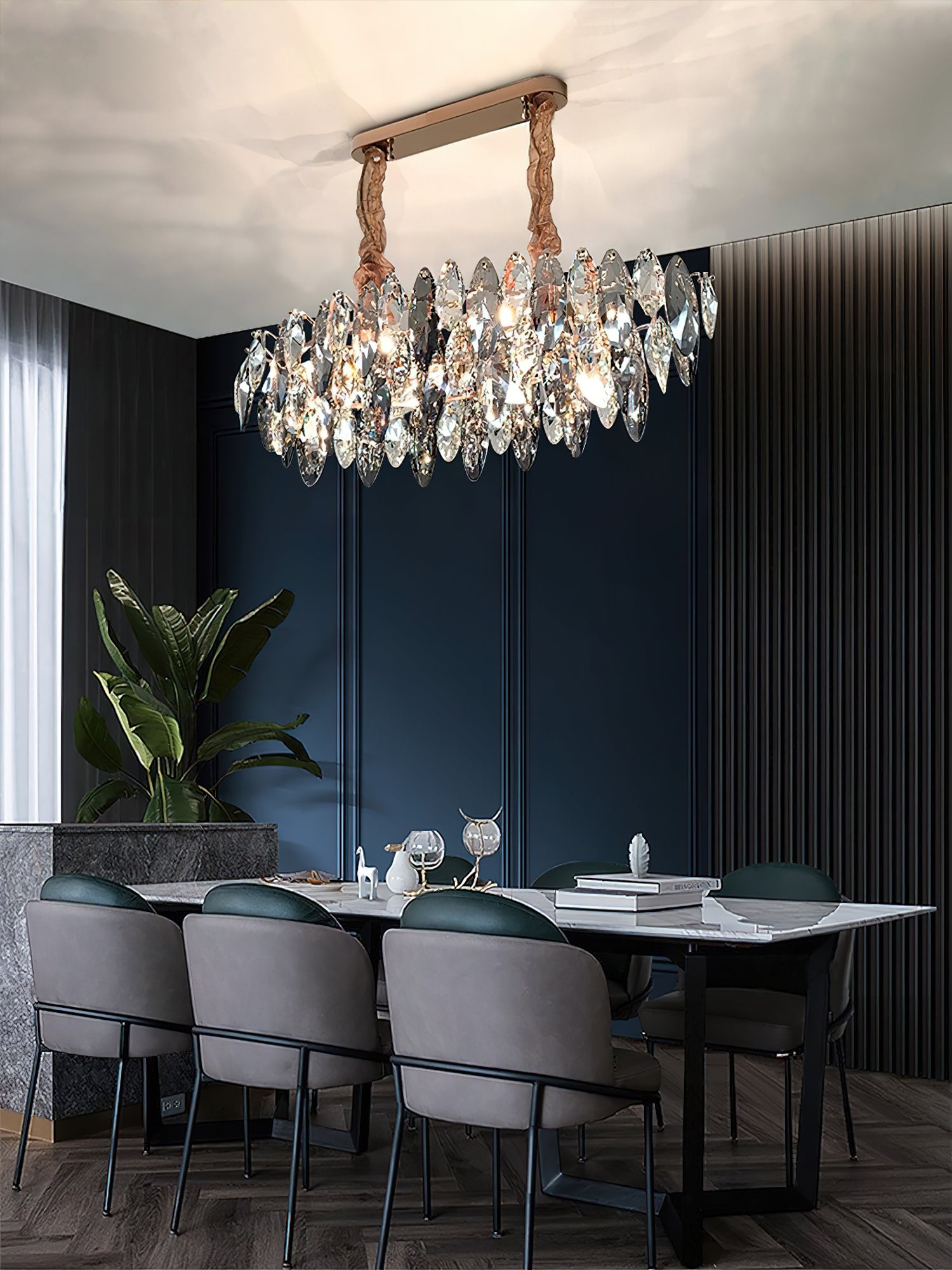 This elegant Raindrop crystal chandelier is the perfect addition to any room. With a contemporary anthracite finish and delicate crystal accents, the light provides you with enough brightness to provide a modern yet warm ambiance, instantly adding elegance and sophistication to any space. A good choice for living room, dining room, bedroom, kitchen, bar, office, etc.