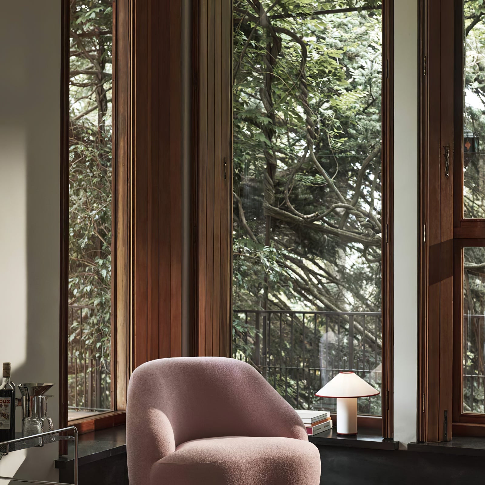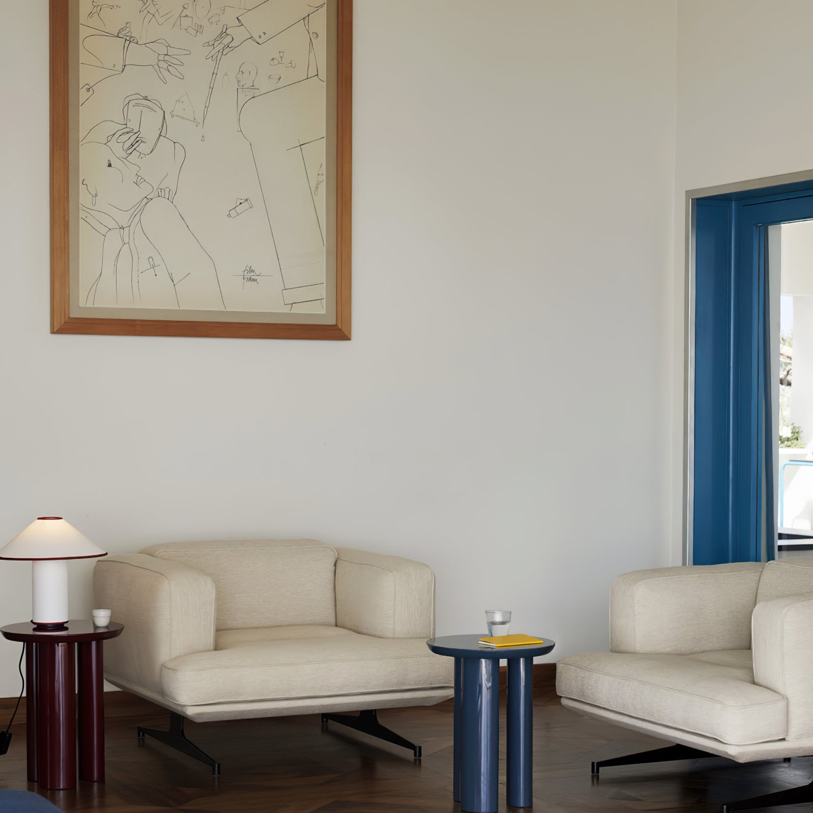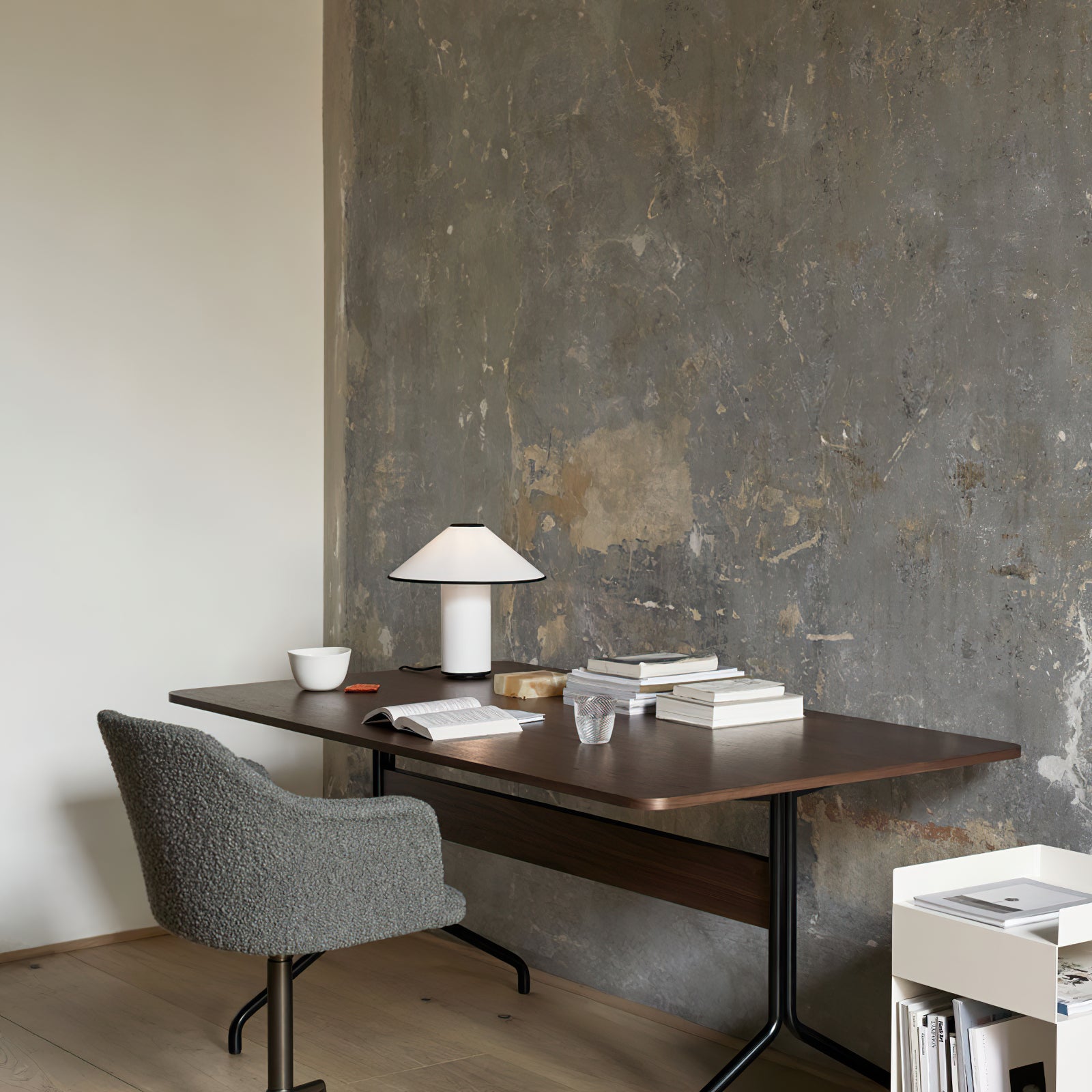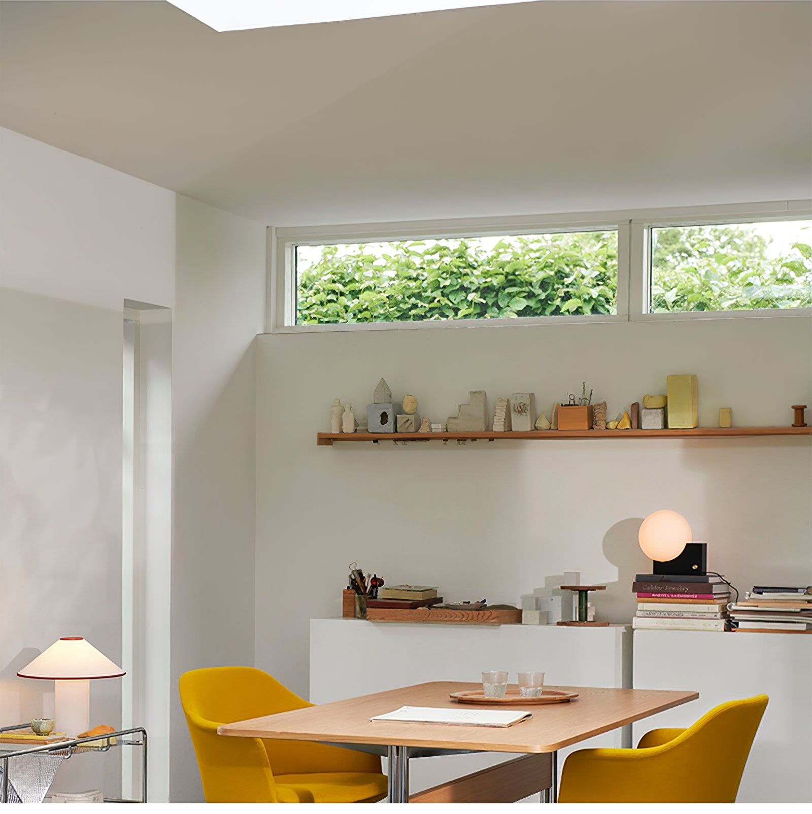 The Red Trim Cone Shade Table Lamp combines elegance with a modern twist, drawing inspiration from Art Deco design. Its clean, white fabric shade is accentuated by a bold red trim along the edges, adding a subtle yet sophisticated contrast. The conical shade rests atop a simple cylindrical base, creating a sleek silhouette that enhances its timeless aesthetic. This table lamp’s blend of functionality and style allows it to harmonize with a variety of interiors, serving as both a practical light source and a statement piece.