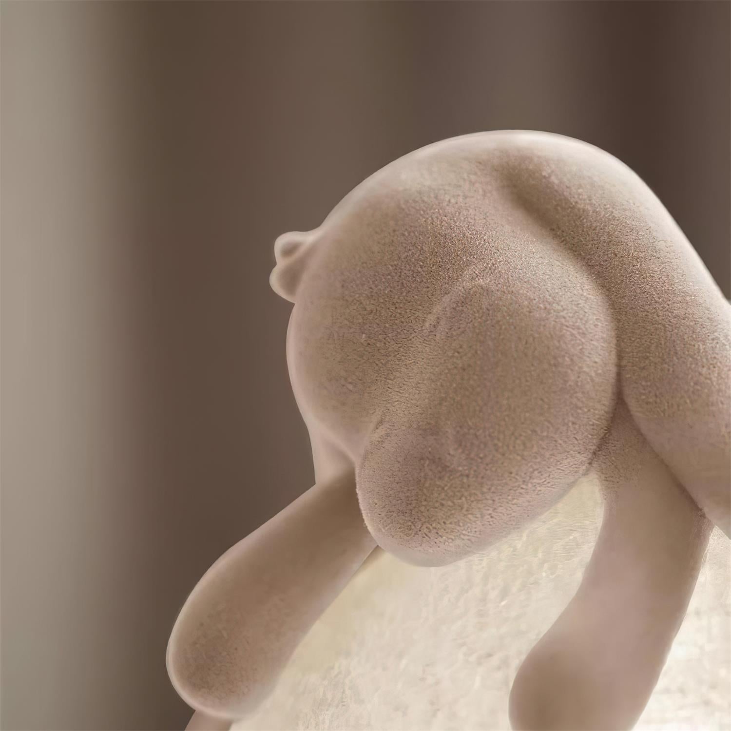 Inspired by the original image design of the cute rabbit, with the theme of gentle companionship and healing, focusing on the use of space, people-oriented, from a practical point of view, using resin and flocking materials, after careful design, combined with the moon, the cute rabbit desk lamp was finally born up!
