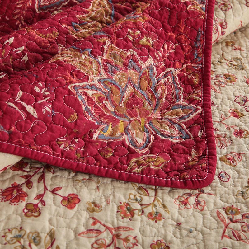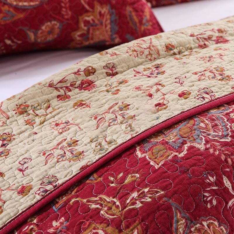 Drawing inspiration from retro style, this quilt showcases blooming floral prints that impart an elegant and luxurious touch to any space. Crafted from snug quilted fabric, this quilt guarantees a soft and breathable sleeping experience.