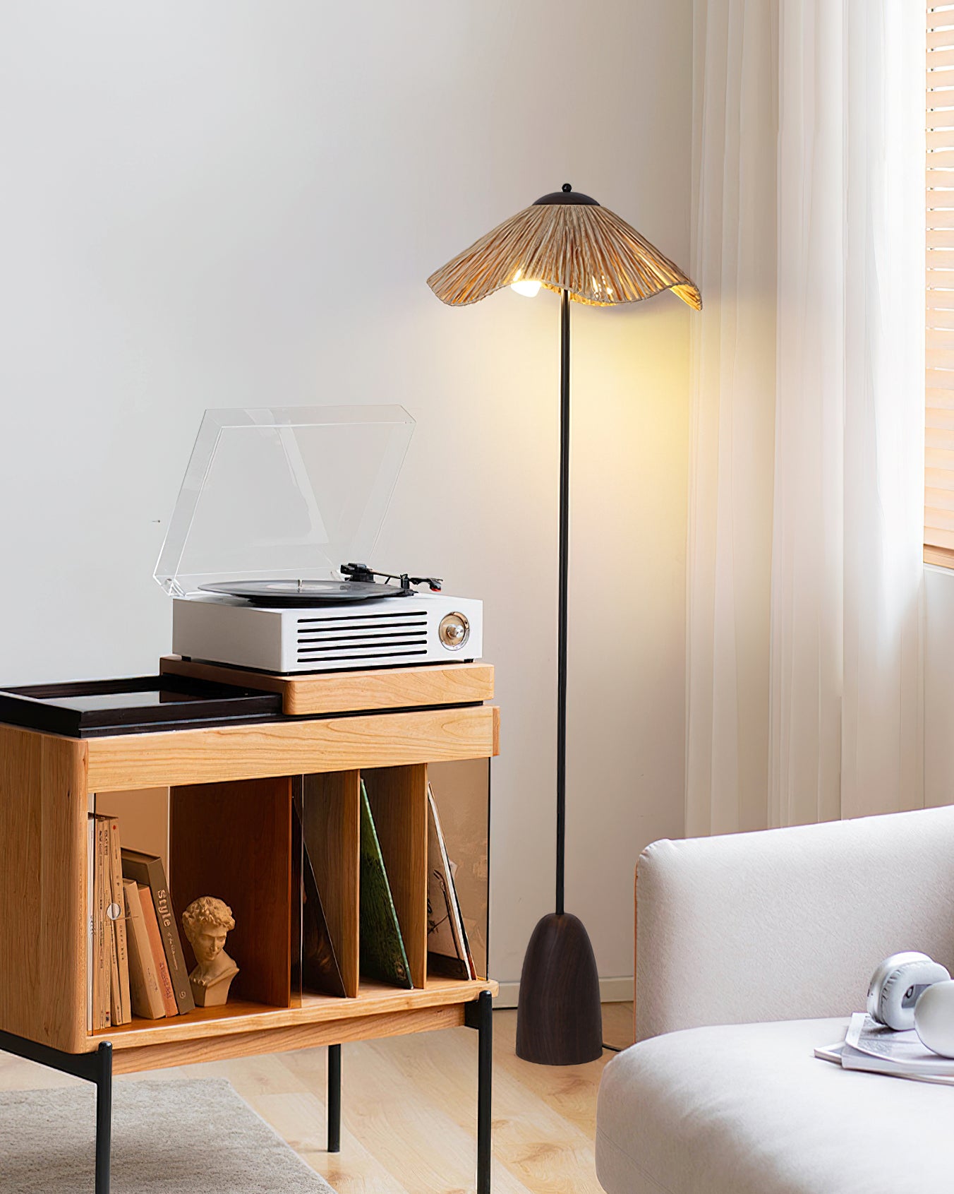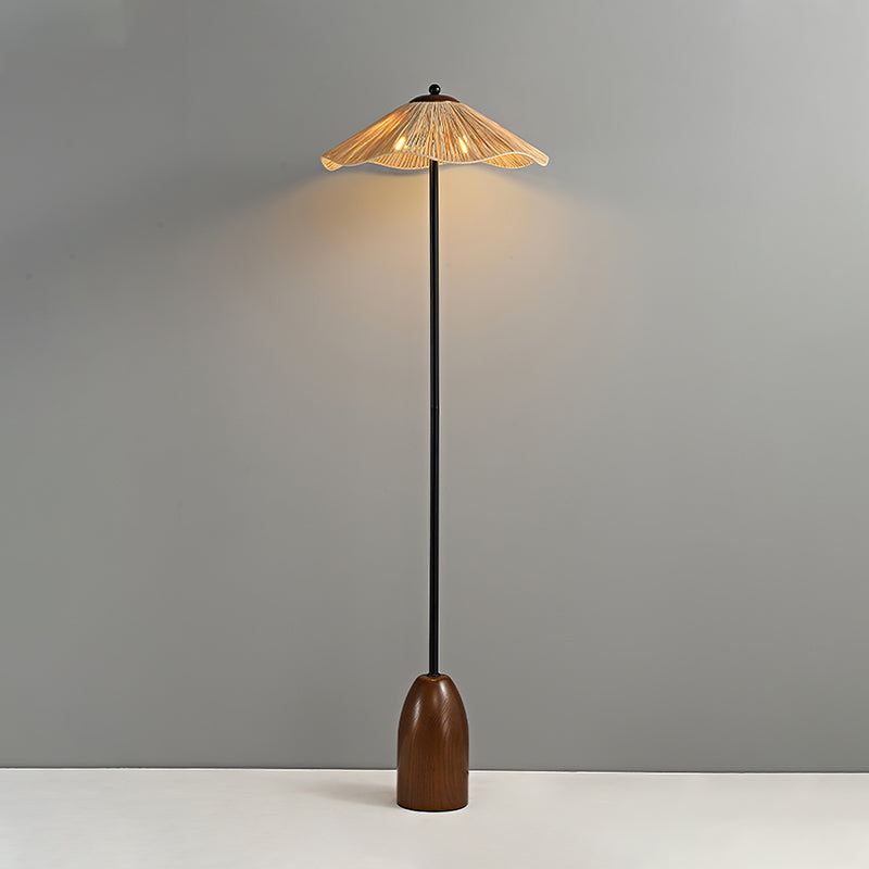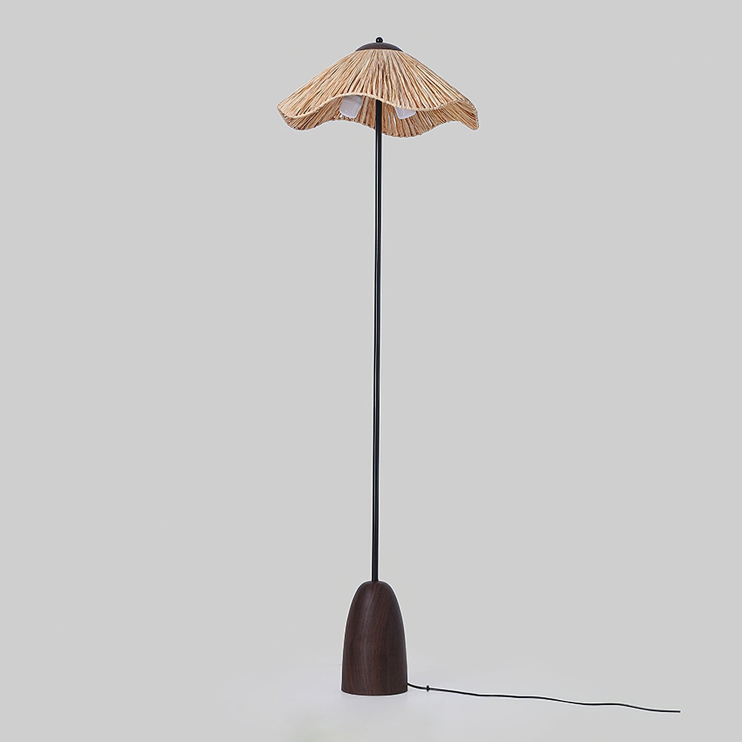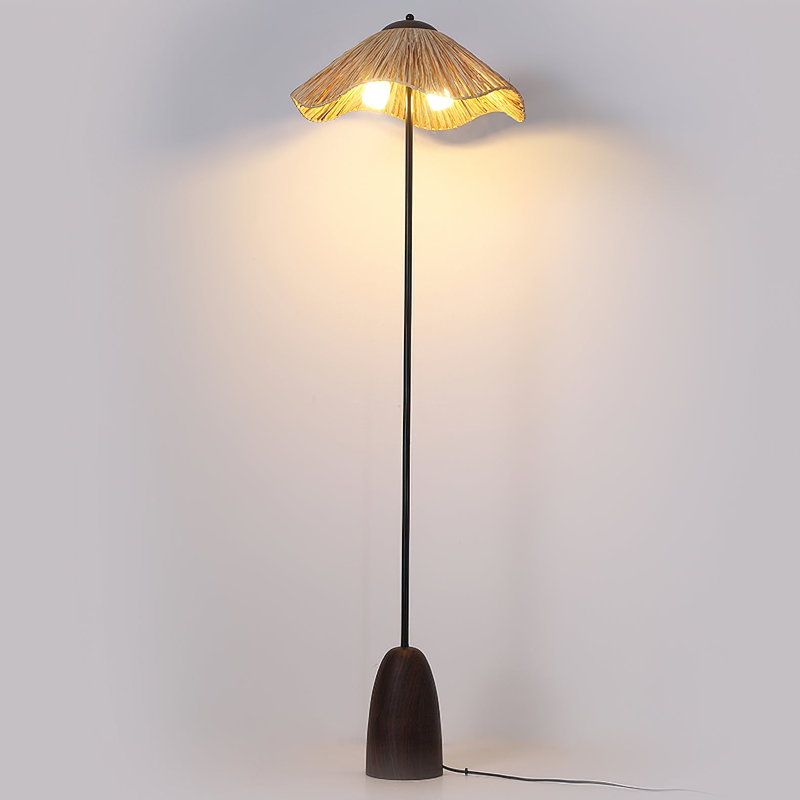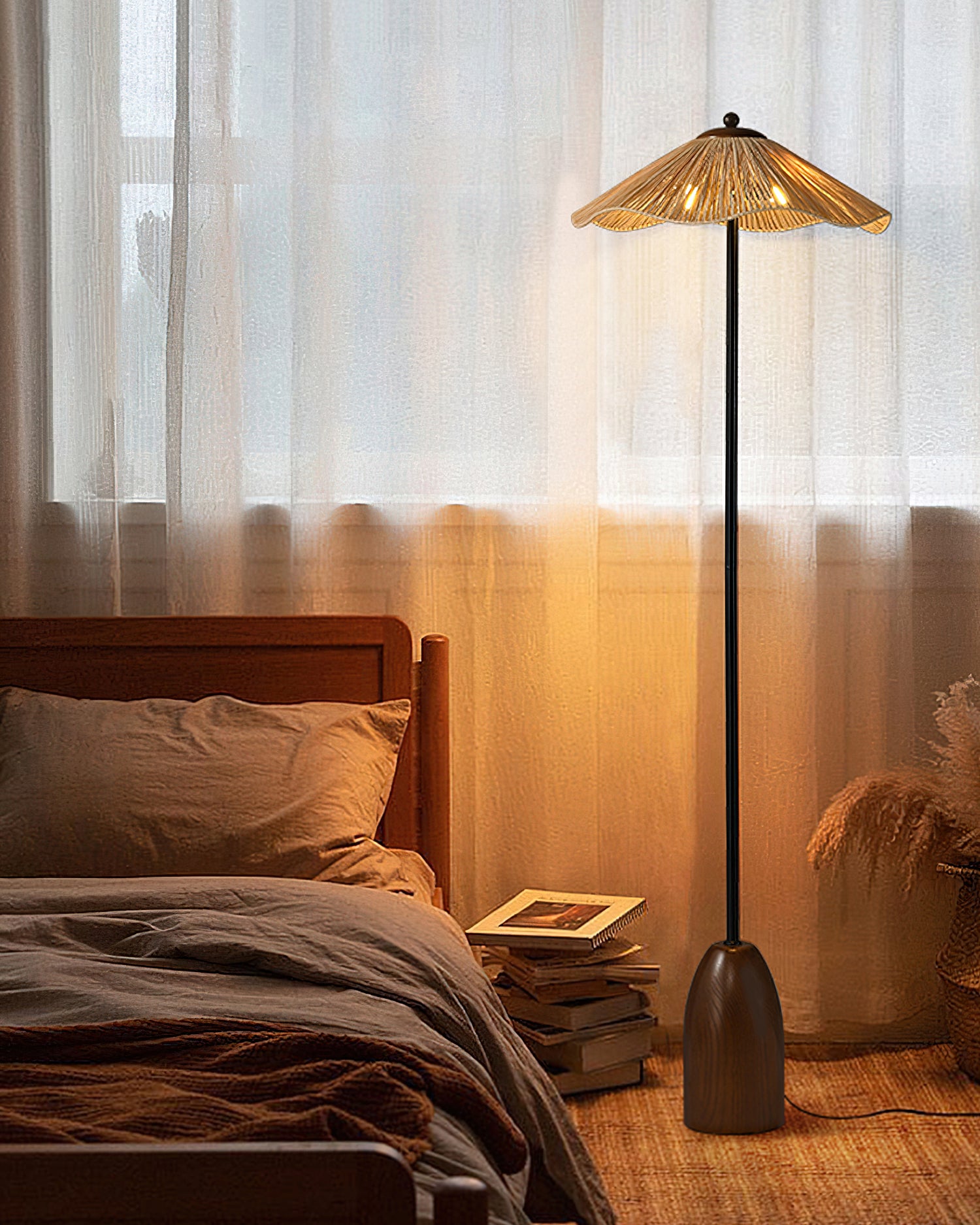 Experience the perfect combination of natural beauty and modern design with the Retro Straw Hat Floor Lamp. The raffia shade, resembling a delicate flower, creates a tranquil ambiance with its soft, warm light. The sleek black metal stand and wooden base add a touch of sophistication, making it a versatile addition to any interior.