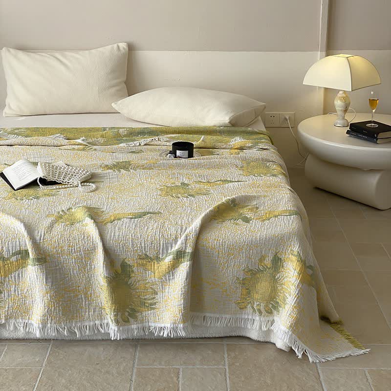 Reversible Rural Cotton Gauze Tassel Quilt