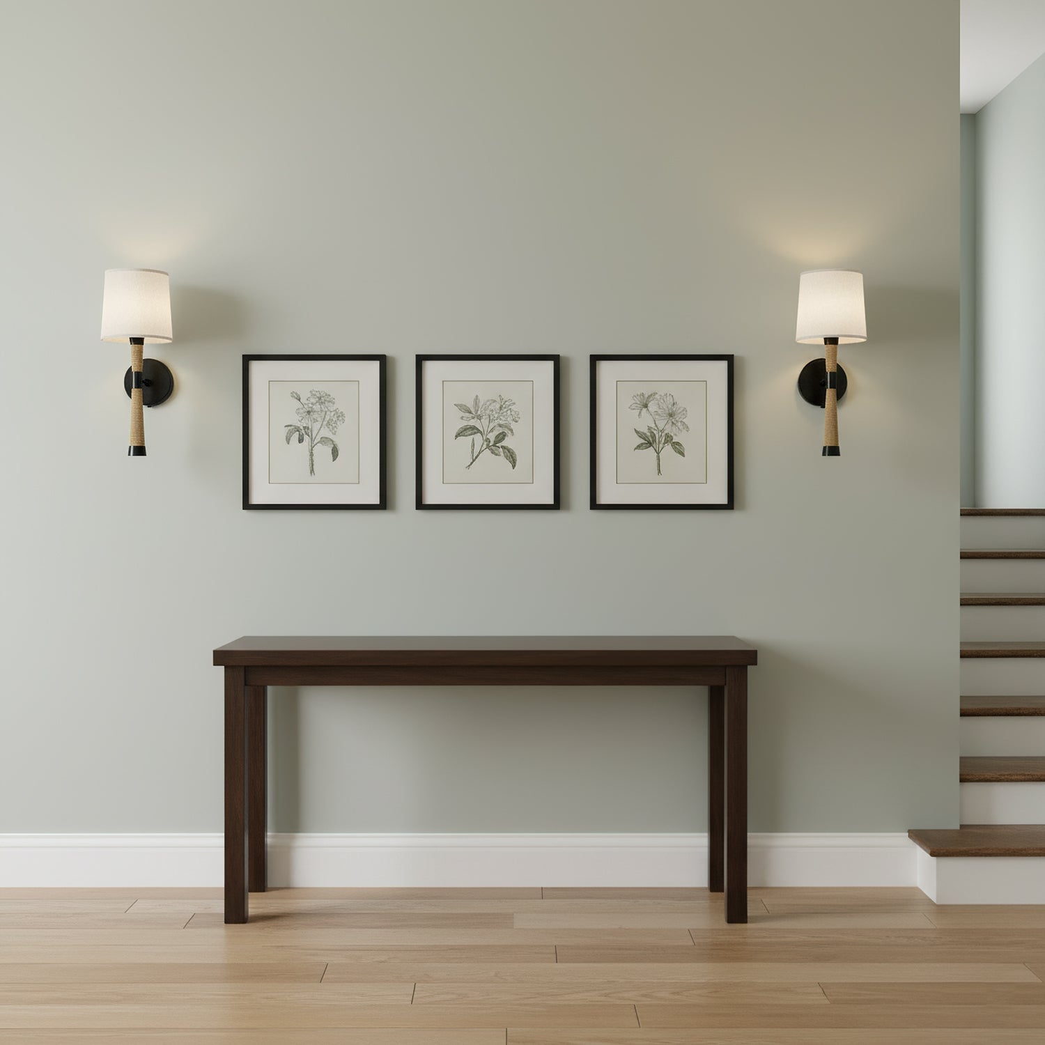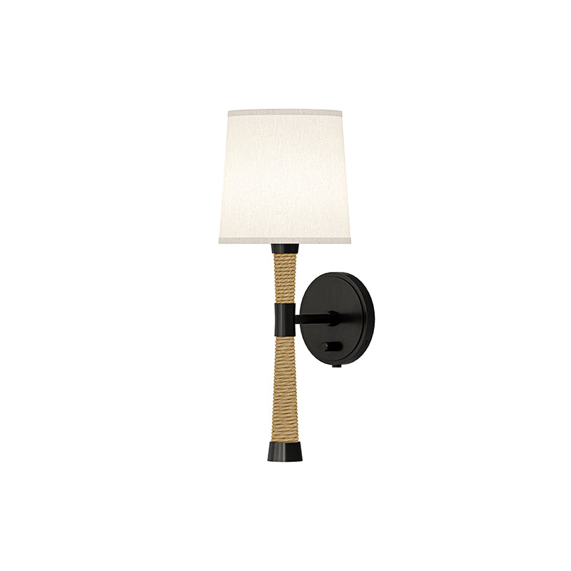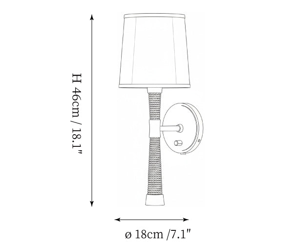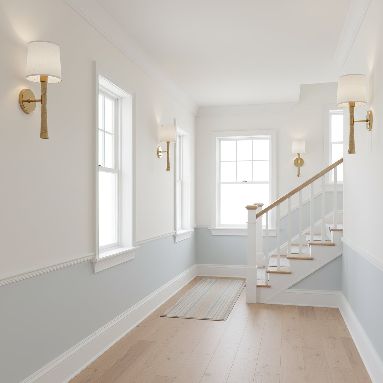 The Ripley Wall Lamp by Mooijane blends classic elegance with natural warmth. Featuring a metal frame paired with beige linen rope and a white fabric shade, it combines refined metallic luster with organic texture. A versatile design that complements both modern and rustic interiors with effortless sophistication.