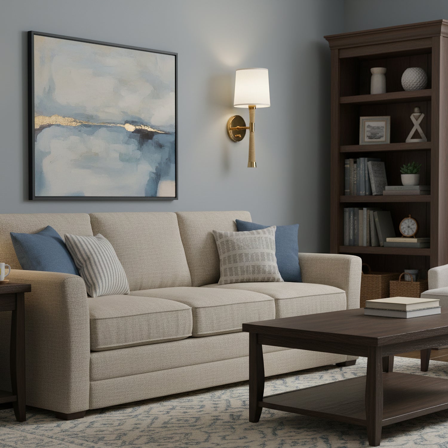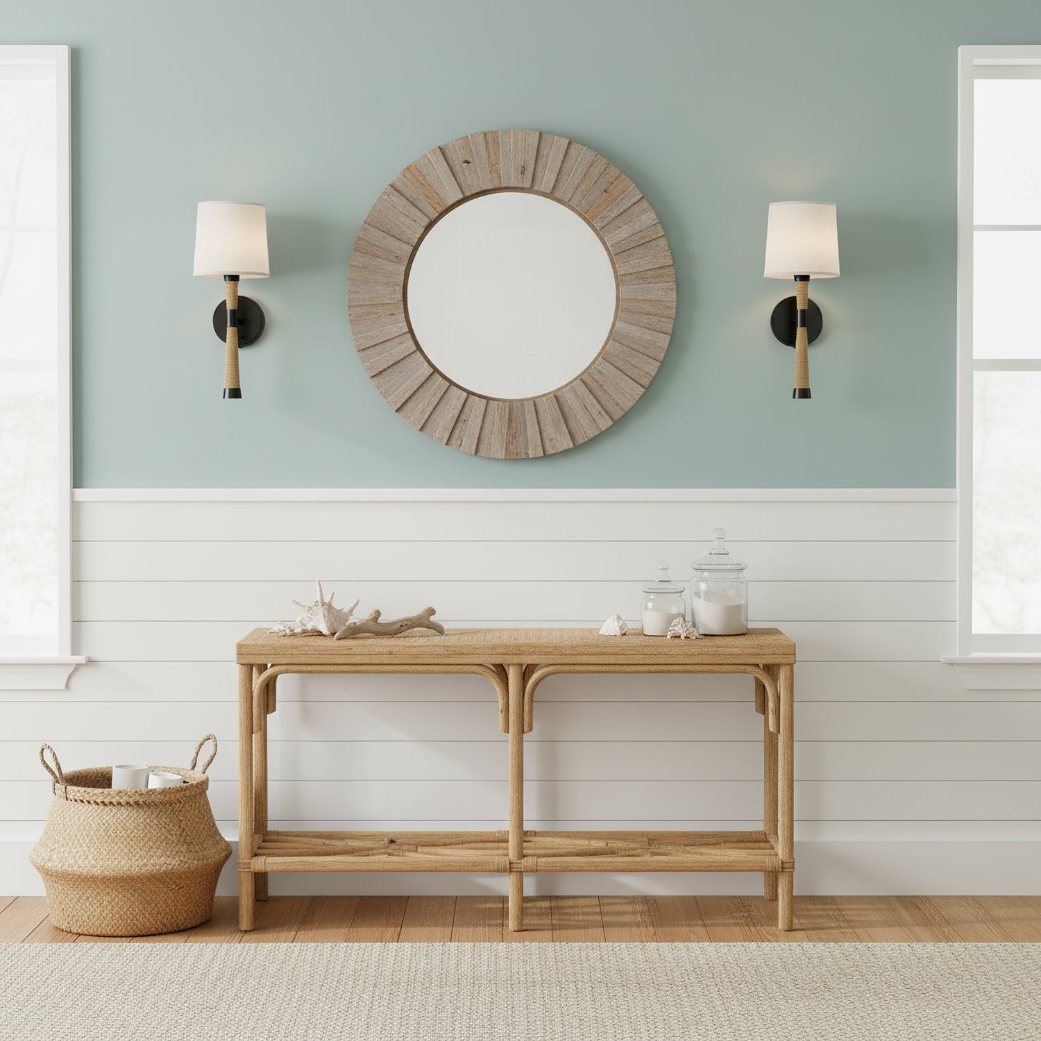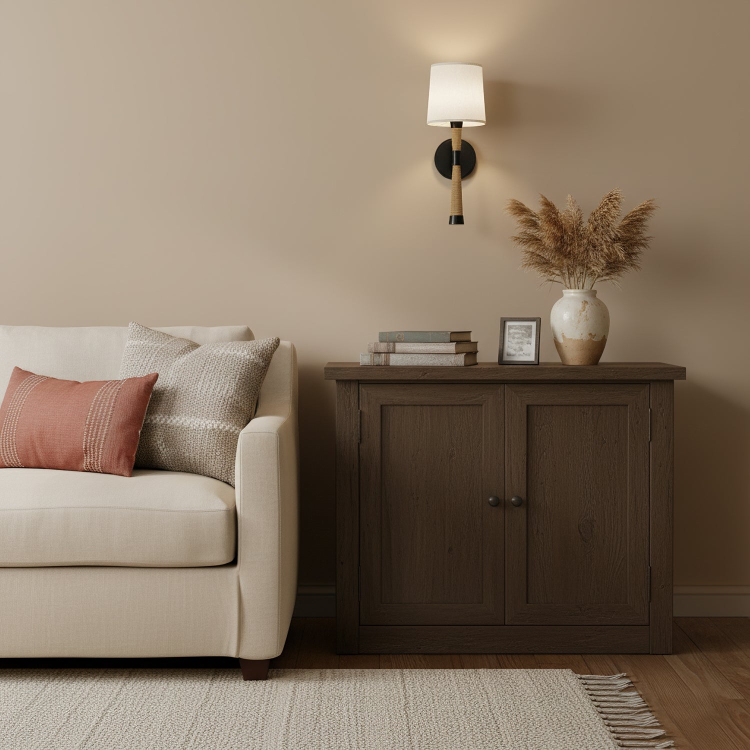 The Ripley Wall Lamp by Mooijane blends classic elegance with natural warmth. Featuring a metal frame paired with beige linen rope and a white fabric shade, it combines refined metallic luster with organic texture. A versatile design that complements both modern and rustic interiors with effortless sophistication.