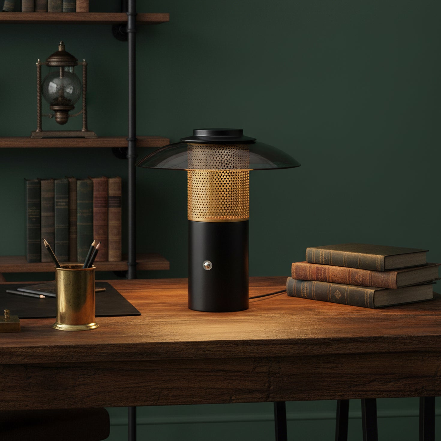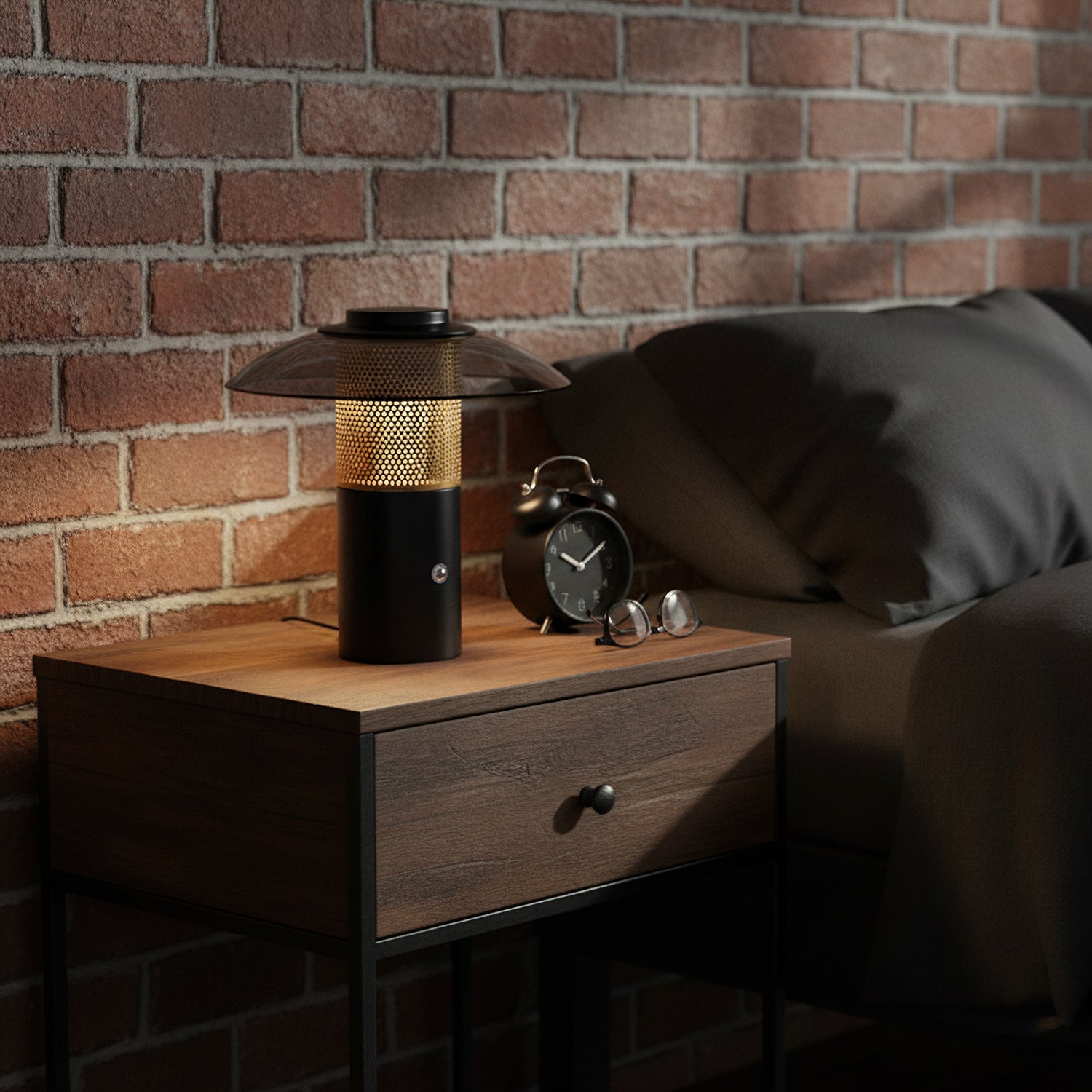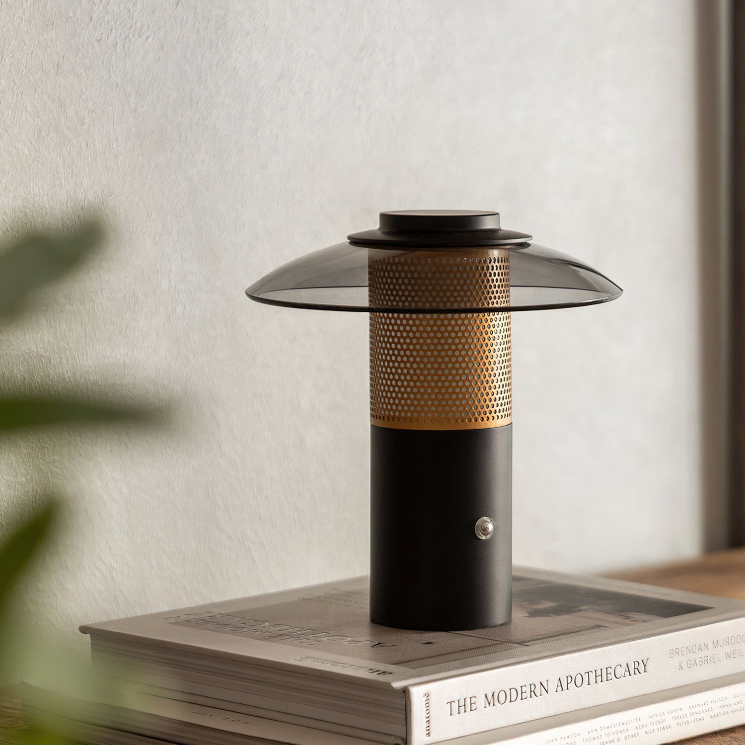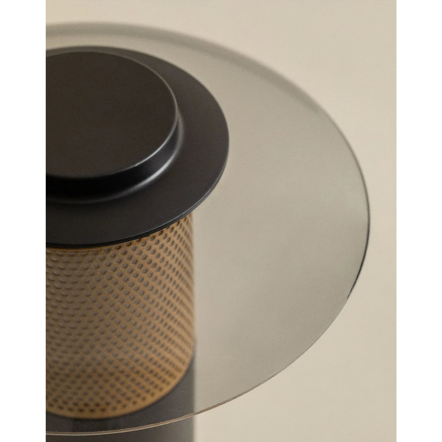 The Riscio table lamp by Mooijane seamlessly blends modern design with everyday functionality. Featuring a smoked glass shade and a matte black metal base with subtle perforated details, it exudes a refined industrial vibe. The built-in LED light creates a warm and inviting glow, making it an easy choice for creating a stylish ambiance in any bedroom, living room, or workspace.