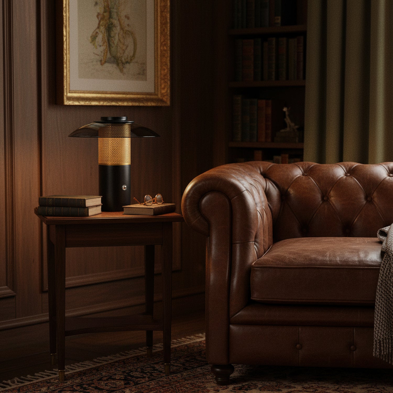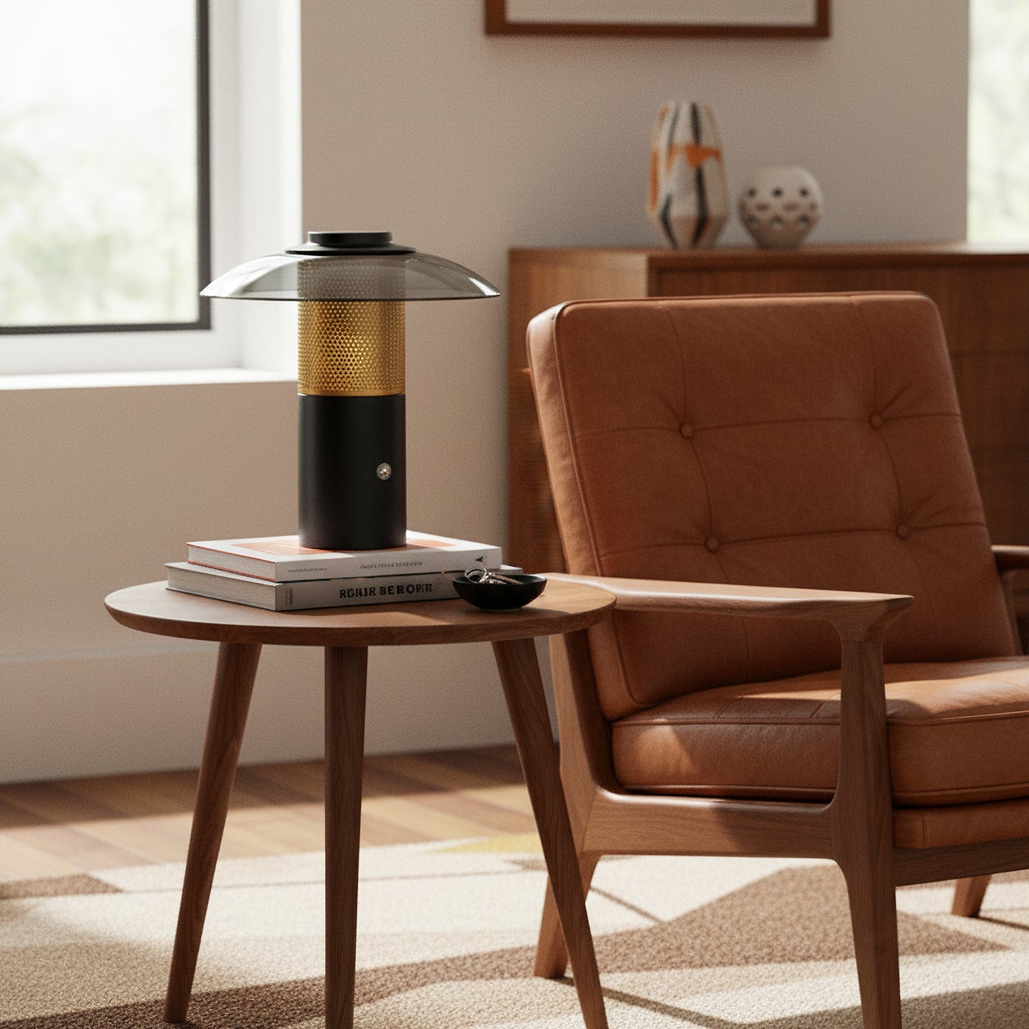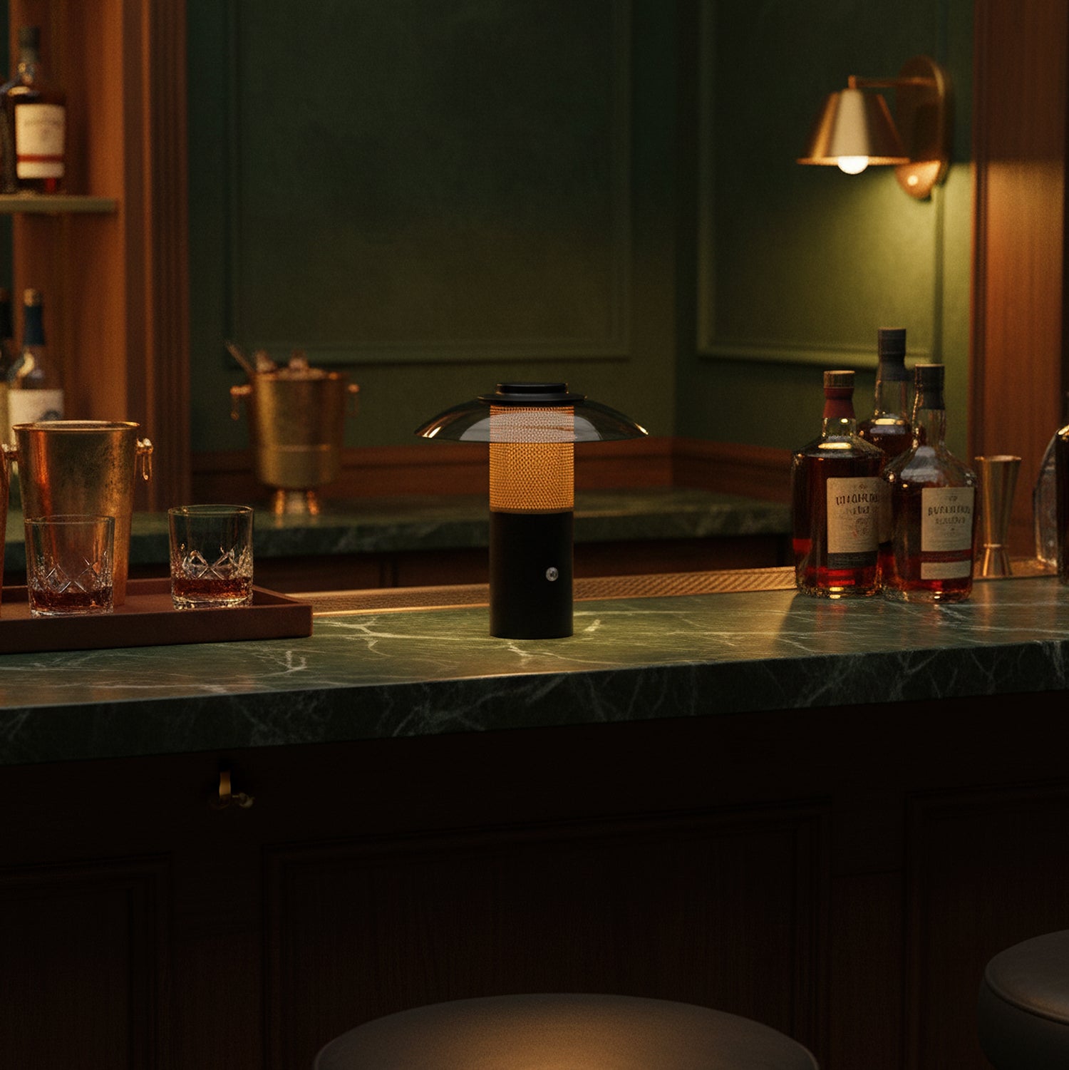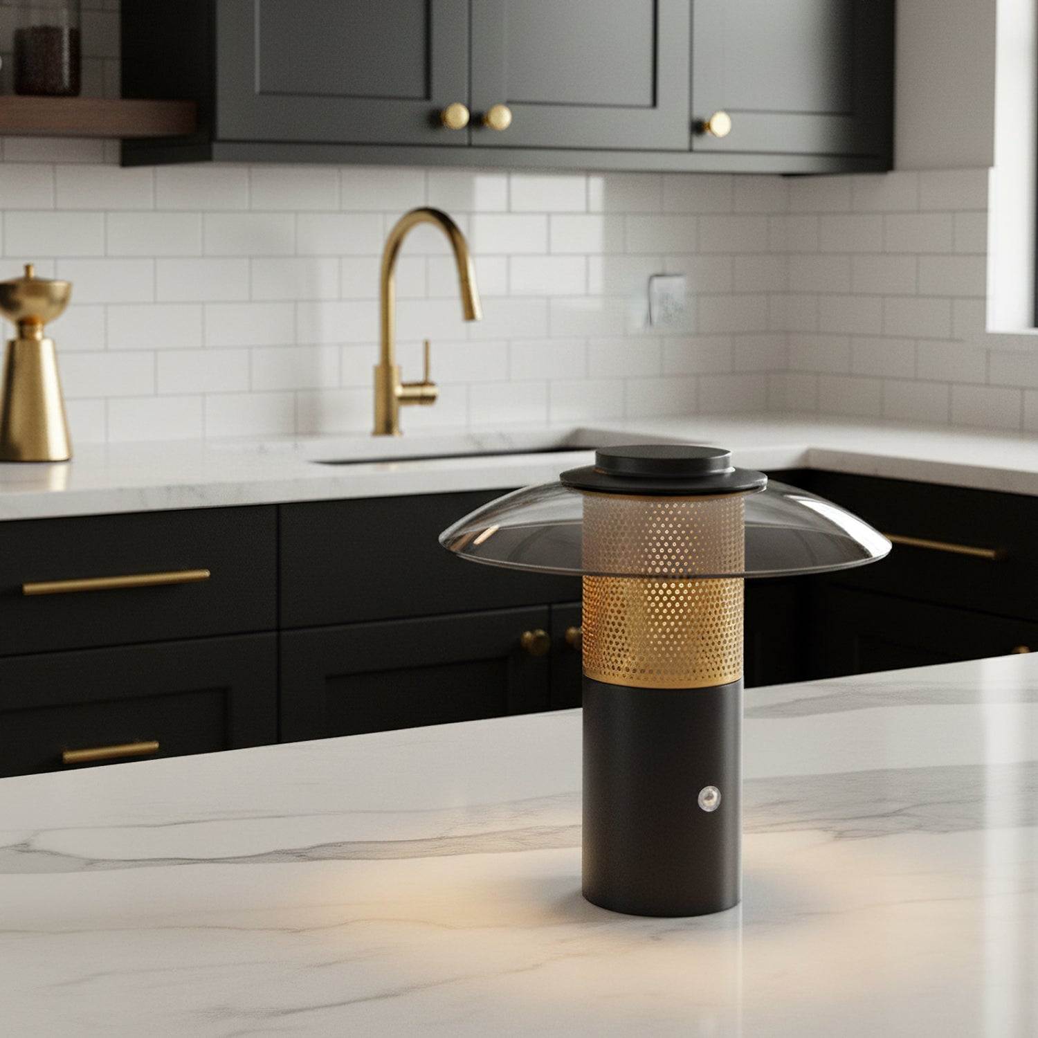 The Riscio table lamp by Mooijane seamlessly blends modern design with everyday functionality. Featuring a smoked glass shade and a matte black metal base with subtle perforated details, it exudes a refined industrial vibe. The built-in LED light creates a warm and inviting glow, making it an easy choice for creating a stylish ambiance in any bedroom, living room, or workspace.
