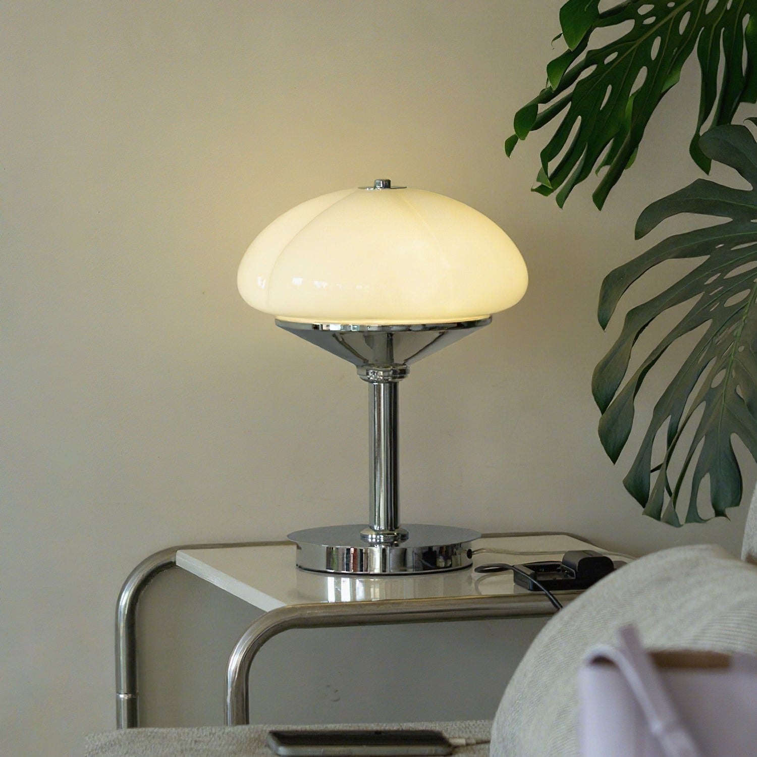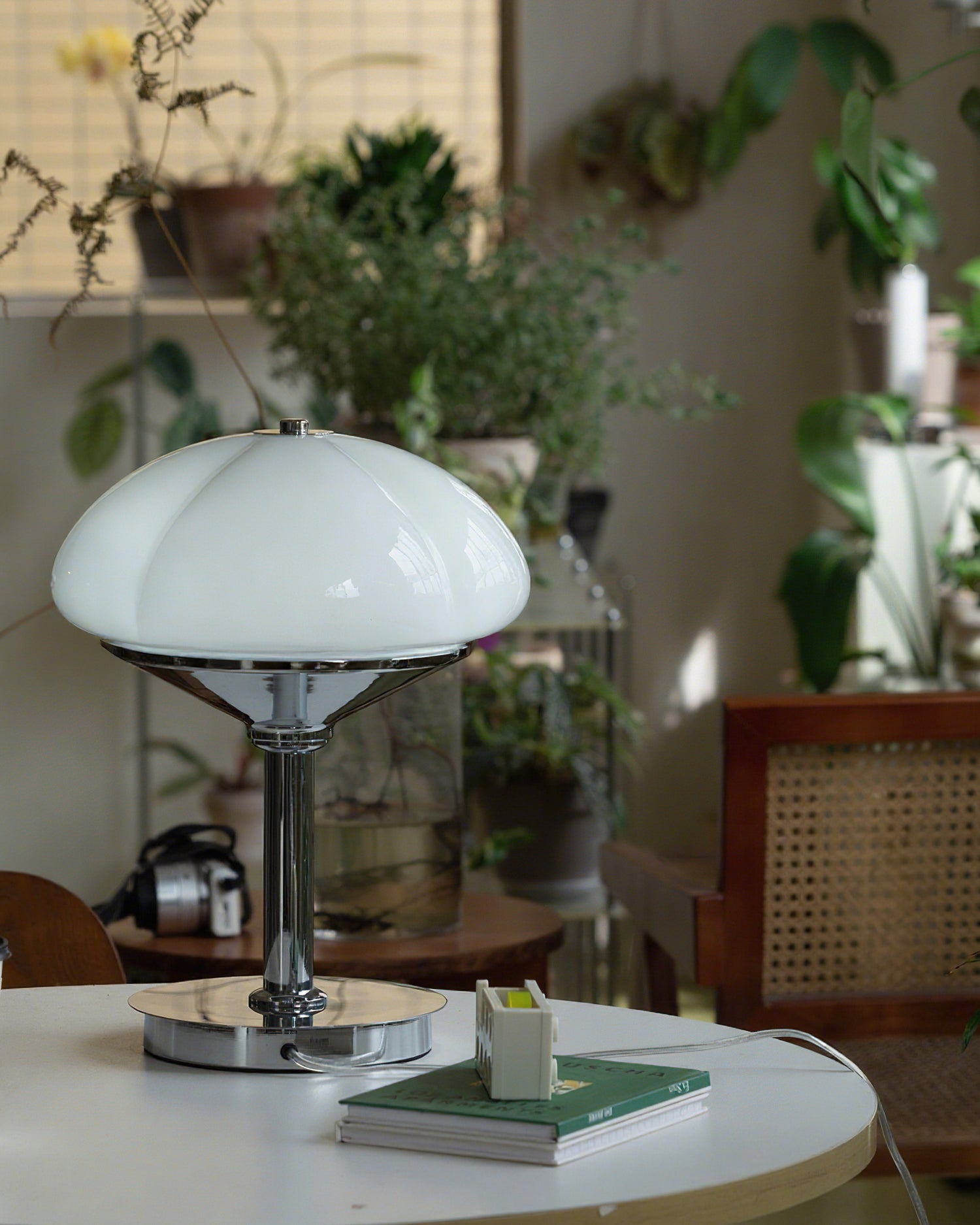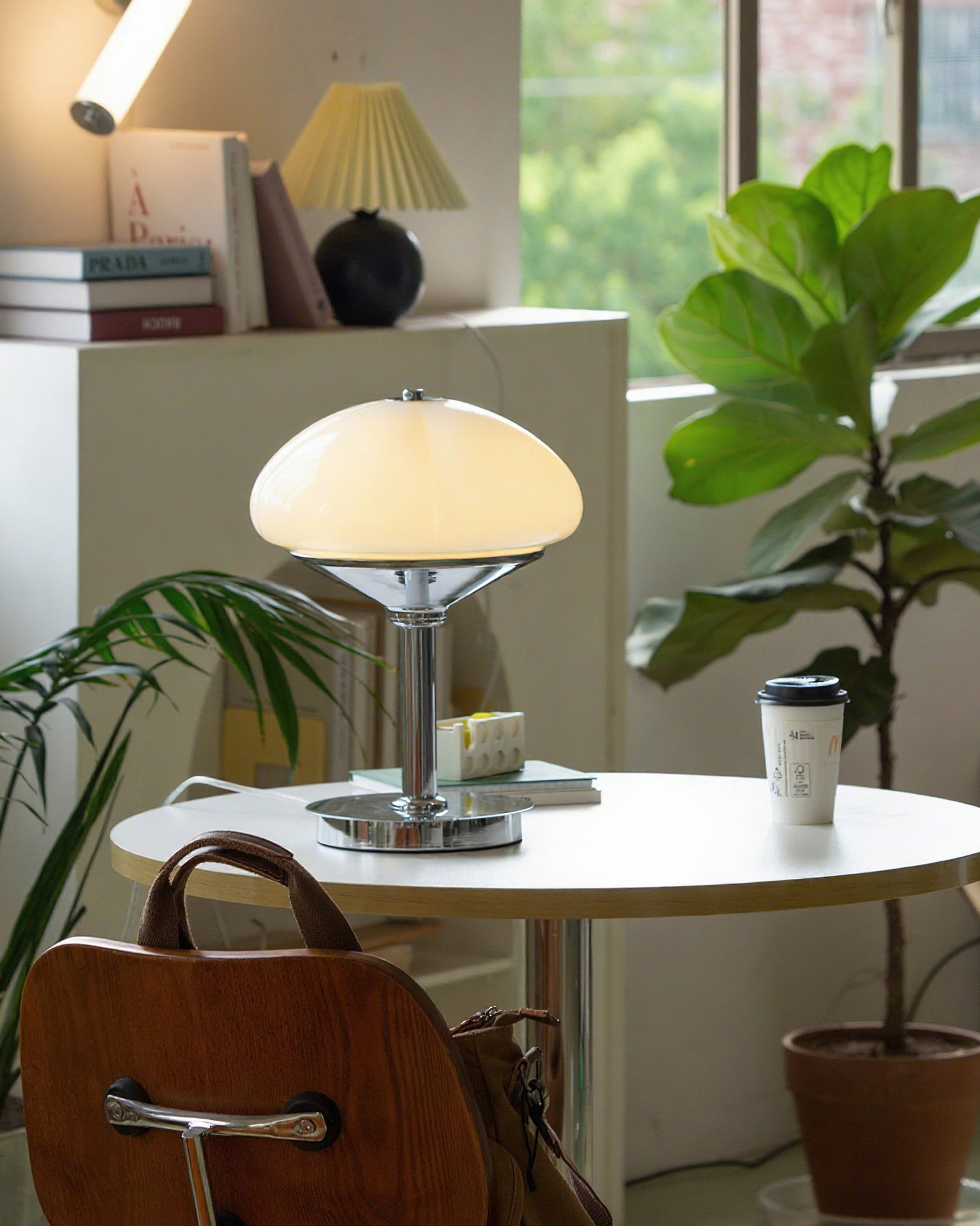 The Risig Table Lamp by Mooijane captures modern elegance with its clean, minimalist design. A rounded glass shade, soft and cloud-like, diffuses a warm, gentle glow that enhances any room with inviting ambiance. Its glossy metal body and base provide stability and refined contrast, balancing retro charm with contemporary style. More than just a functional light, this piece doubles as a sophisticated decorative accent for desks, nightstands, or living room corners.