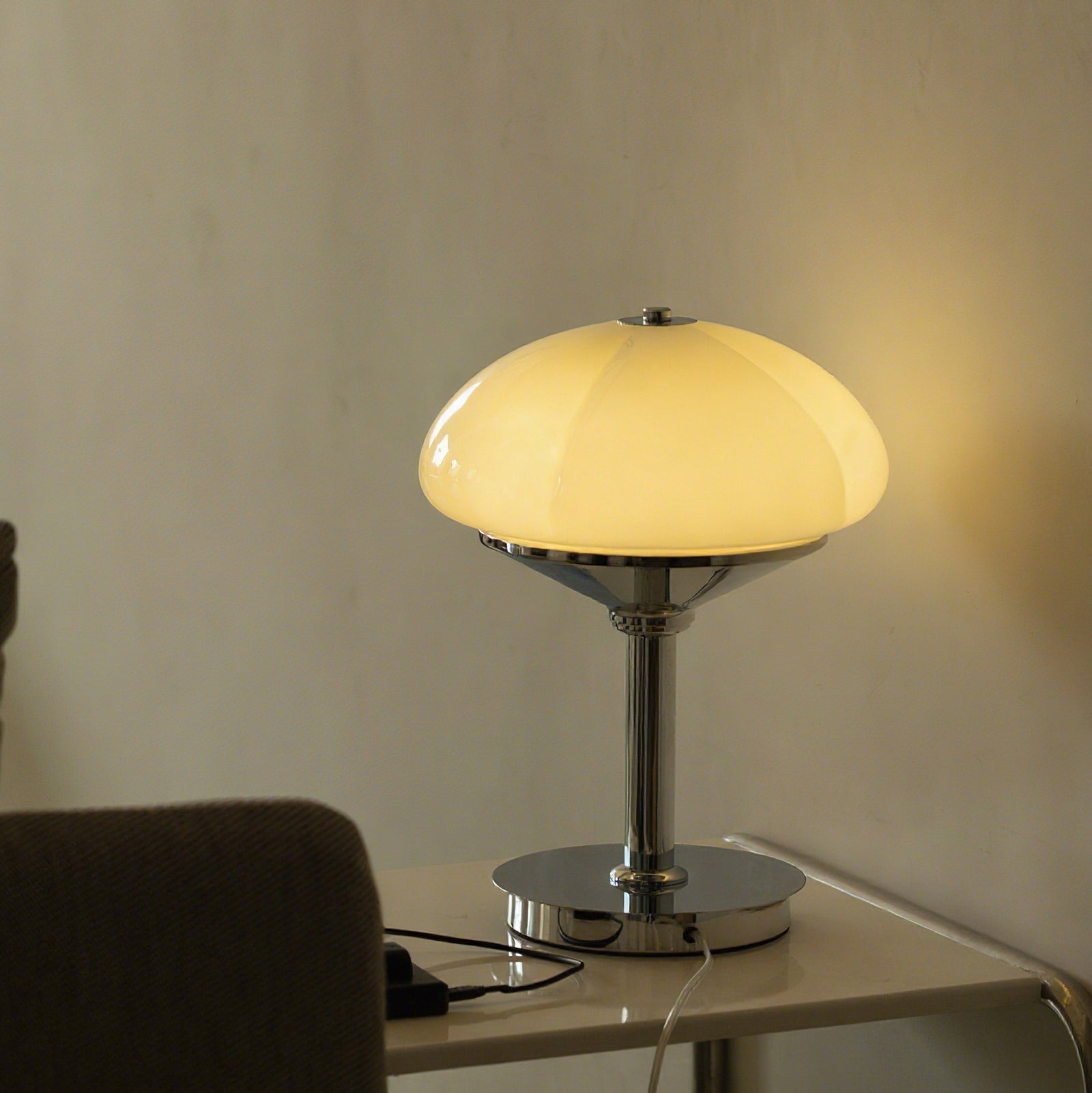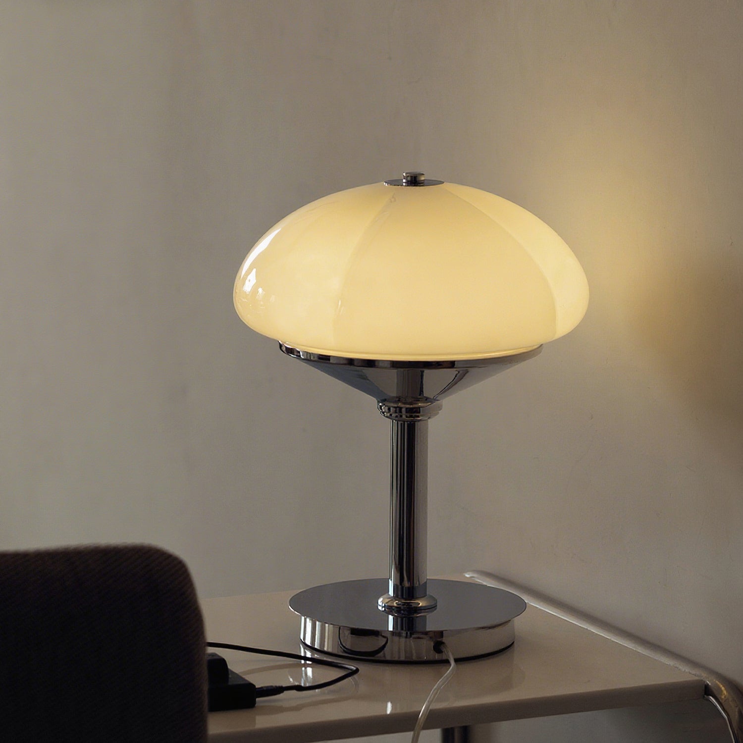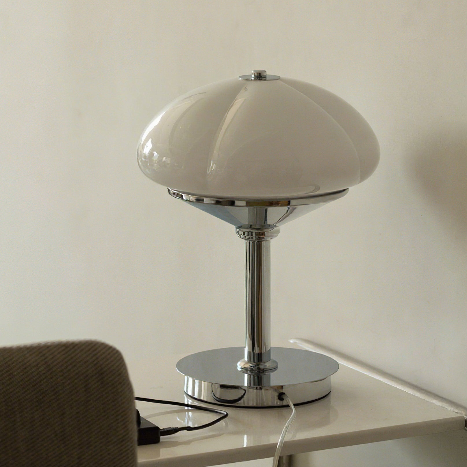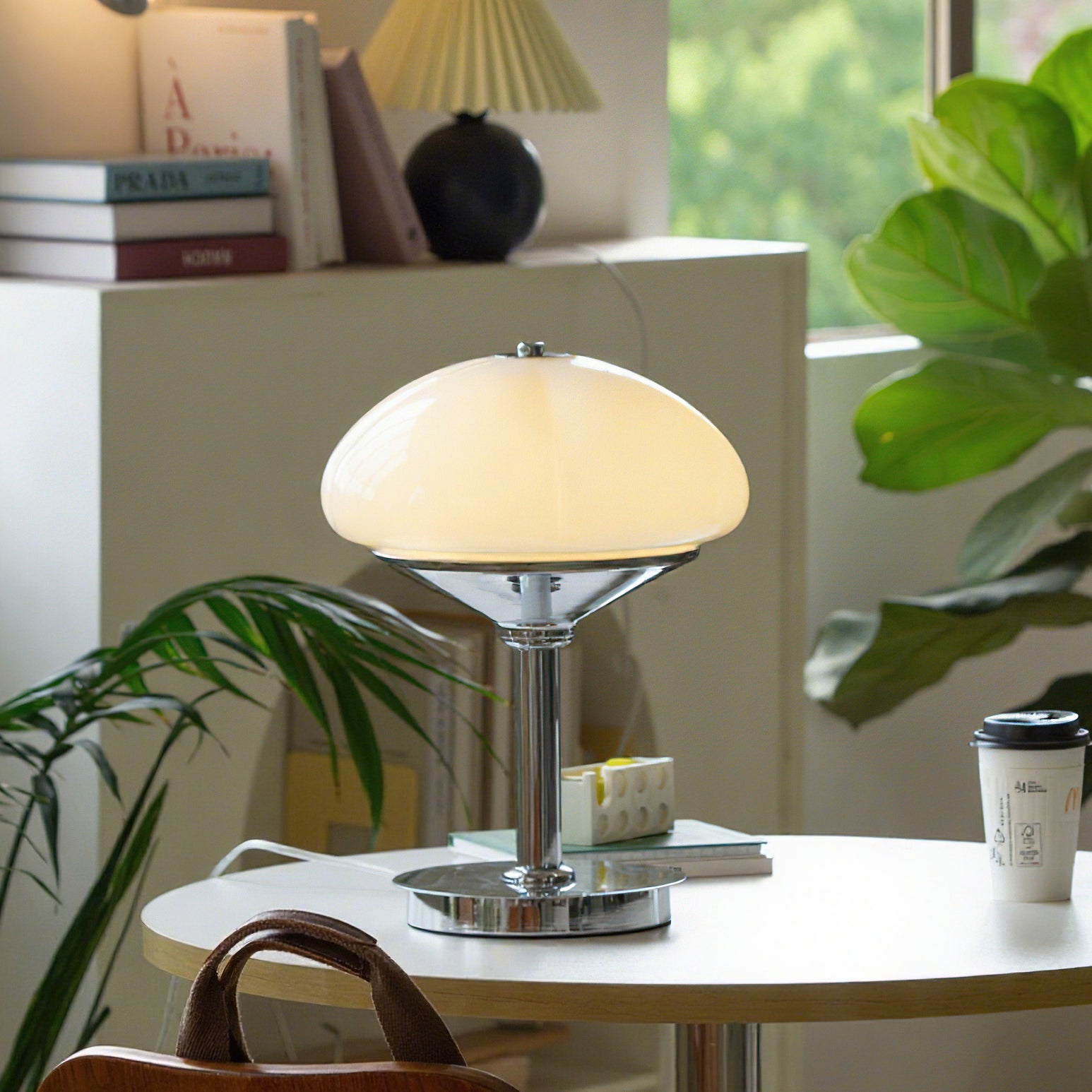 The Risig Table Lamp by Mooijane captures modern elegance with its clean, minimalist design. A rounded glass shade, soft and cloud-like, diffuses a warm, gentle glow that enhances any room with inviting ambiance. Its glossy metal body and base provide stability and refined contrast, balancing retro charm with contemporary style. More than just a functional light, this piece doubles as a sophisticated decorative accent for desks, nightstands, or living room corners.