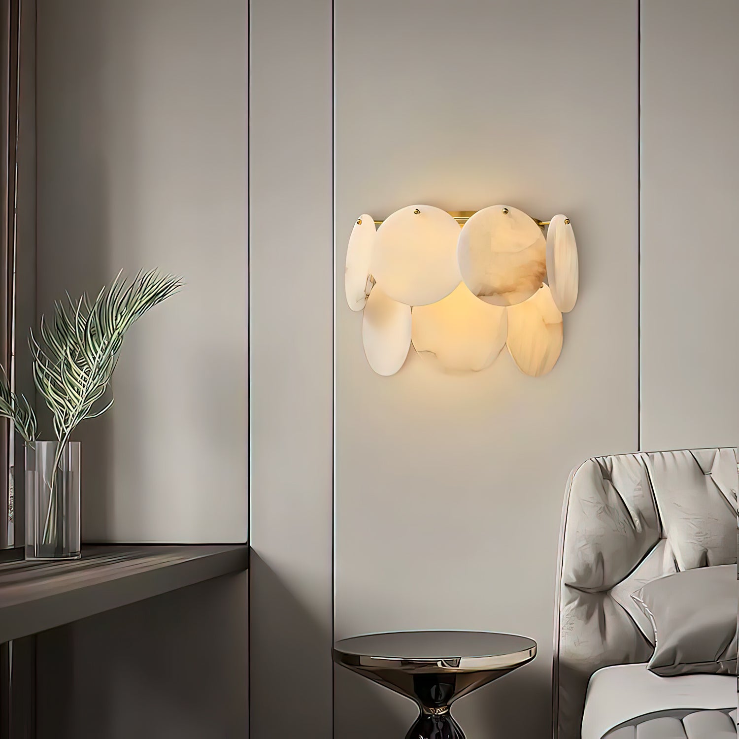 The Riviera Wall Light by Mooijane is a striking blend of natural beauty and refined craftsmanship. Featuring hand-polished alabaster pieces that glow with soft, organic warmth, each “shell” is unique in texture and translucency. Mounted on a rich brass frame, this wall light adds a touch of luxury and serenity to any space—perfect for hallways, bedrooms, or living areas. More than a fixture, it’s a sculptural statement that radiates timeless elegance.