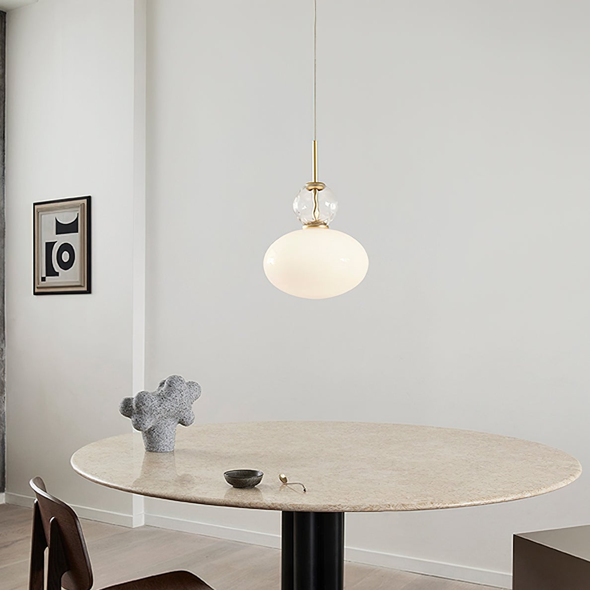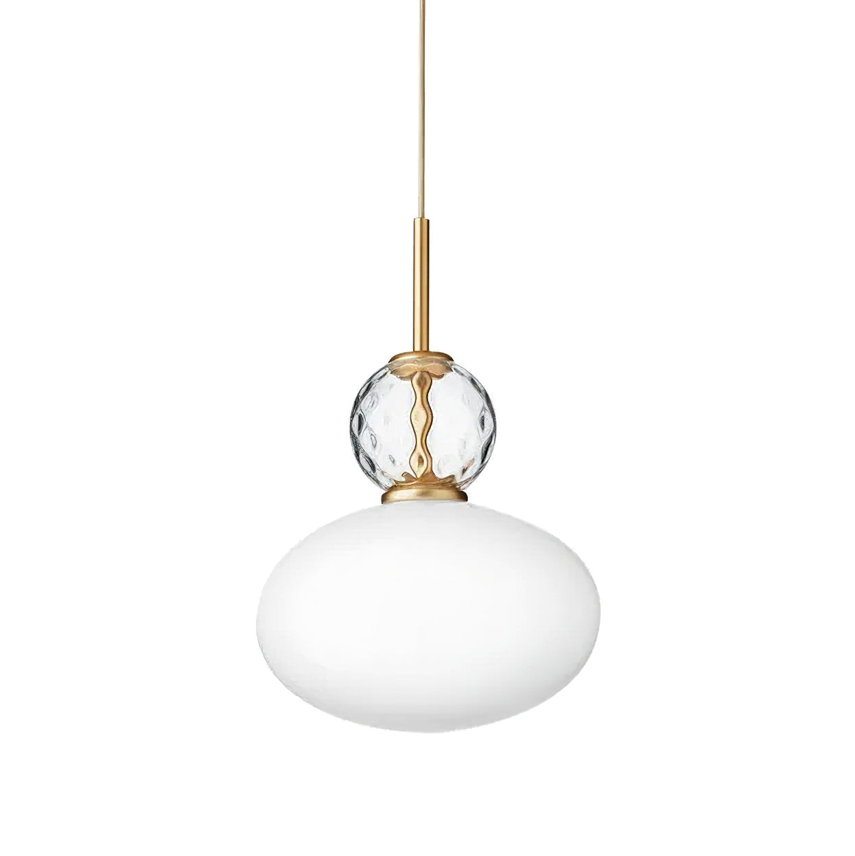 Indulge in luxury with the Rizzatto Pendant Light by Mooijane. The handcrafted oval glass shade features teardrop-shaped glass and clear pattern details, exuding elegance. The opalescent glass casts a soft, even light, adding a touch of sophistication to any room. Finished with satin iron accents for a timeless finish.