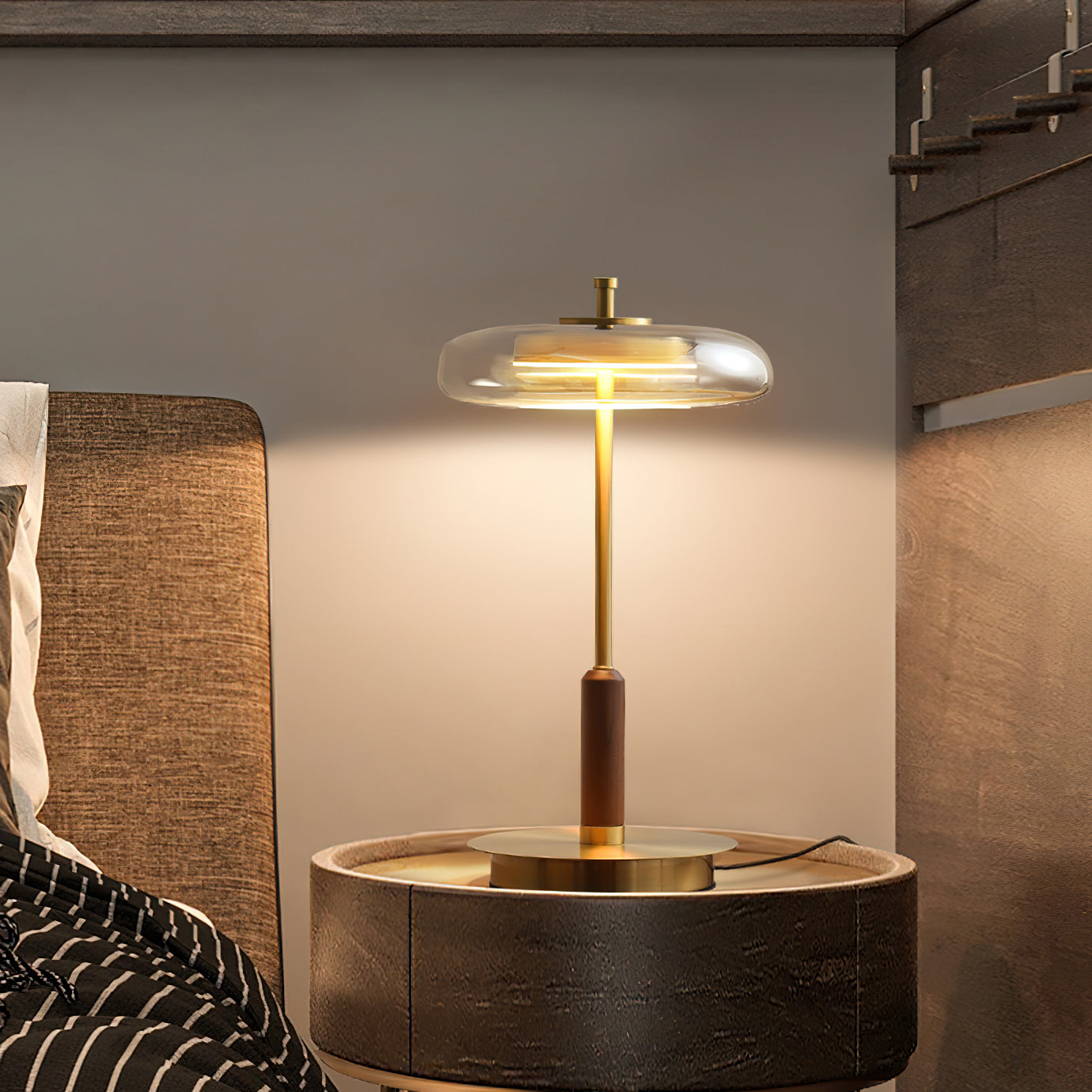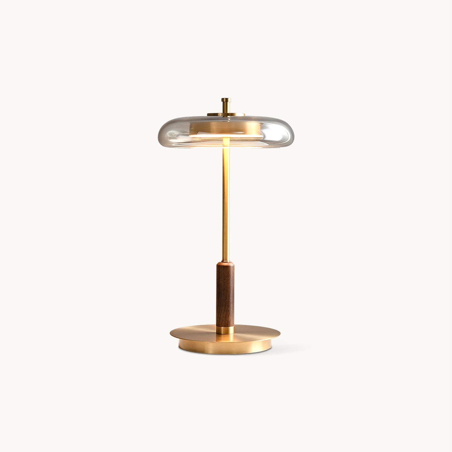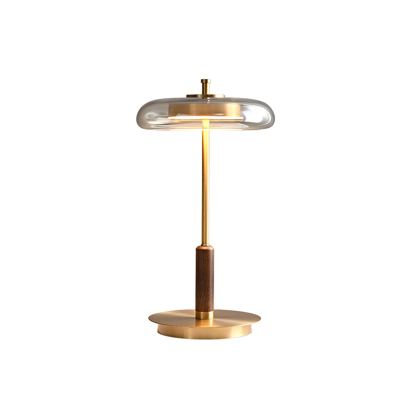 Brighten up your home with the Ronaldo Table Lamp from Mooijane. Crafted from premium walnut wood and polished brass, this table lamp offers warm light and a touch of sophistication. Its sleek glass shade adds a contemporary feel, perfect for modern, transitional or minimalist interiors.