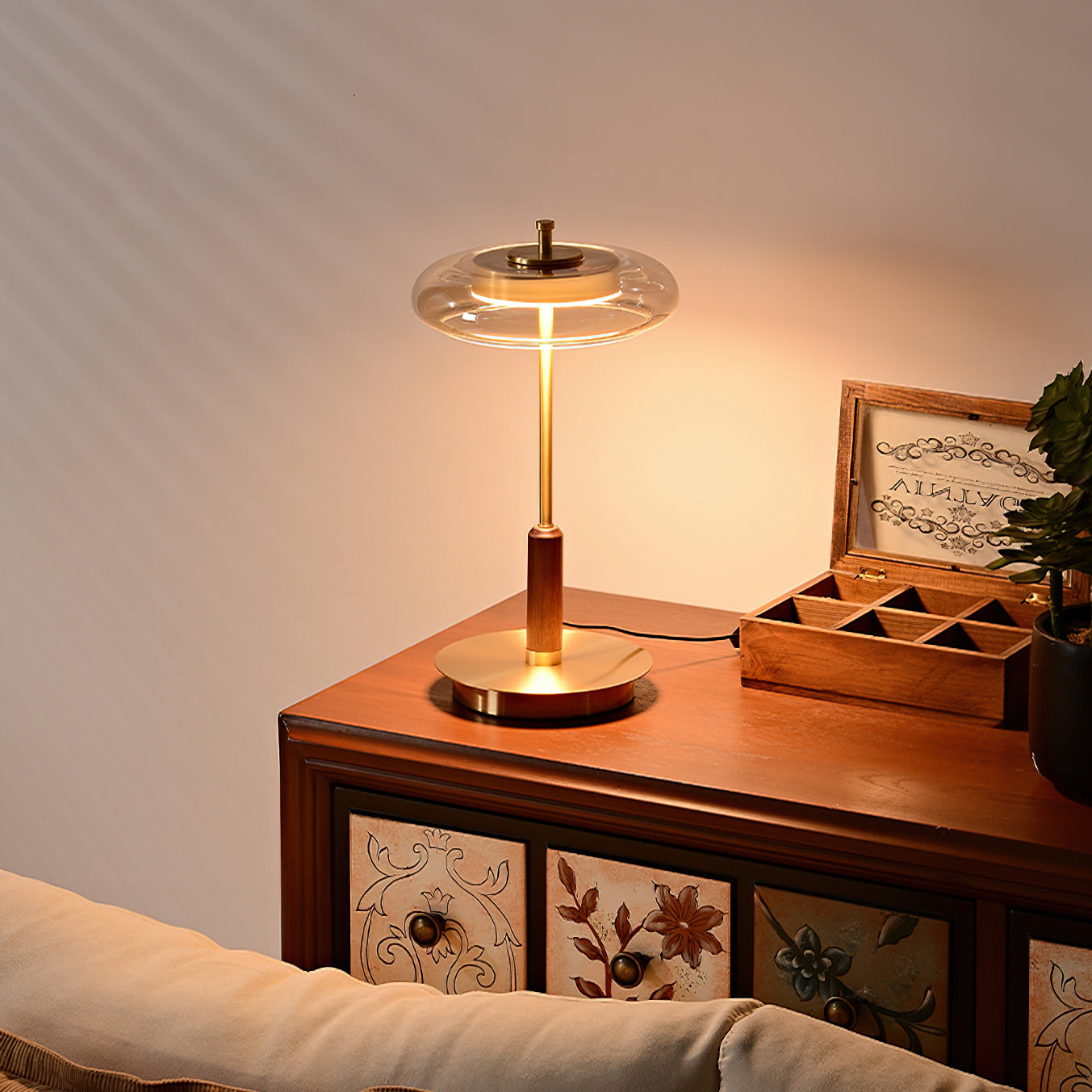 - Material: Brass, Wood, Glass.