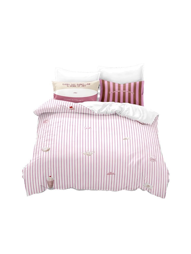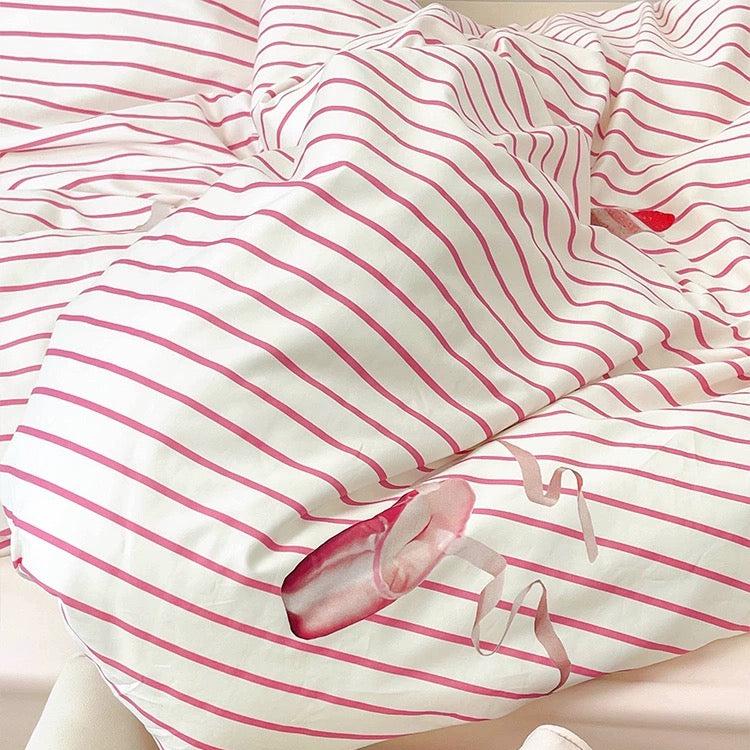 Transform your bedroom into a cozy and stylish haven with our Rose Girl Bedding Set. This premium 100% cotton striped four-piece set includes a cotton duvet cover, bed sheet, bed cover, quilt cover, and pillowcase, perfectly coordinated to enhance your soft girl room decor and coquette bedroom decor. The elegant striped design adds a touch of sophistication while maintaining a playful and cute aesthetic, making it an ideal choice for bedroom decor enthusiasts and those seeking a charming cute gift for her. Crafted from high-quality cotton, this striped bedding set ensures a soft and comfortable night's sleep, while its durable construction withstands everyday use.