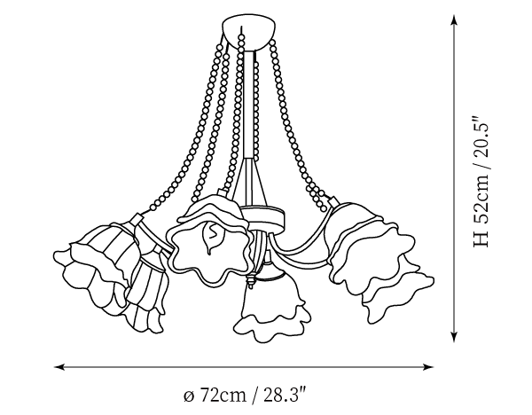- 6-Lights Size: Dia 72cm x H 52cm / ∅ 28.3″ x H 20.5″