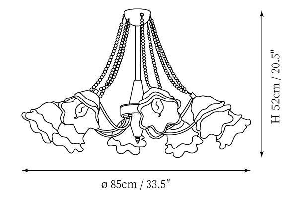 - 8-Lights Size: Dia 85cm x H 52cm / ∅ 33.5″ x H 20.5″