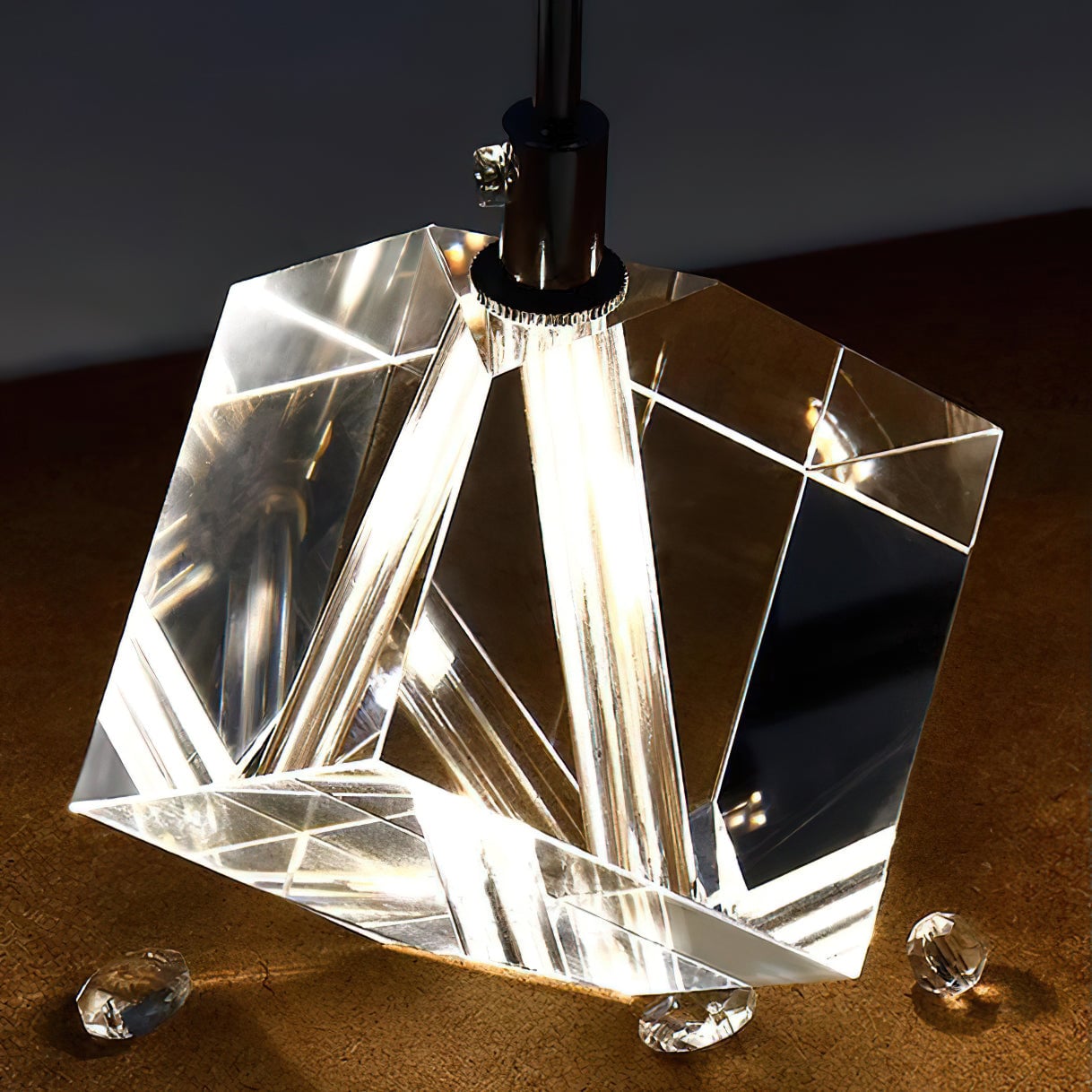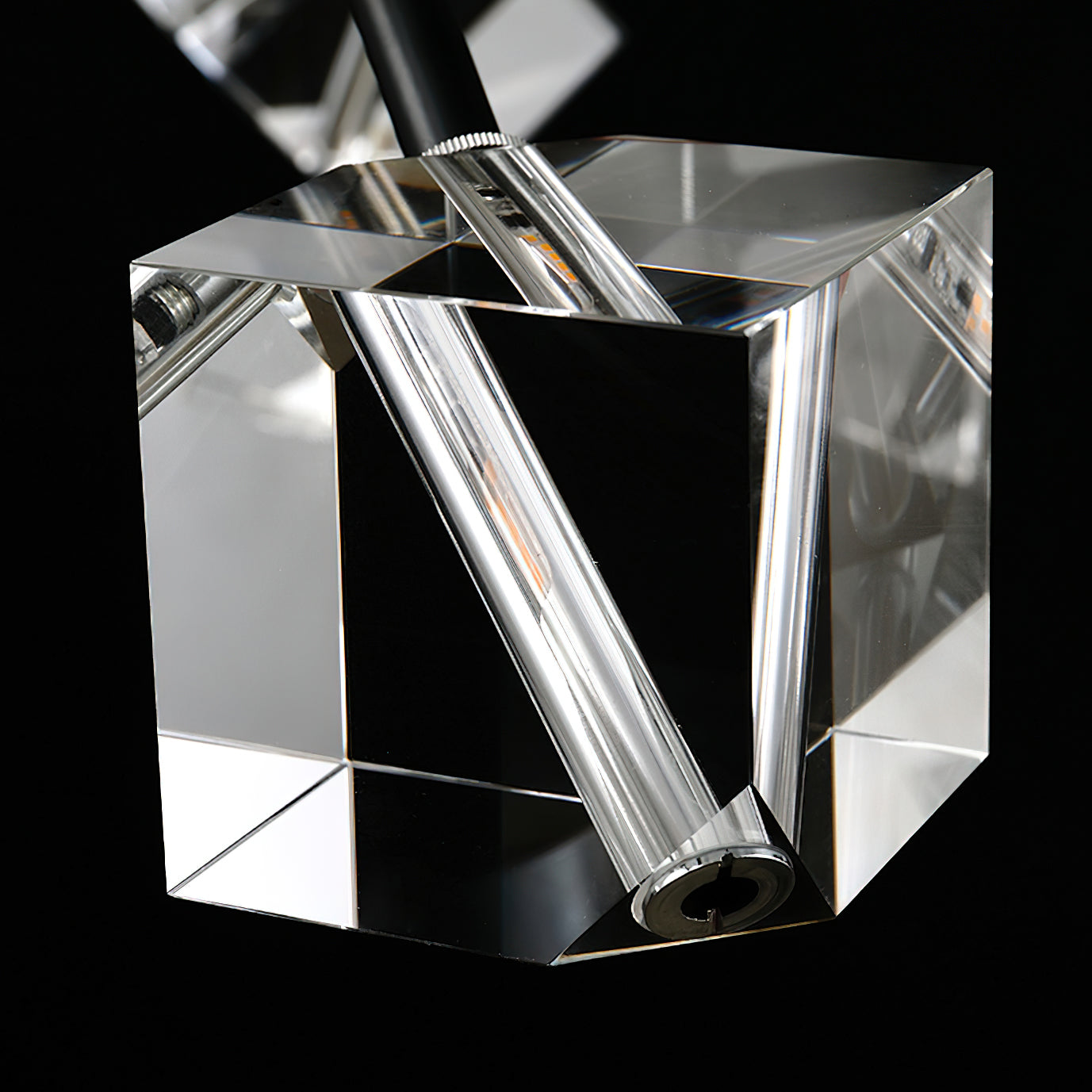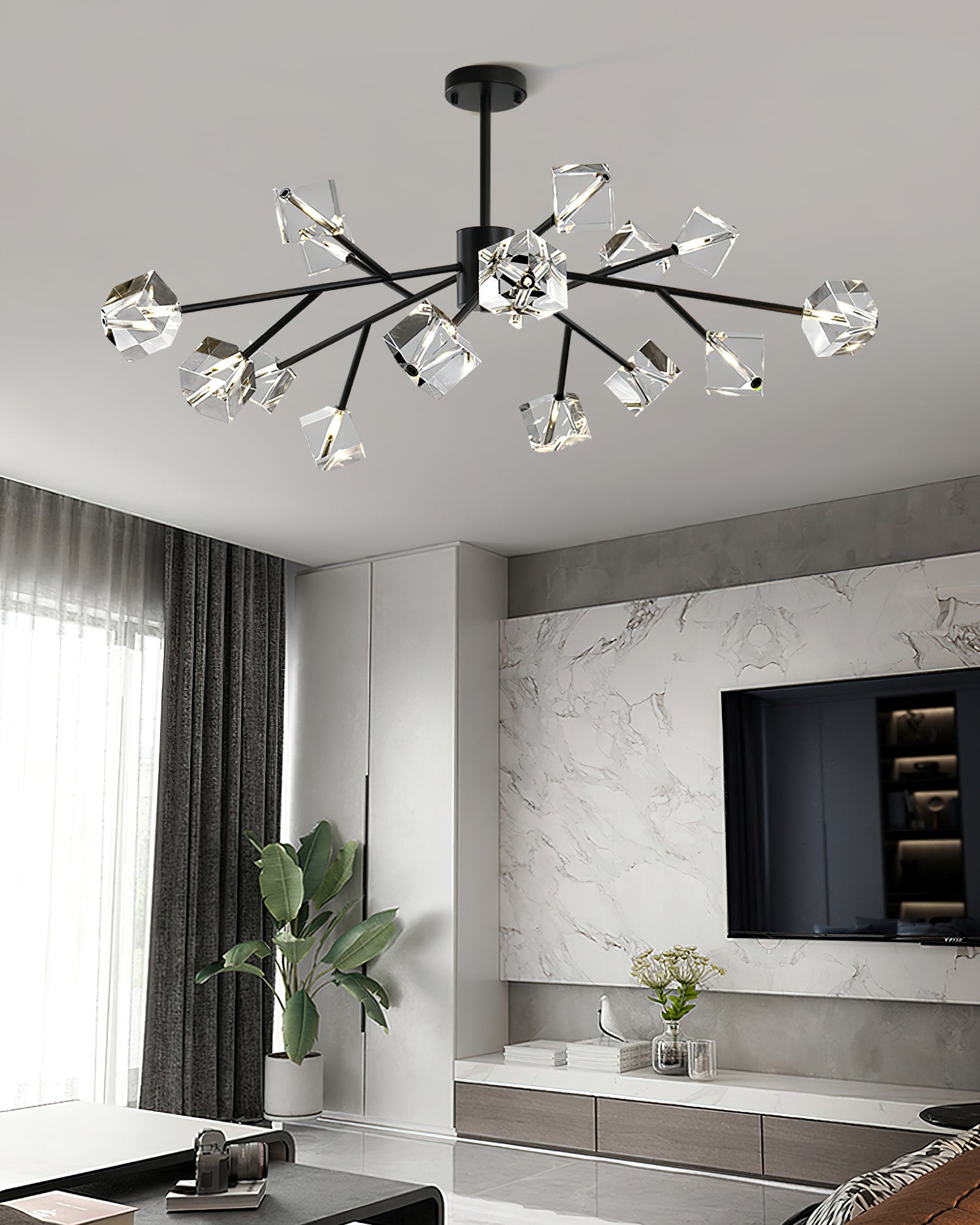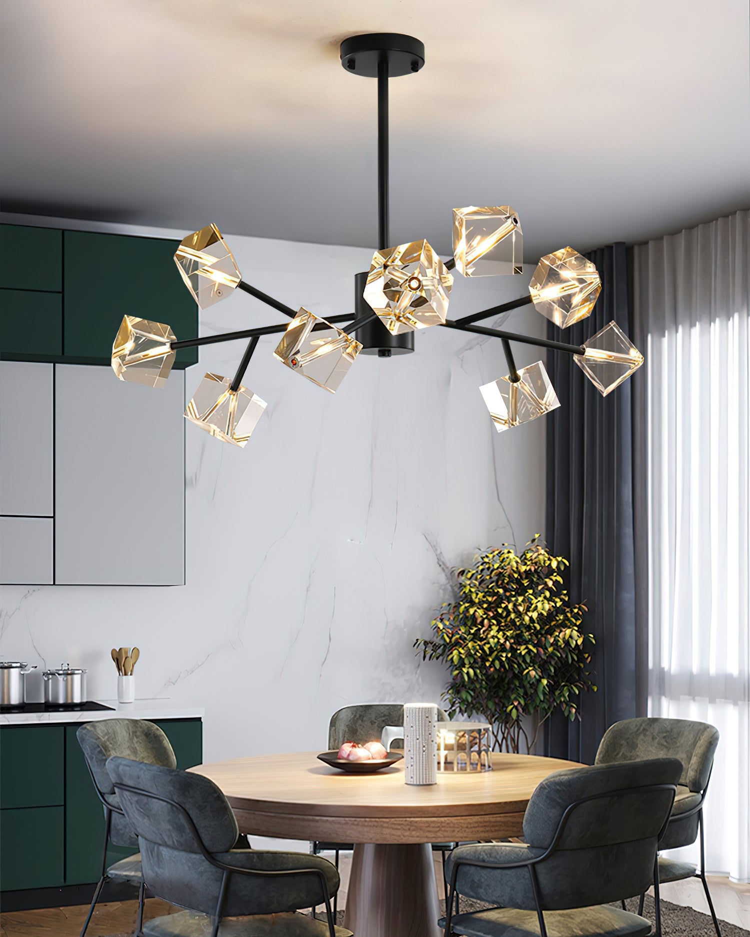 Light up your interior with this Rubik's Cube Ten Positive Chandelier. Crafted with square crystal, its diamond-like internal refraction and reflection illuminate the room with dazzling light. Finished with crystal prismatic cutting, each angle displays a different charm of light and shadow. Enjoy a clutter-free look without too many modifications, even during the day when natural light is available. Soft edges provide a safe touch, while its crystal clarity, delicate texture, and gorgeous refractions make it an opulent touch of sophistication.