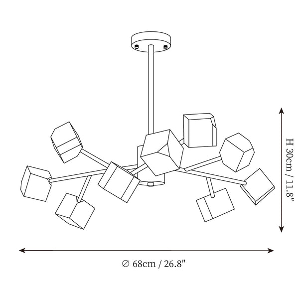 - 9Heads Size: Dia 68cm x H 30cm / ∅ 26.8″ x H 11.8″