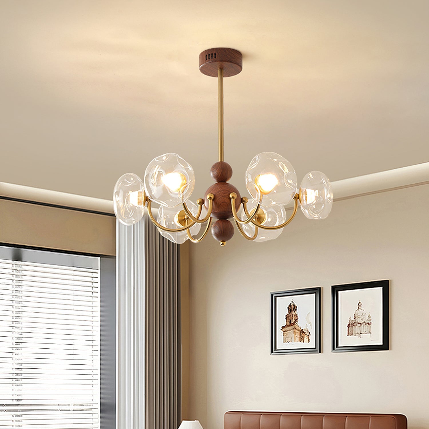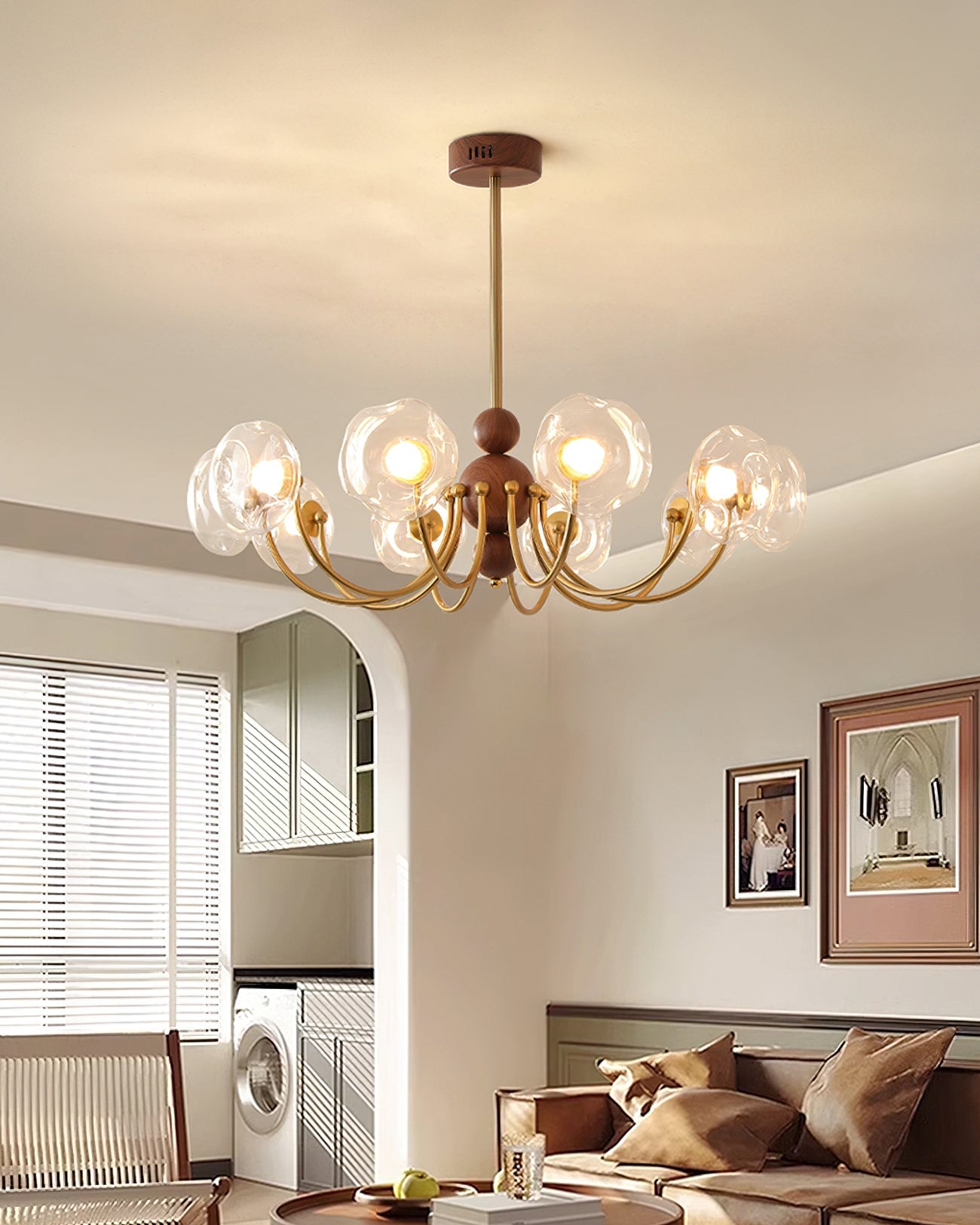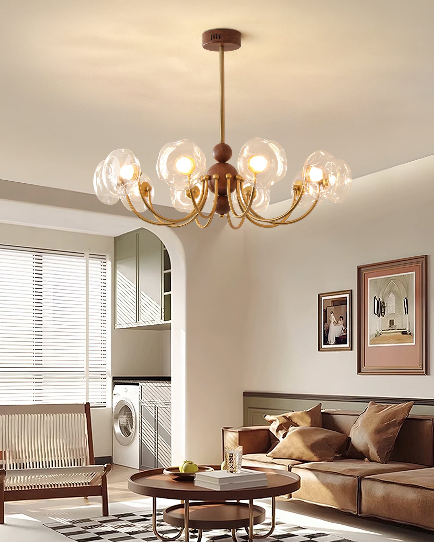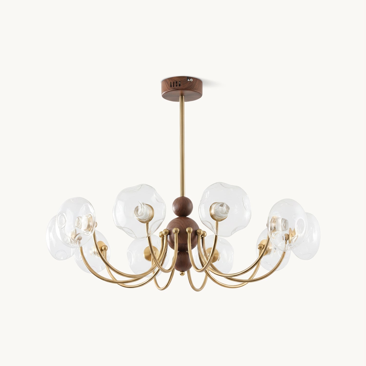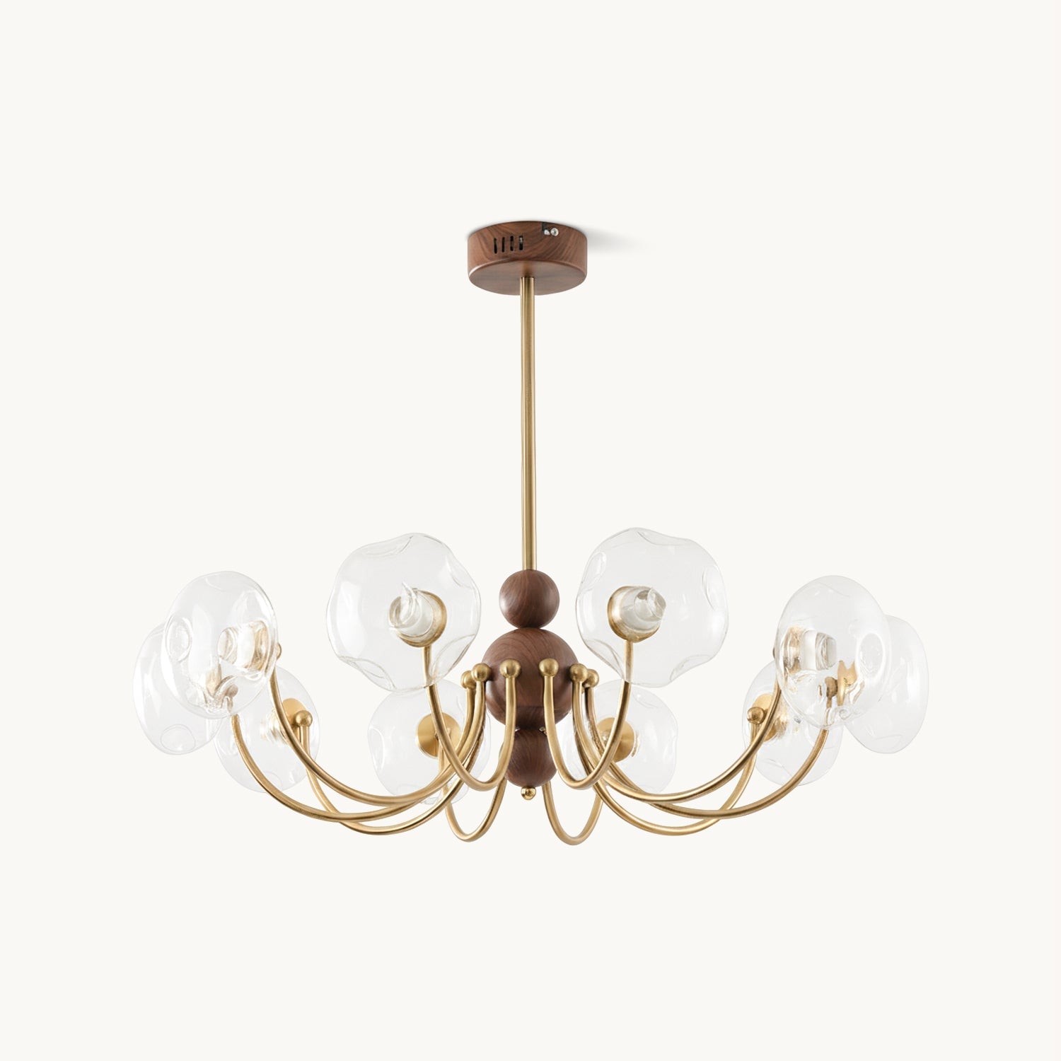 The Rudyard Chandelier from Mooijane blends metal and glass to create a modern, artistic centerpiece. Elegantly curved metal arms support clear glass shades with organic, wave-like textures that diffuse light softly, casting a warm, layered glow. Minimal yet refined, this chandelier enhances living rooms, dining areas, or bedrooms with style, sophistication, and a touch of contemporary elegance.