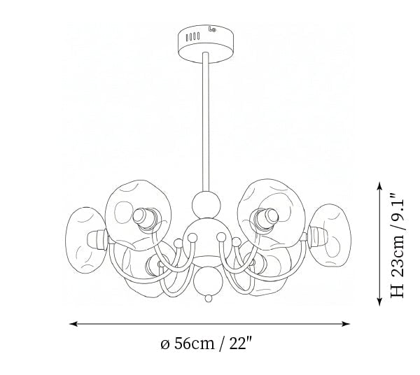 - 6-Lights Size: Dia 56cm x H 23cm / ∅22″ x H 9.1″