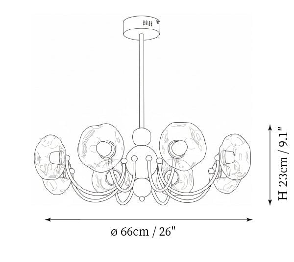 - 8-Lights Size: Dia 66cm x H 23cm / ∅ 26″ x H 9.1″