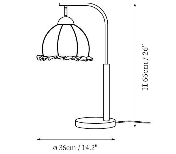Elevate your home decor with the Ruffle Retro Table Lamp from Mooijane. Designed with inspiration from the delicate lily of the valley, this lamp exudes elegance and sophistication. Its streamlined design and exquisite appearance make it the perfect finishing touch for modern homes. Bring a touch of retro style and a symbol of happiness and hope into your space.