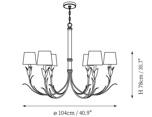 - 6-Lights Size: Dia 104cm x H 78cm / ∅ 40.9″ x H 30.7″