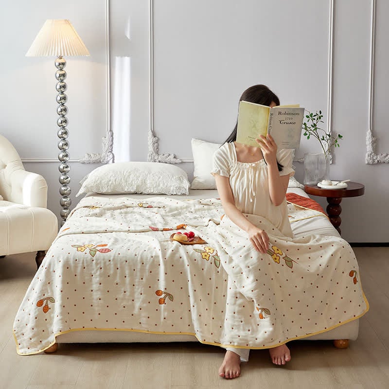 Made from lyocell fiber with five layers of gauze, this quilt features a sleek, glossy texture that is both comfortable and breathable, providing a fresh and airy experience against your skin. The vibrant colors are long-lasting and resistant to machine and water washes. With a bacterial inhibition rate exceeding 99%, it ensures a peaceful and worry-free sleep.