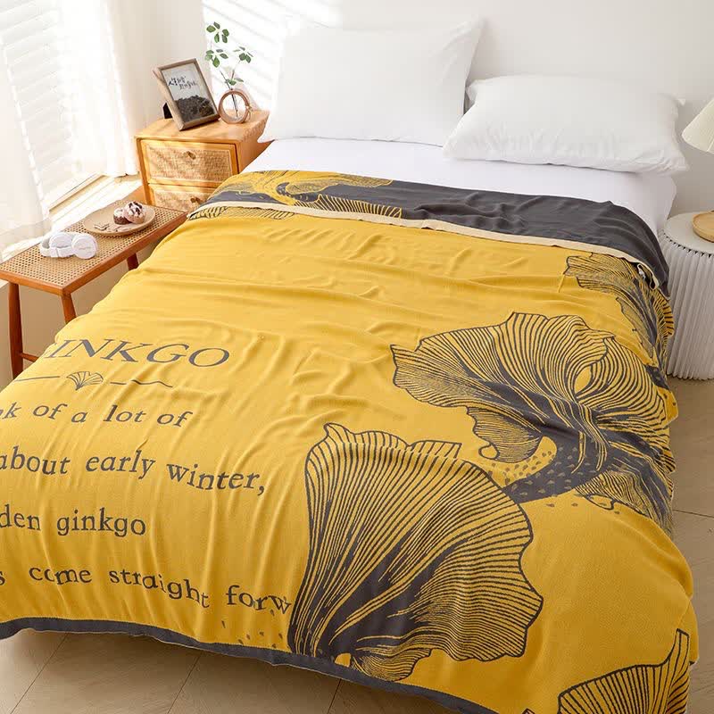 Rustic Ginkgo Leaf Bamboo Fiber Blanket
