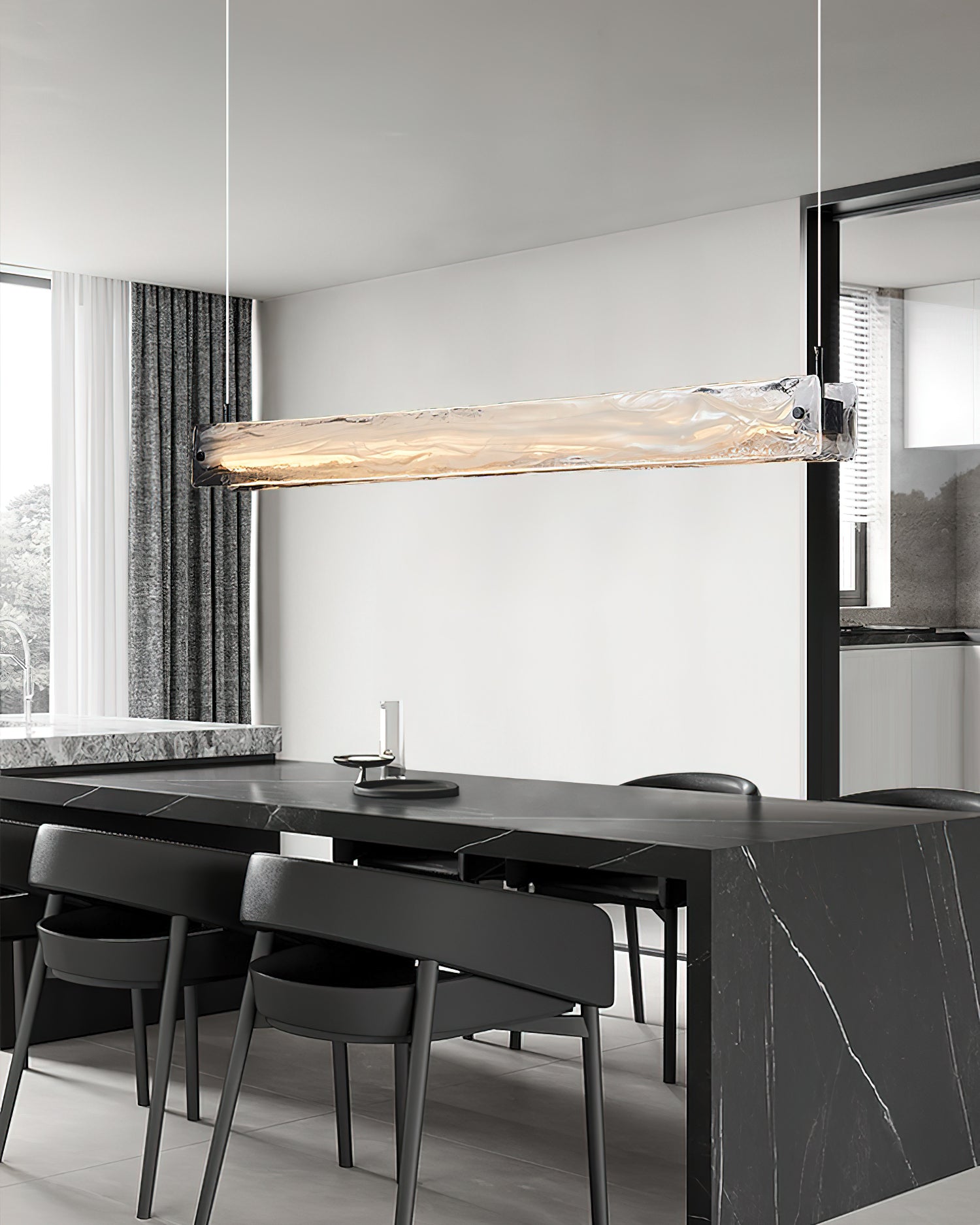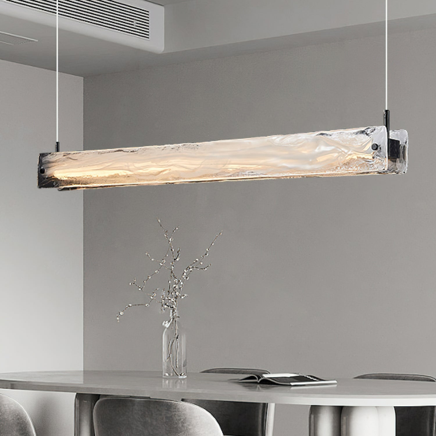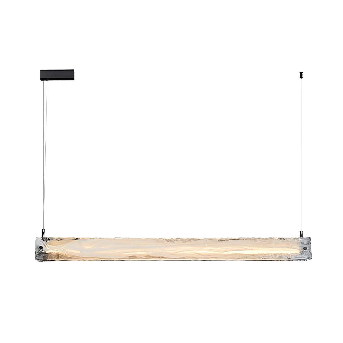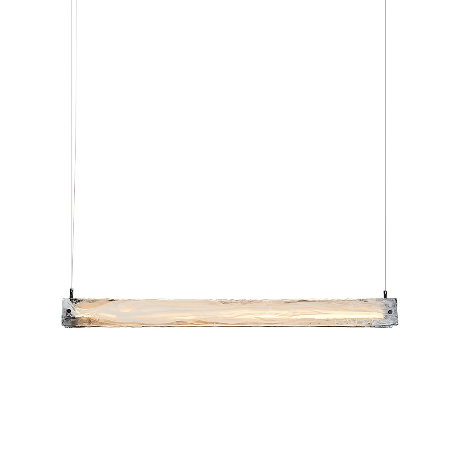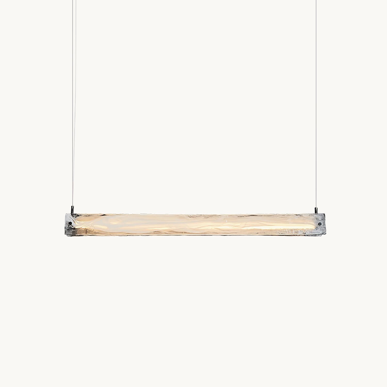 Upgrade your space with the luxurious Saanen Linear Chandelier. Featuring a sleek rectangular design and made from high-quality metal and glass, this chandelier will add a touch of elegance to any room. Available in two sizes, it's perfect for a kitchen island or dining room. Luxury meets modern design for a stunning style.
