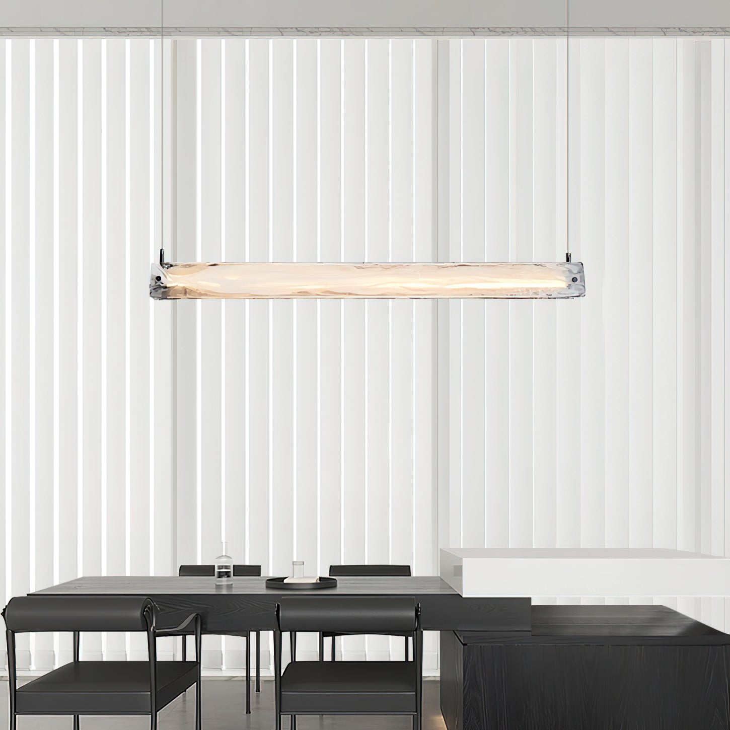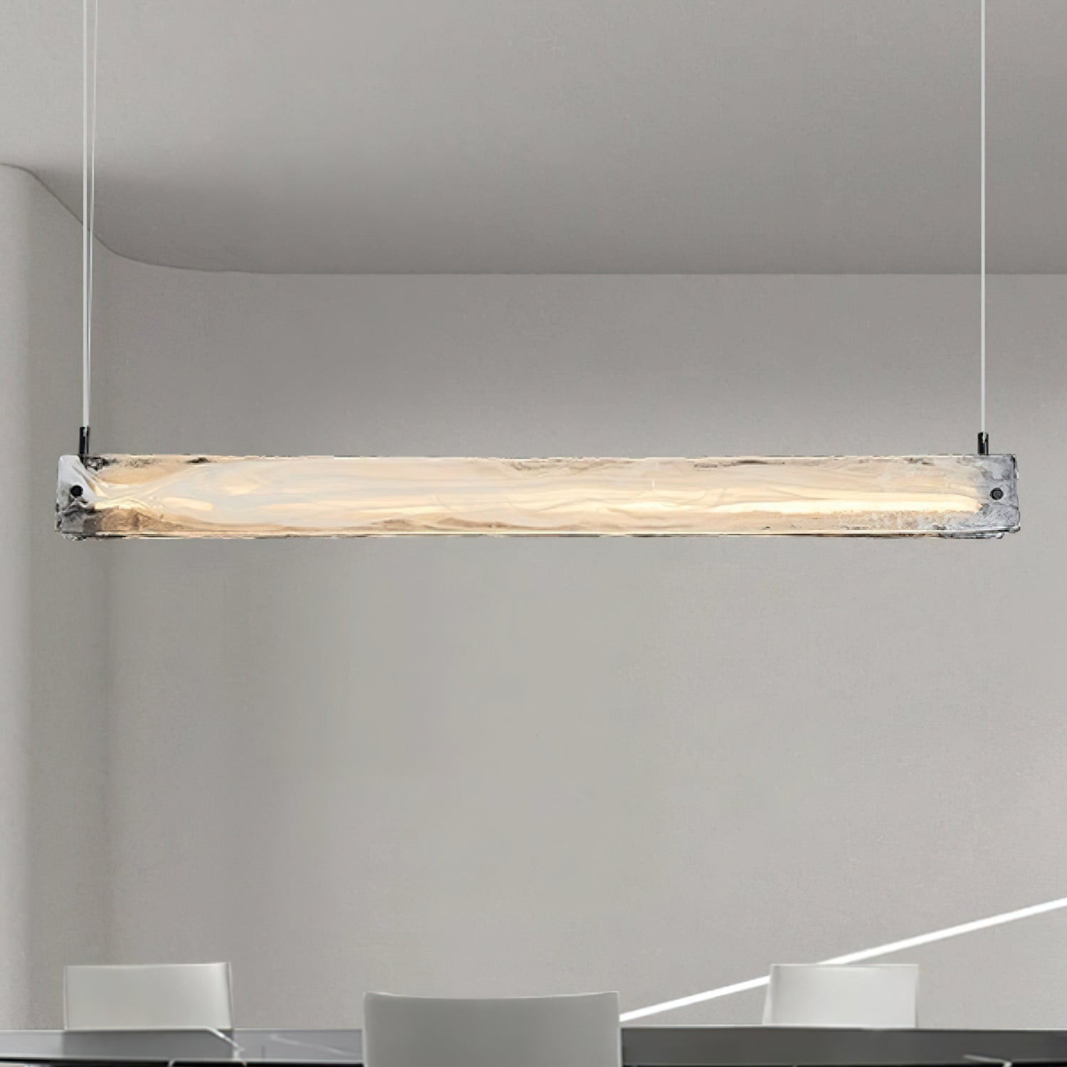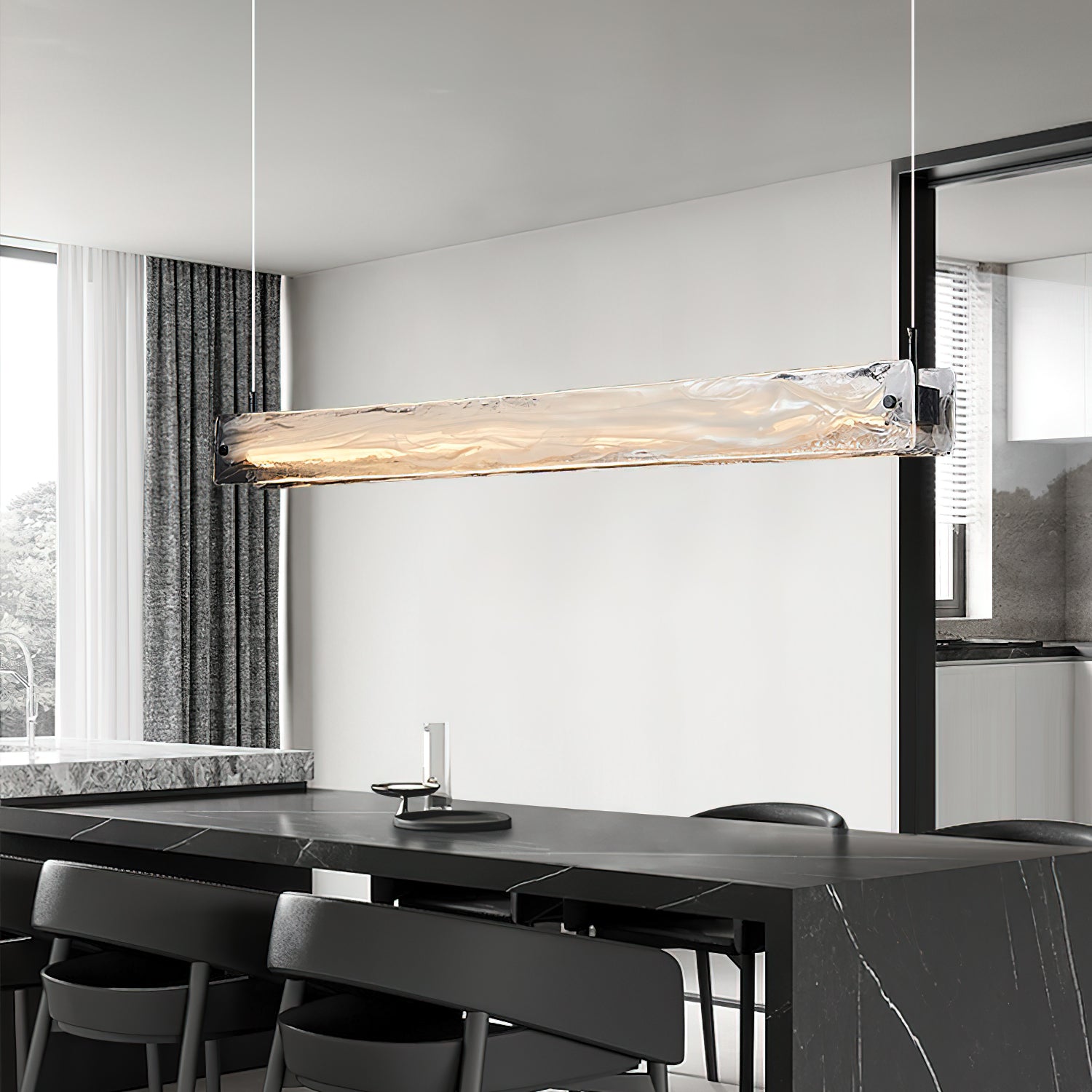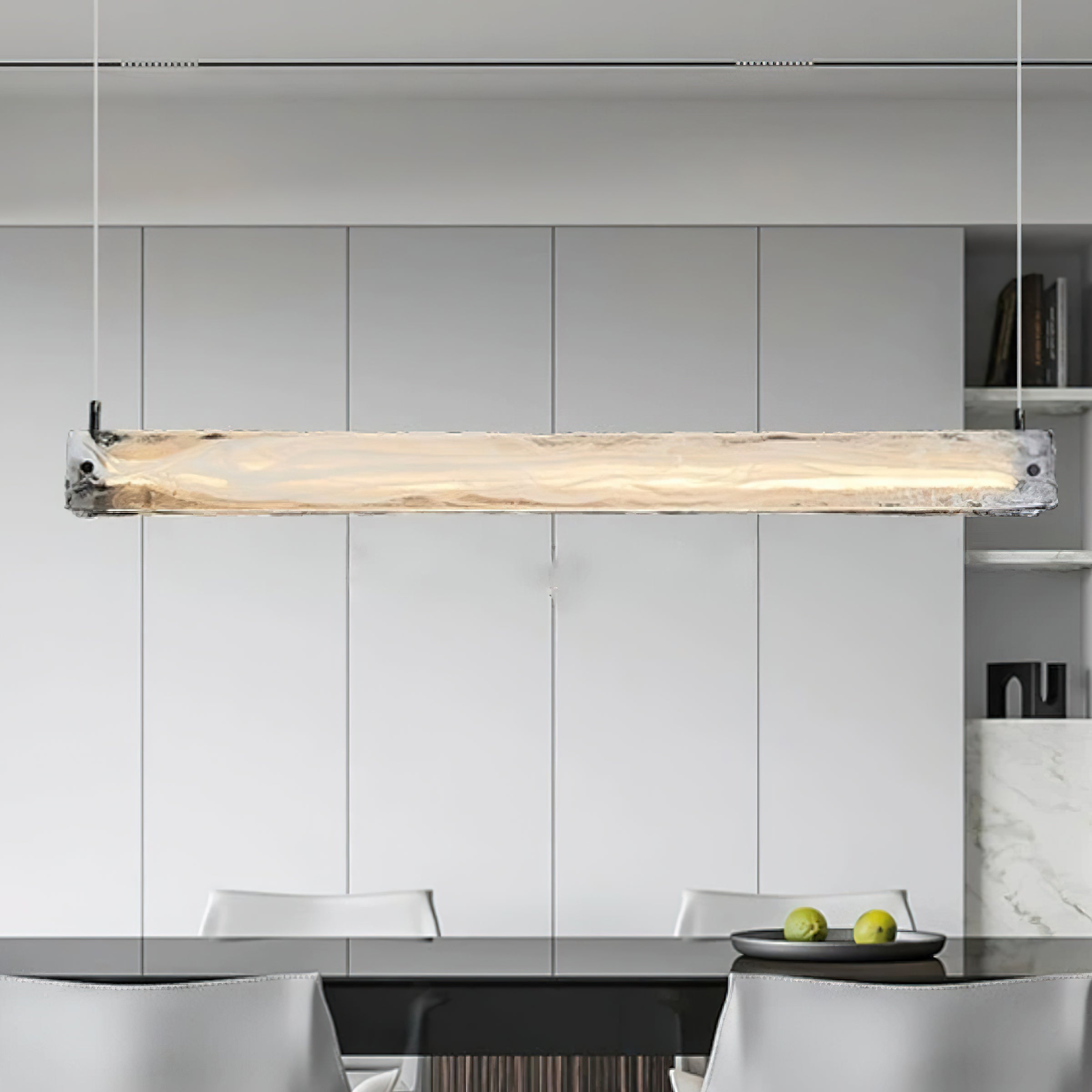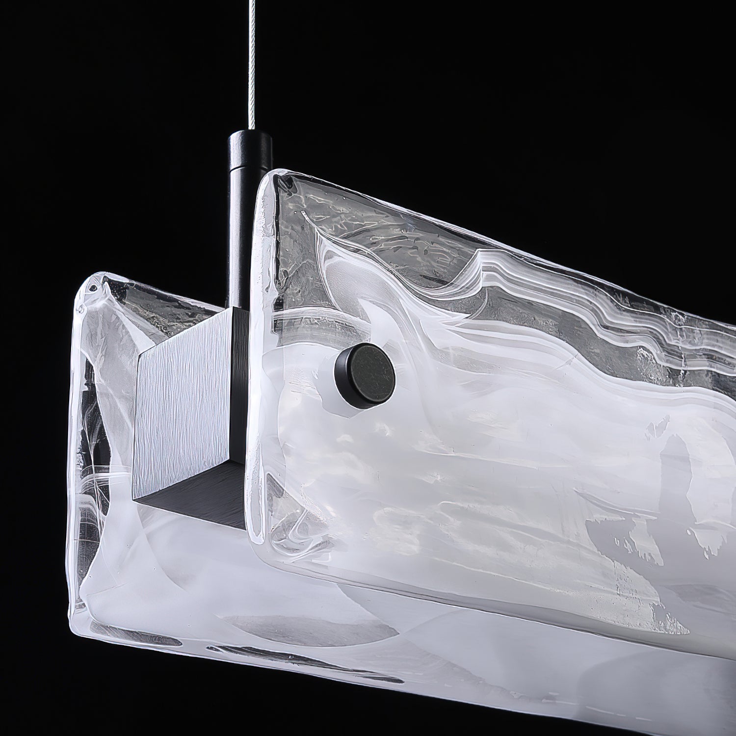 Upgrade your space with the luxurious Saanen Linear Chandelier. Featuring a sleek rectangular design and made from high-quality metal and glass, this chandelier will add a touch of elegance to any room. Available in two sizes, it's perfect for a kitchen island or dining room. Luxury meets modern design for a stunning style.