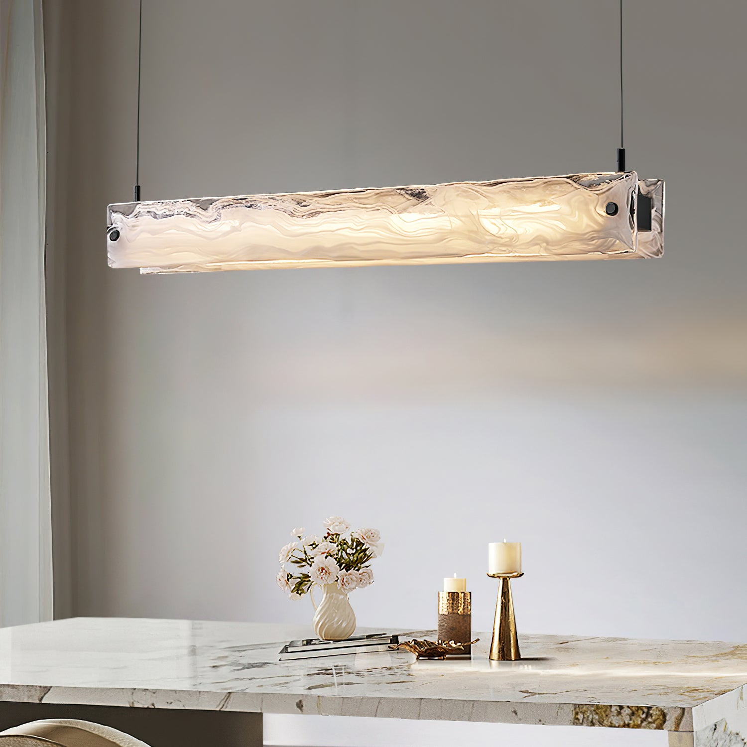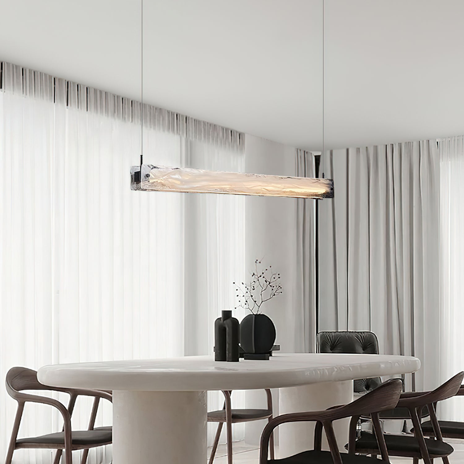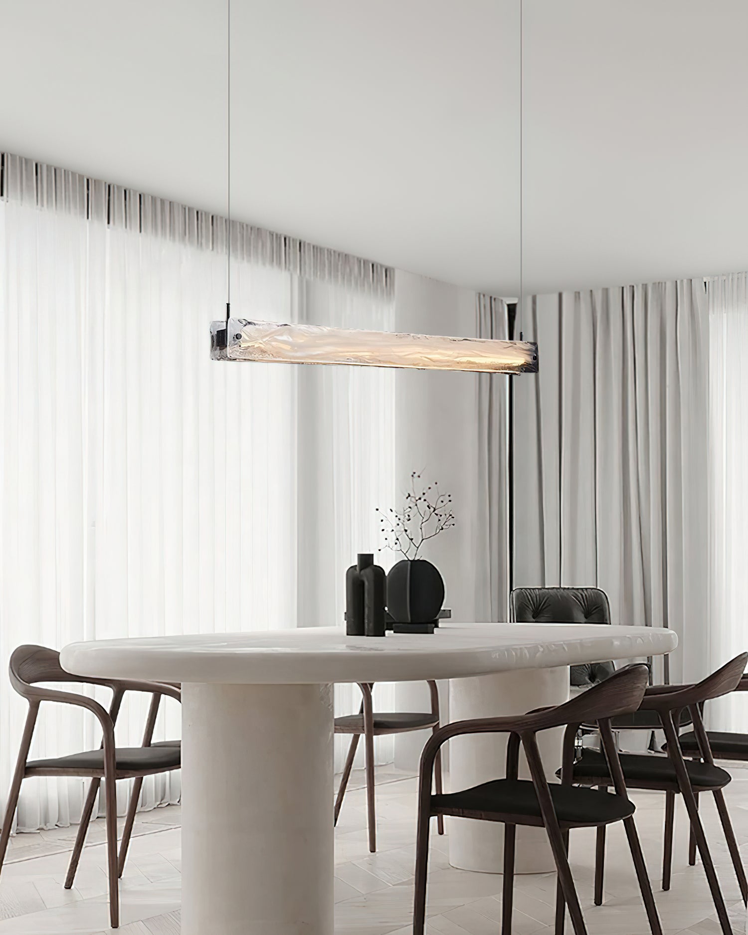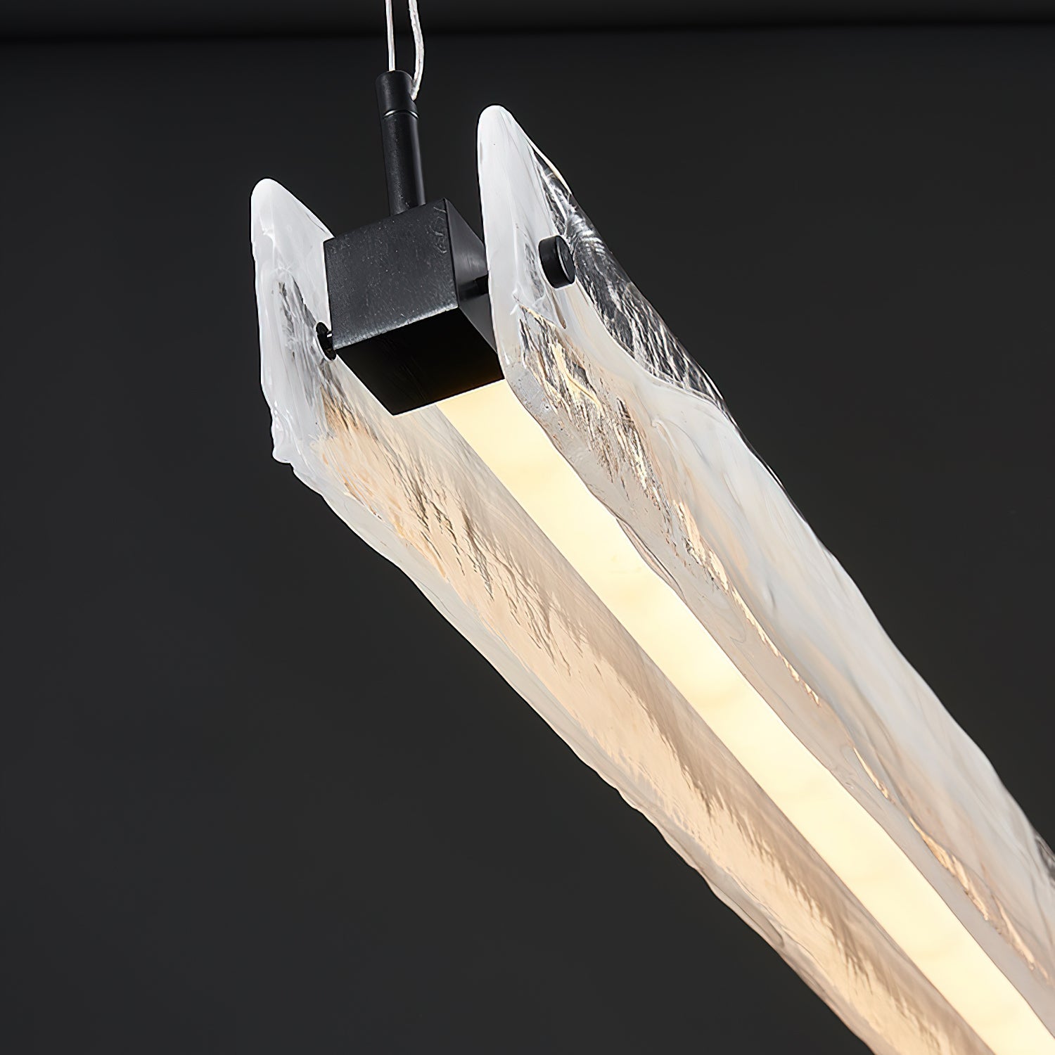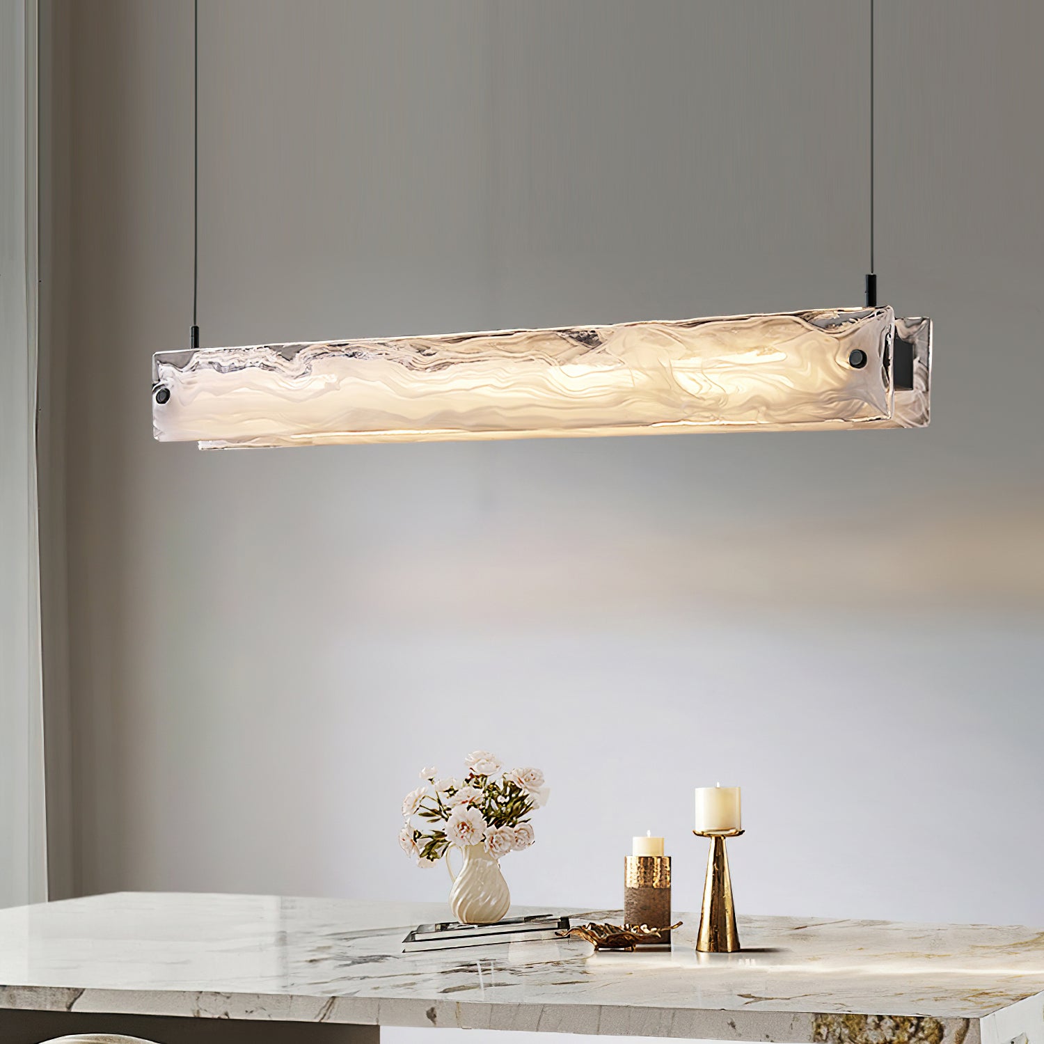 Upgrade your space with the luxurious Saanen Linear Chandelier. Featuring a sleek rectangular design and made from high-quality metal and glass, this chandelier will add a touch of elegance to any room. Available in two sizes, it's perfect for a kitchen island or dining room. Luxury meets modern design for a stunning style.