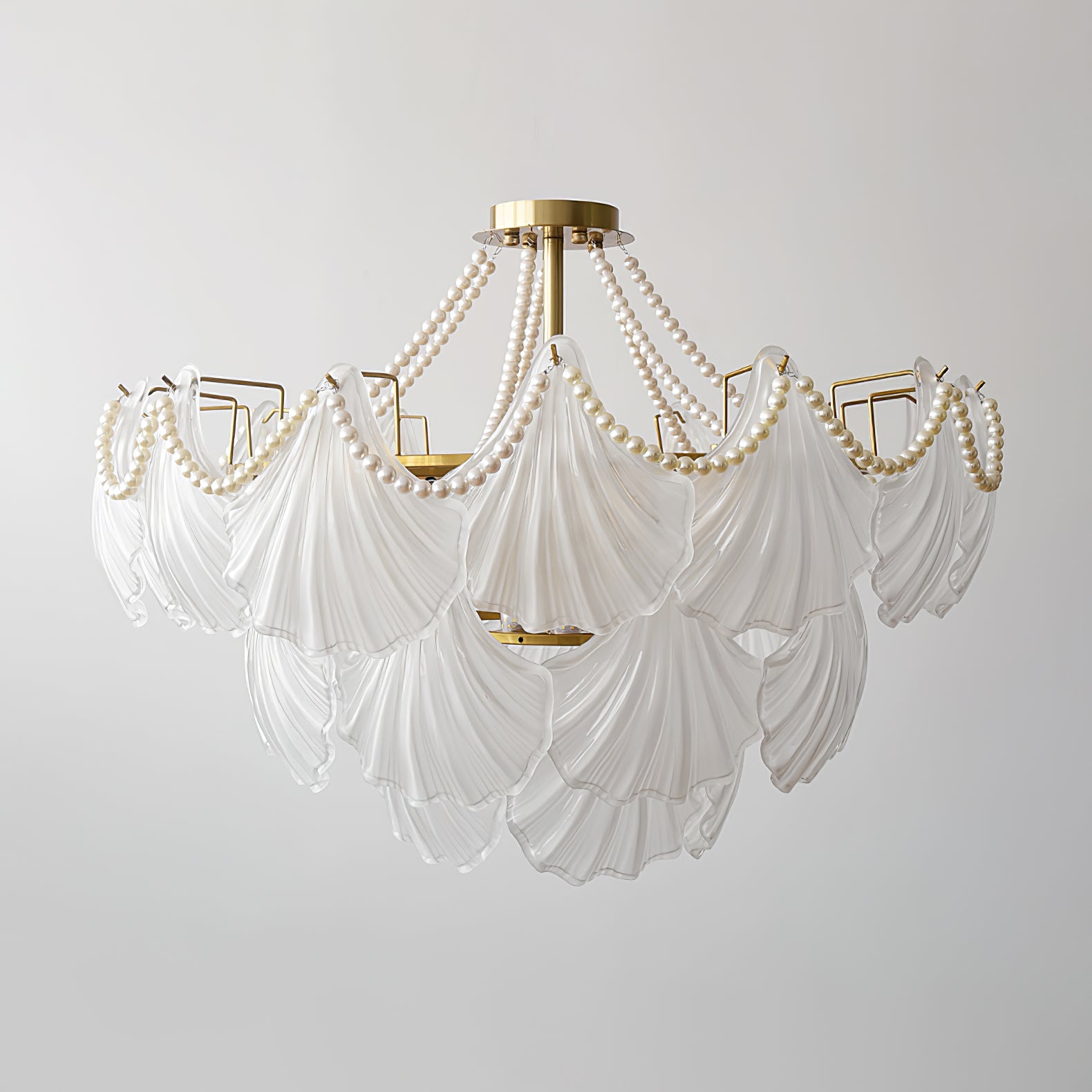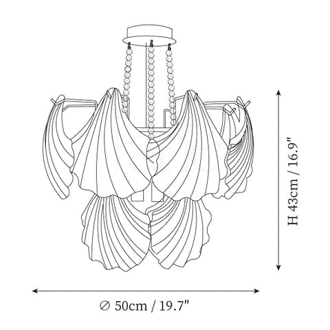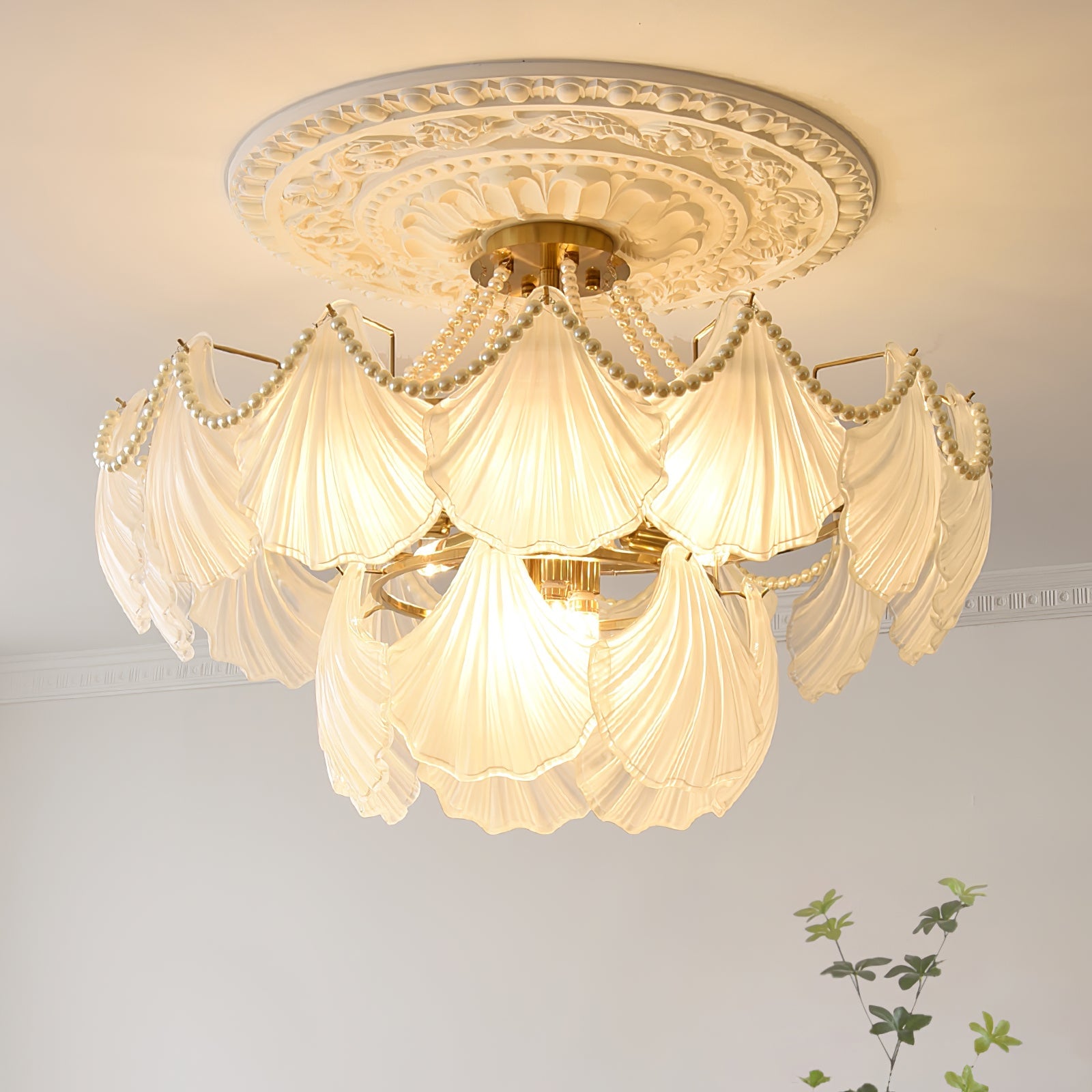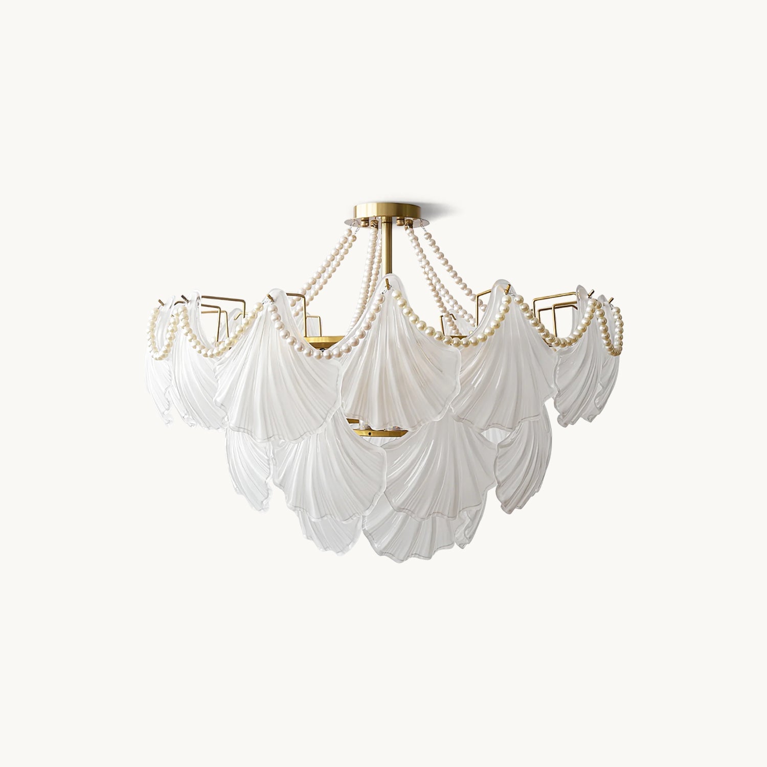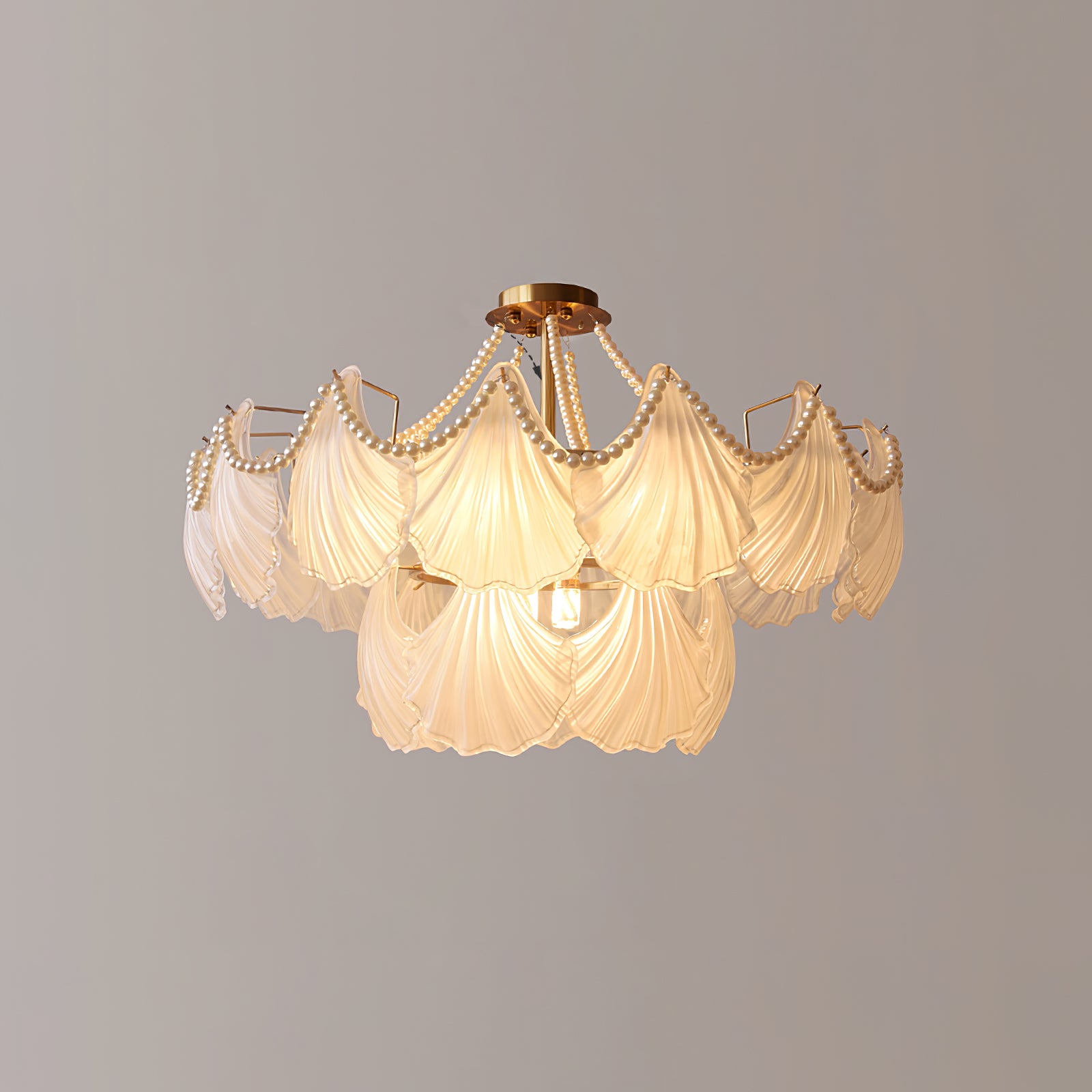 The combination of scallop shape and wrought iron lines and circles reflect the full sense of three-dimensional richness. The lighting design has a sense of hierarchy and depth, and the glass lampshade with diamond texture is comfortable and not dazzling, creating a comfortable light environment.