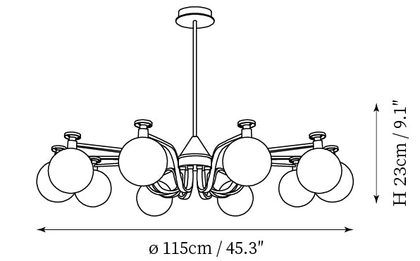 - Model B 10-Lights Size: Dia 115cm x H 23cm / ∅ 45.3″ x H 9.1″