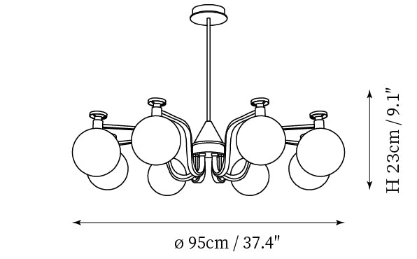 - Model B 8-Lights Size: Dia 95cm x H 23cm / ∅ 37.4″ x H 9.1″