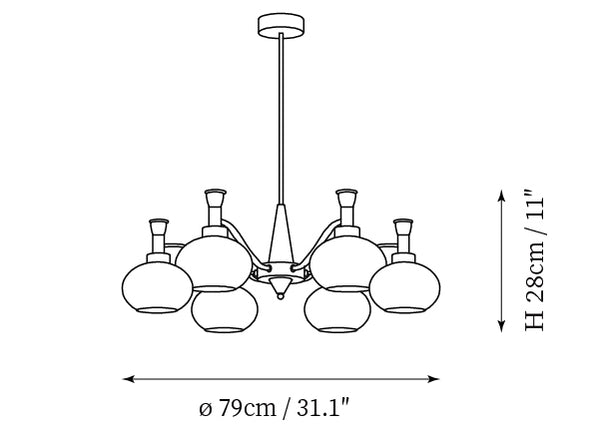 - Model A 6-Lights Size: Dia 79cm x H 28cm / ∅ 31.1″ x H 11″