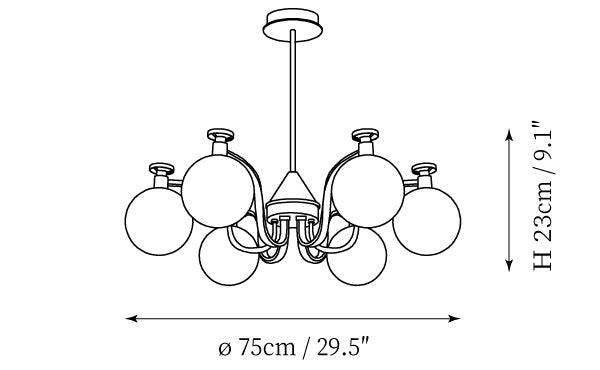 - Model B 6-Lights Size: Dia 75cm x H 23cm / ∅ 29.5″ x H 9.1″