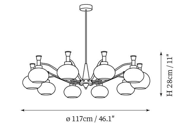 - Model A 10-Lights Size: Dia 117cm x H 28cm / ∅ 46.1″ x H 11″