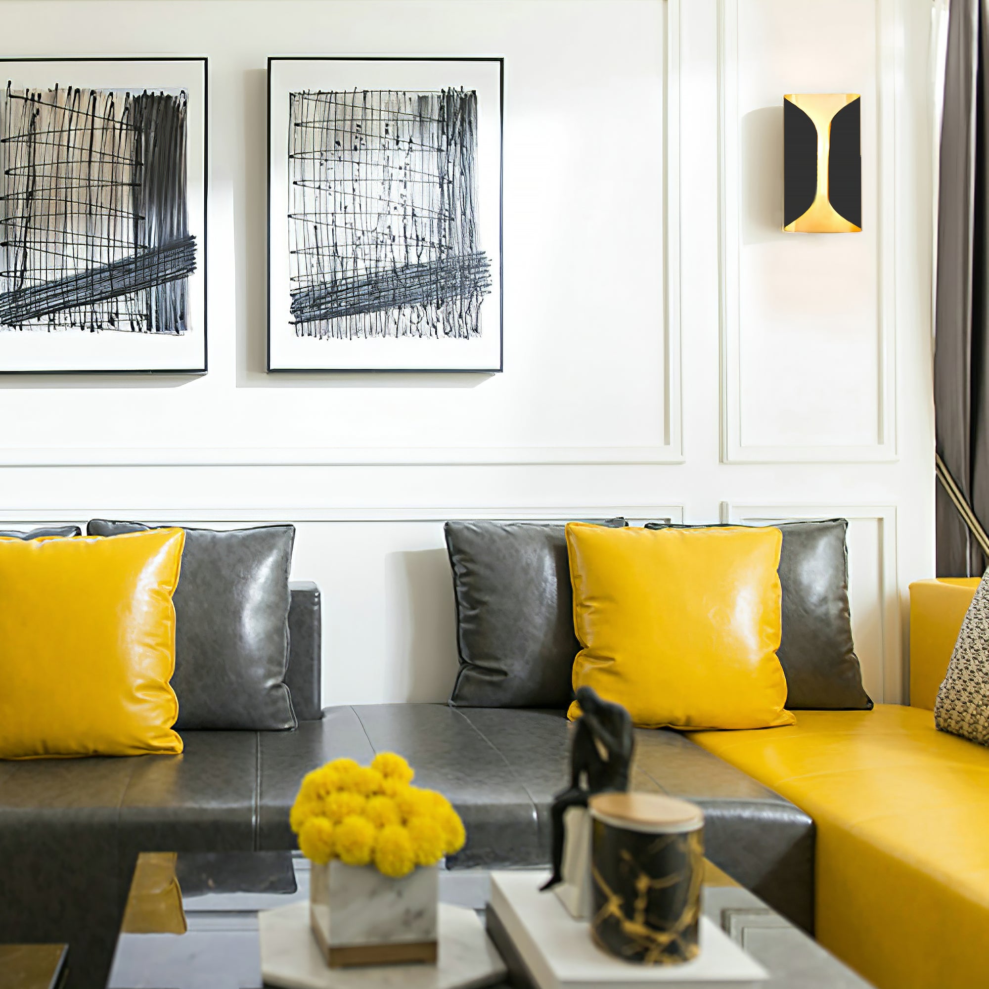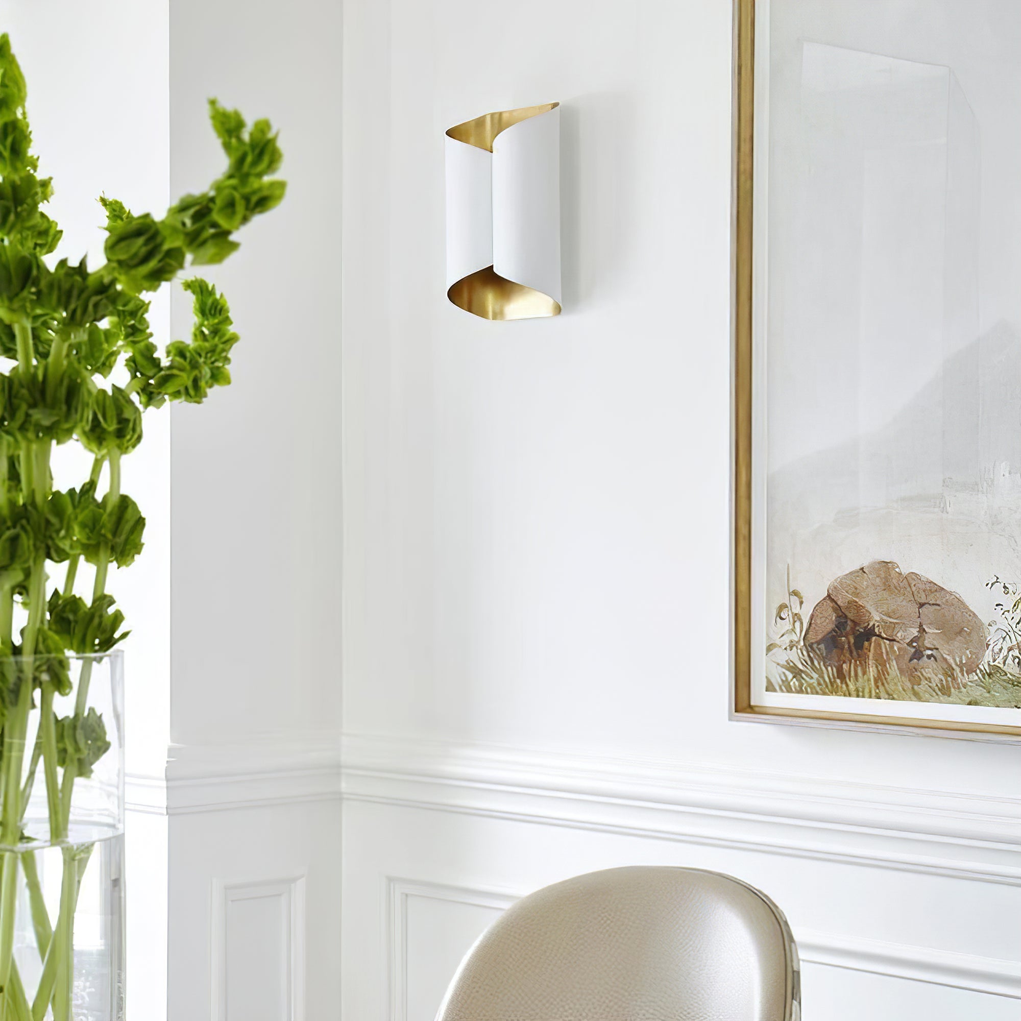 Illuminate your home with the Selfoss Wall Lamp from Liootrlamp. Its beautiful finish and sleek design are inspired by sculptural forms, making it suitable for both modern and traditional interiors. The gold interior adds a warm glow to its light source, creating a welcoming ambience. A must-have for any space.