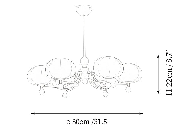 - 6-Lights Size: Dia 80cm x H 22cm / ∅ 31.5″ x H 8.7″