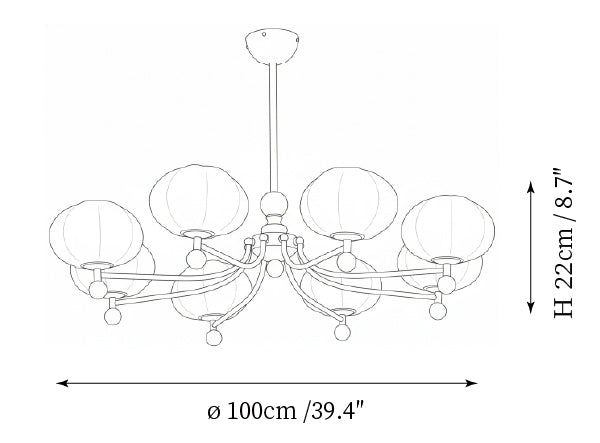 - 8-Lights Size: Dia 100cm x H 22cm / ∅ 39.4″ x H 8.7″