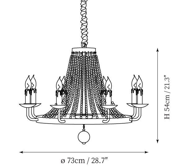 - 8-Lights Size: Dia 73cm x H 54cm / ∅ 28.7″ x H 21.3″