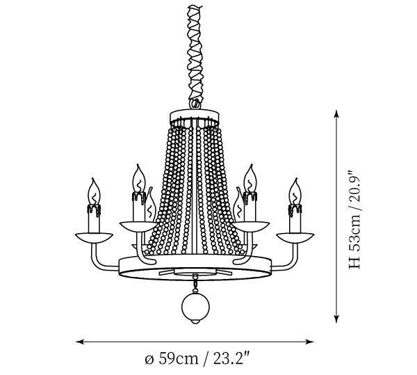 - 6-Lights Size: Dia 59cm x H 53cm / ∅ 23.2″ x H 20.9″
