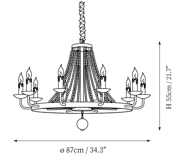 - 10-Lights Size: Dia 87cm x H 55cm / ∅ 34.3″ x H 21.7″