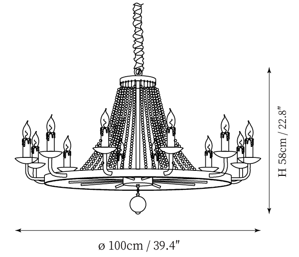 - 12-Lights Size: Dia 100cm x H 58cm / ∅ 39.4″ x H 22.8″