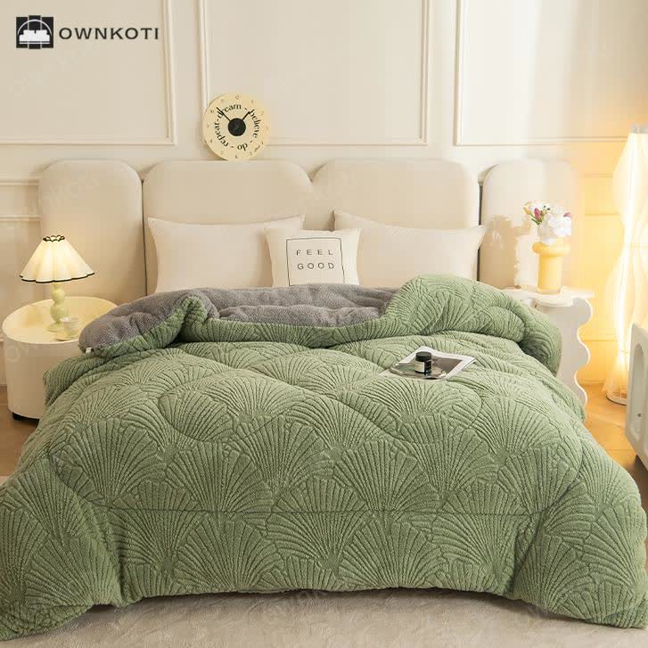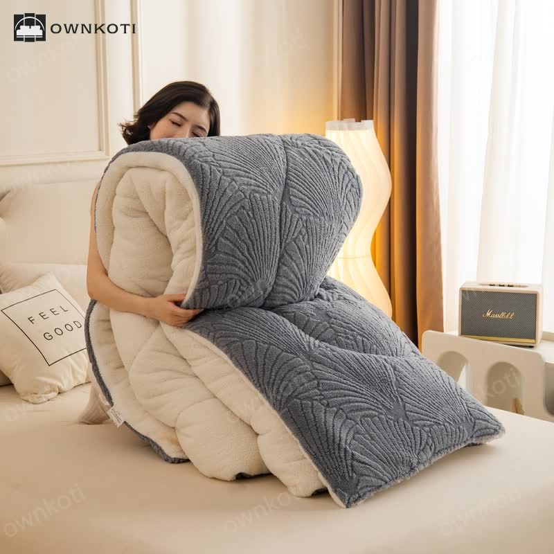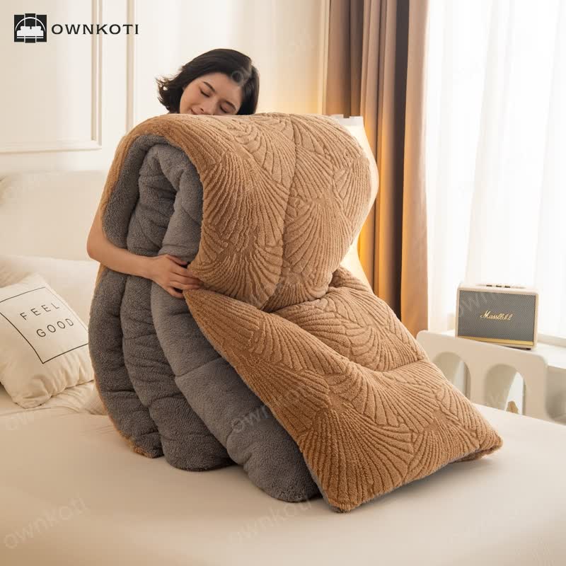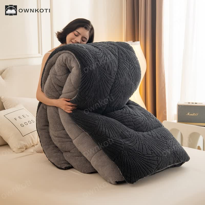 Sherpa Jacquard Ginkgo Leaf Blanket with Quilt Core