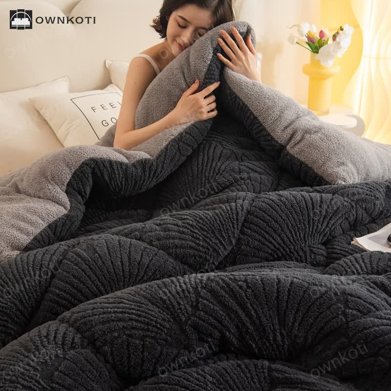 For a soft and warm blanket, this double-sided fleece option with delicate jacquard patterns is ideal. It provides varied layers without shedding or static, ensuring warmth for better sleep. Perfect for snuggling while reading, watching TV, or relaxing.