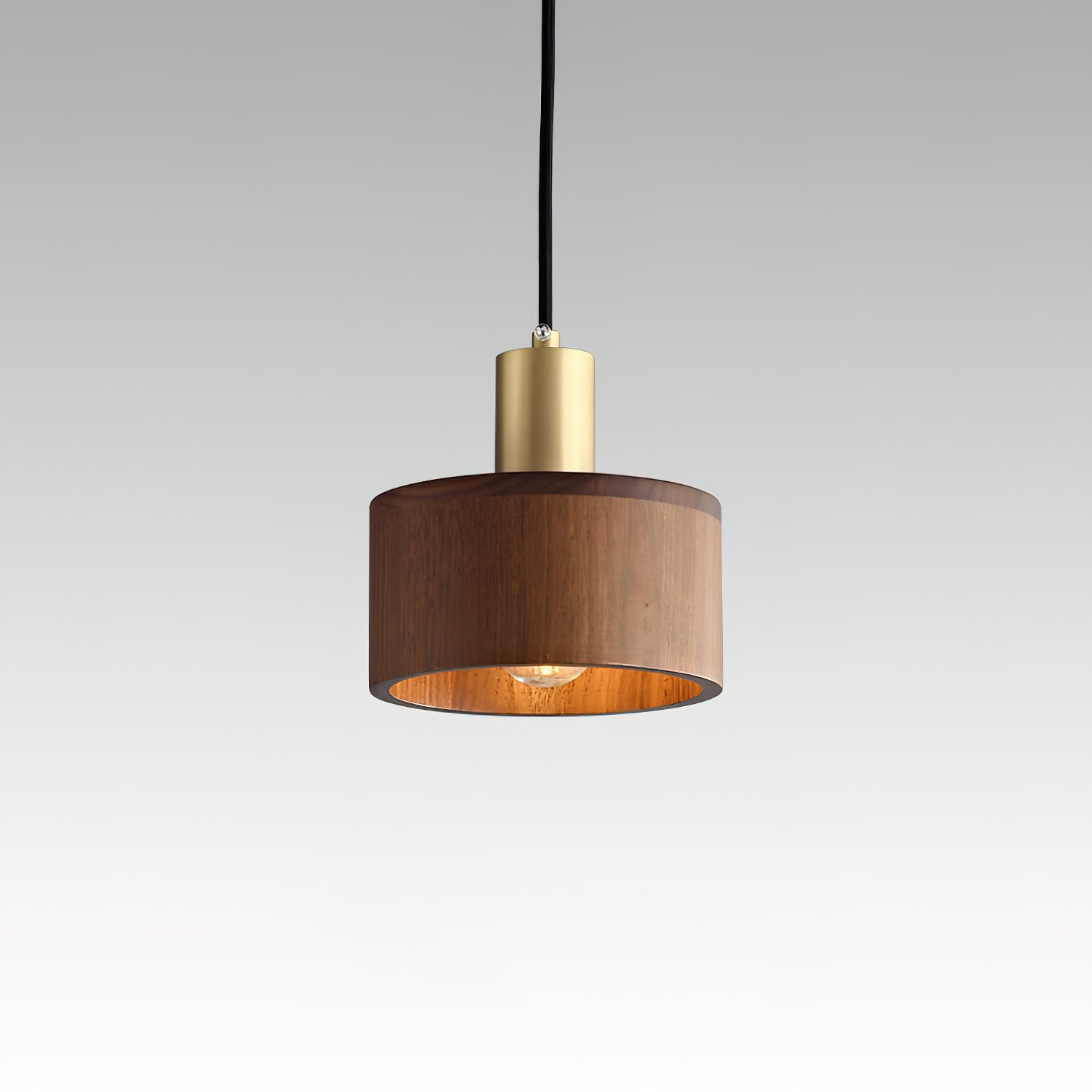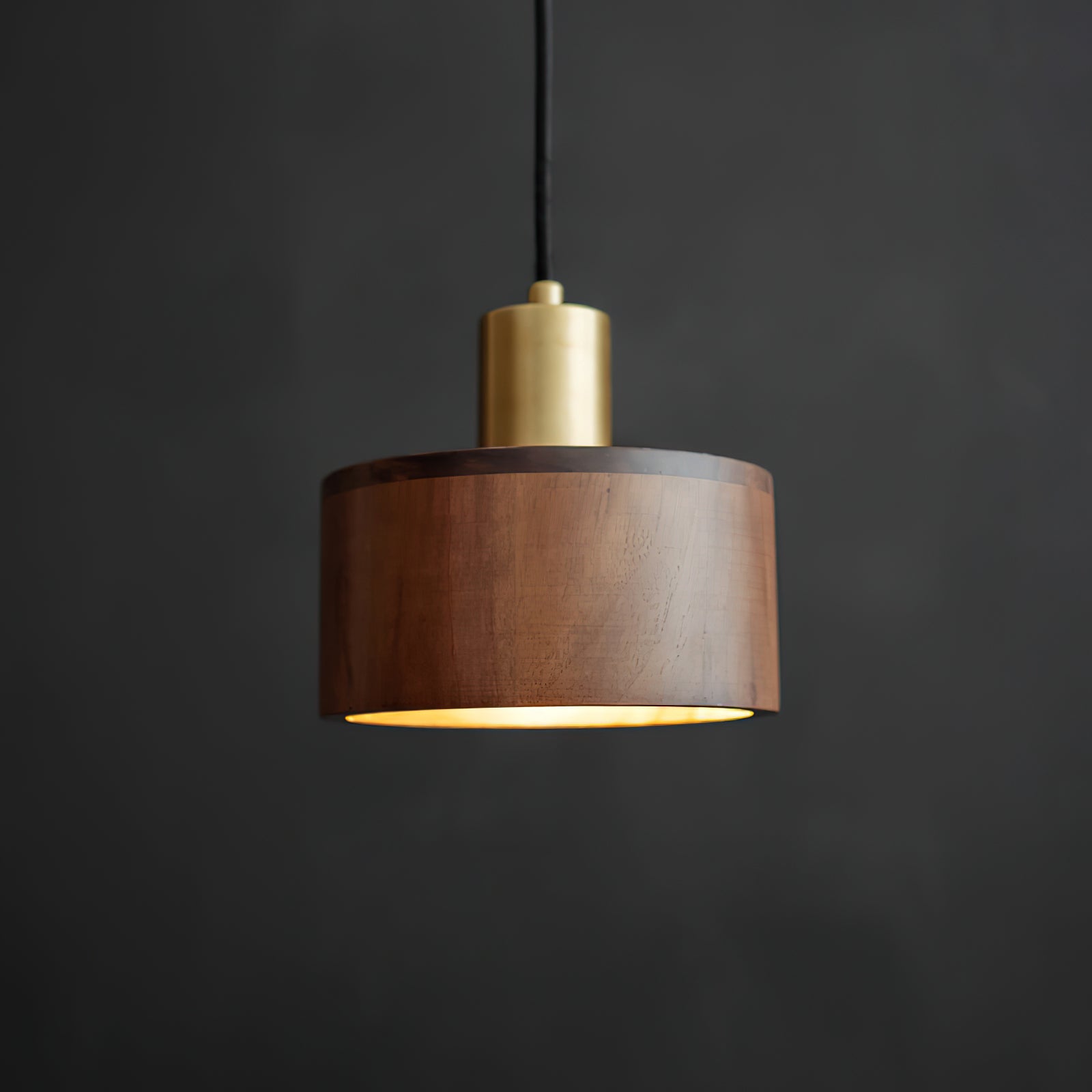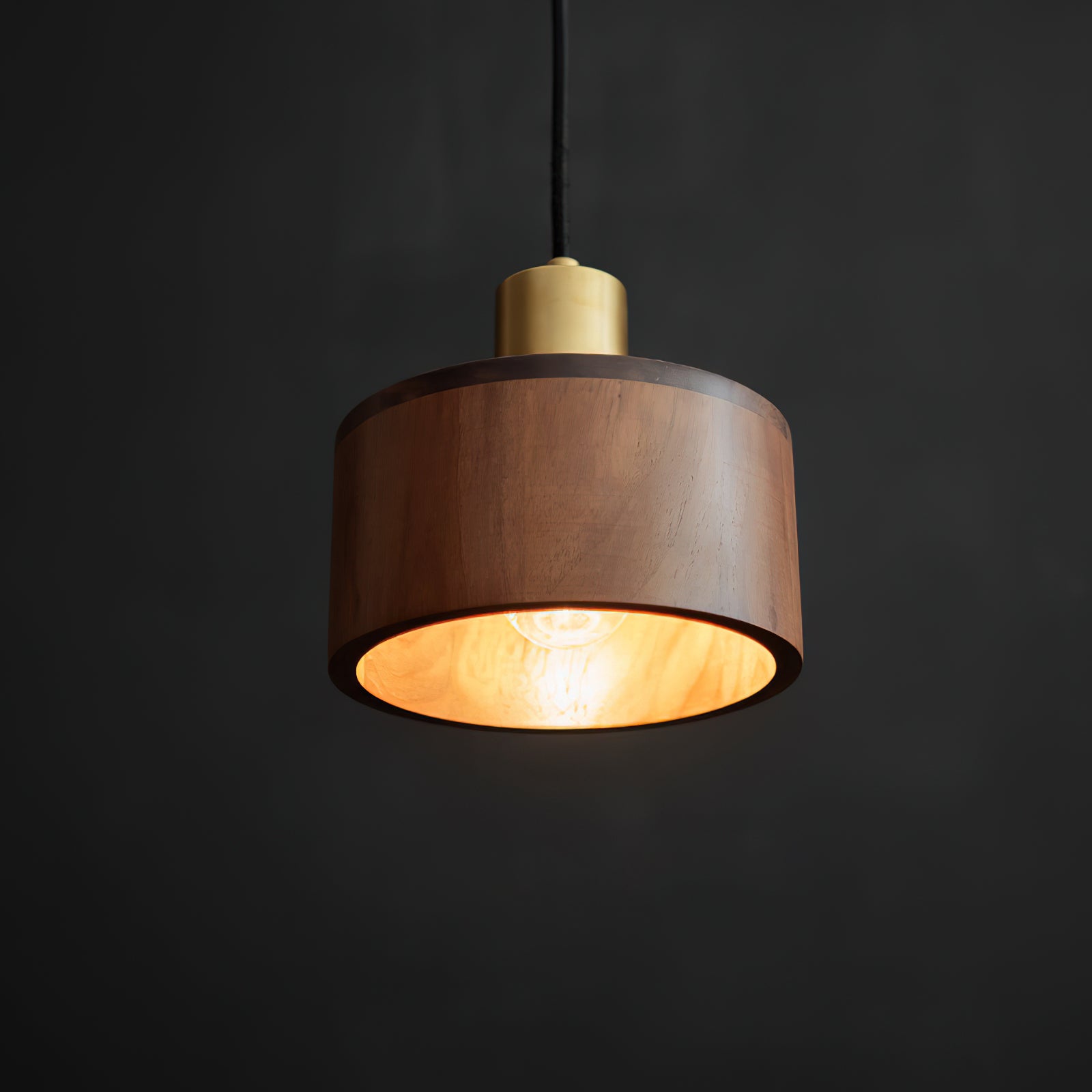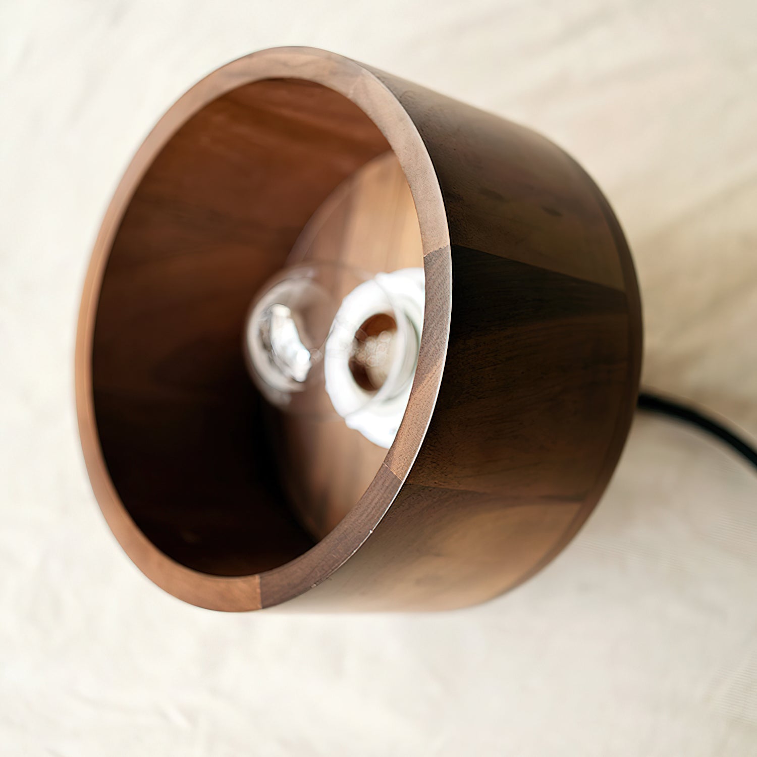 Elegant, sustainably sourced walnut wood layers shed warm light all around, wrapping the bulb like a veil and letting the organic woodgrain take center stage. The plywood internal structure delicately supports the simple wooden layers, fixed by brass screws, creating a soft cylindrical pool of light. Light and elegant, this lamp adds style to tranquil retreats such as bedrooms and living spaces, infusing the beauty of nature and creating a sense of harmony.